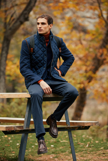 Giacche, pantaloni e maglieria in tessuti pregiati, scelti per qualità e stile.
