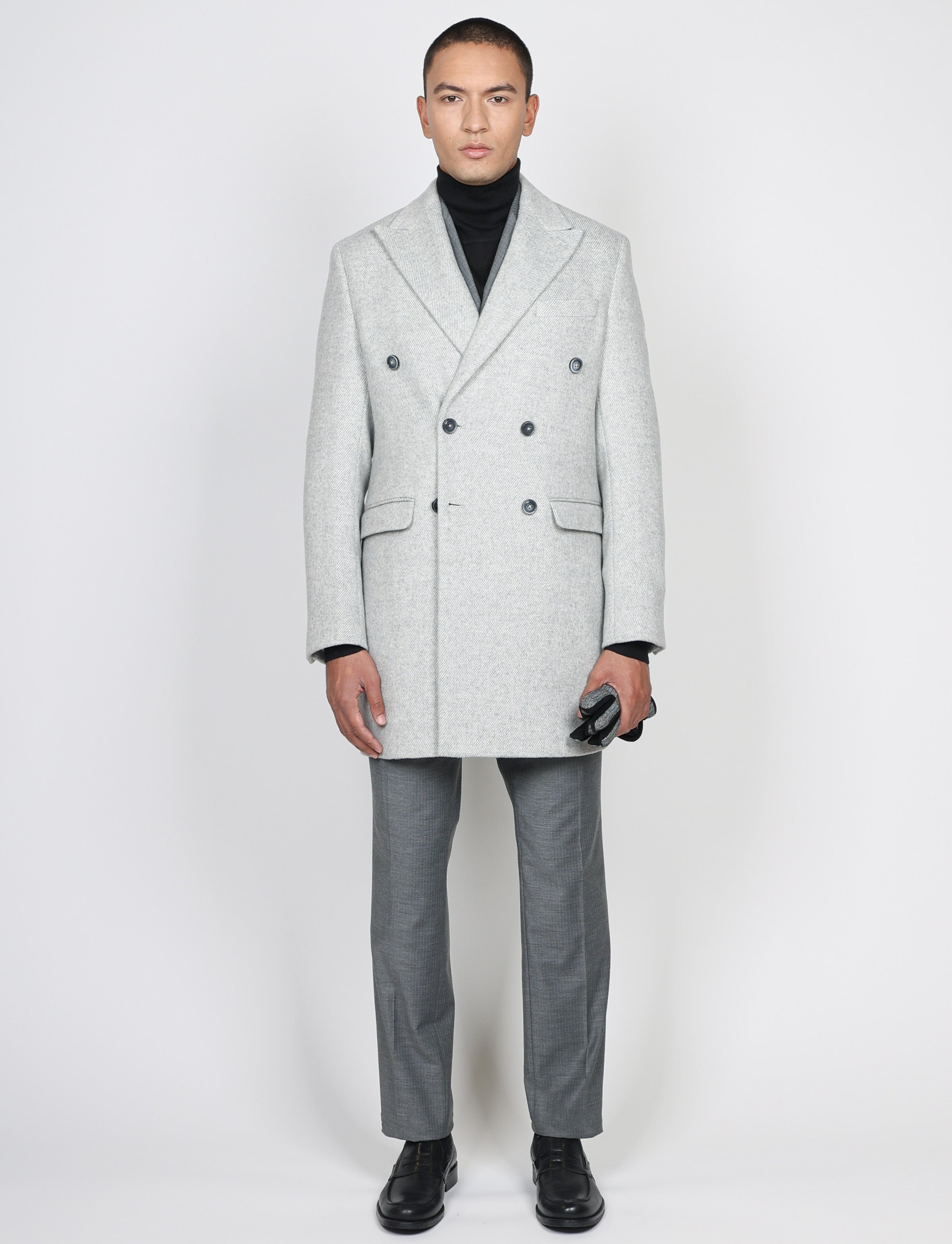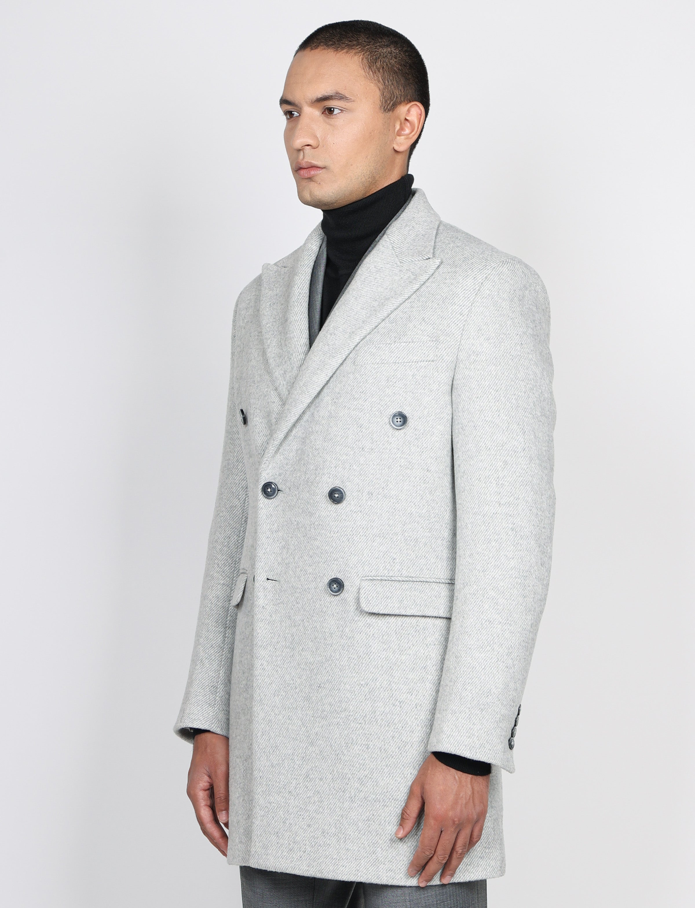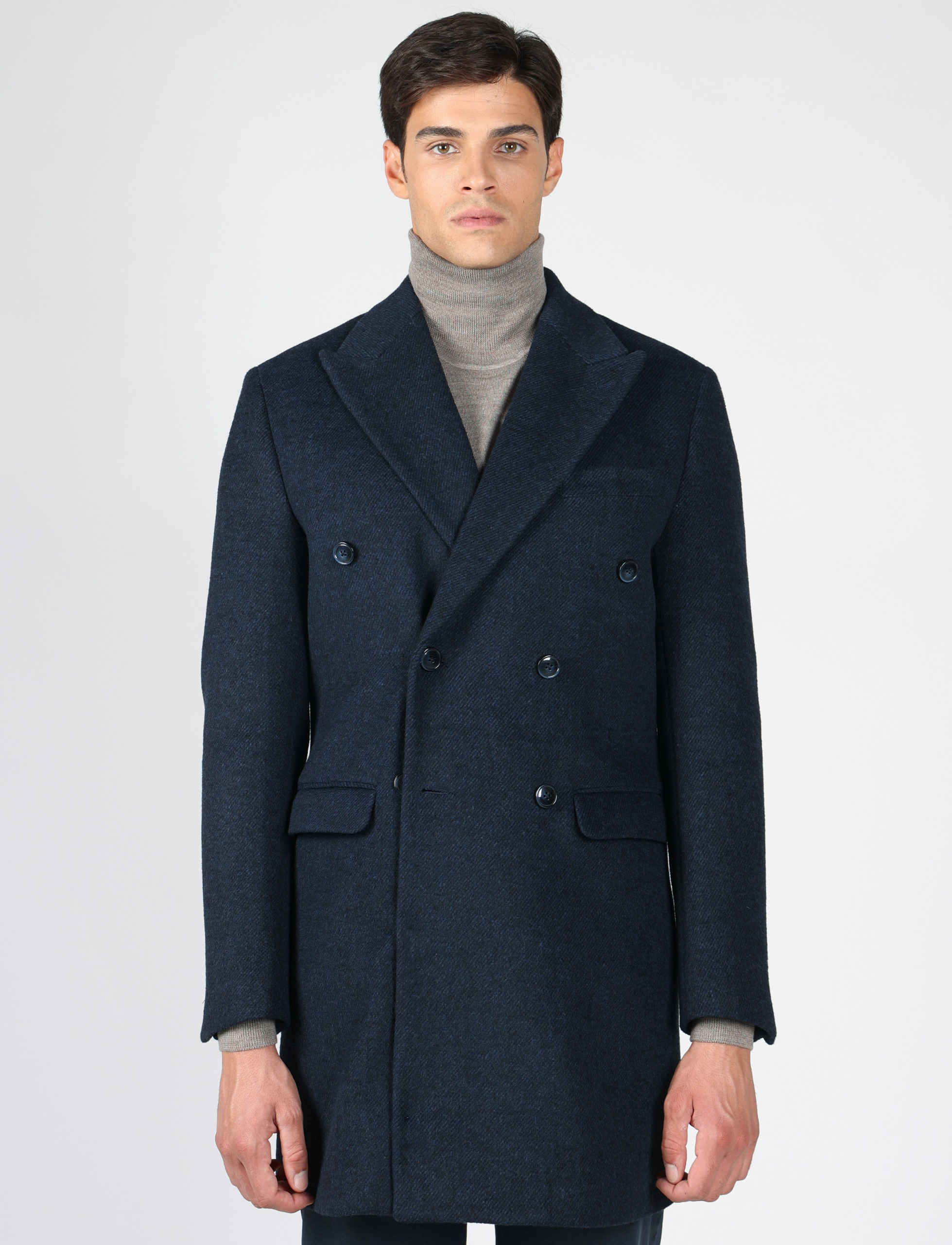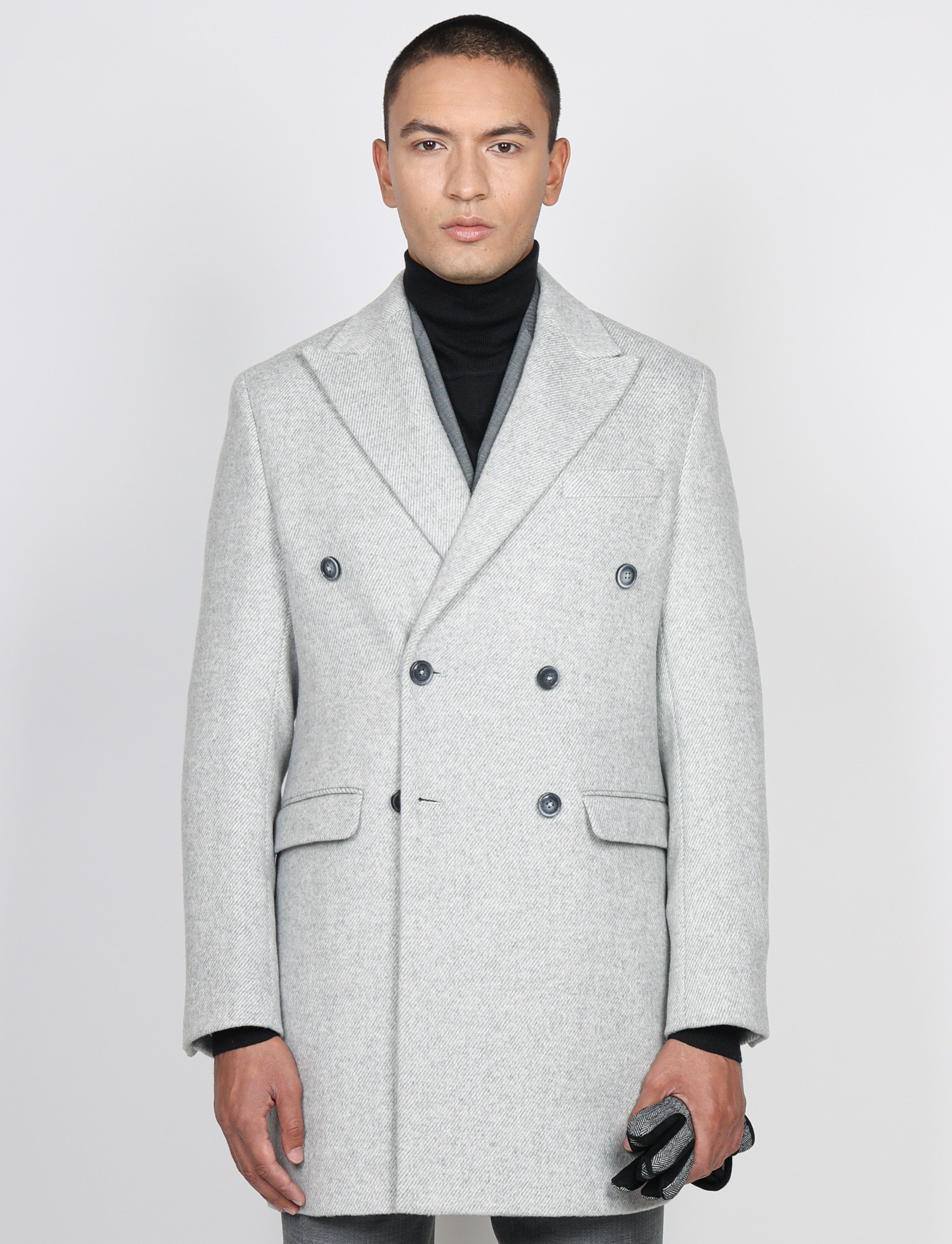 Cappotto doppiopetto spigato elegante e moderno, costruito con un tessuto caldo e strutturato che valorizza ogni look. La linea drop 6 garantisce una vestibilità raffinata, ideale per chi cerca stile e pulizia delle forme. Perfetto per elevare qualsiasi outfit invernale.
