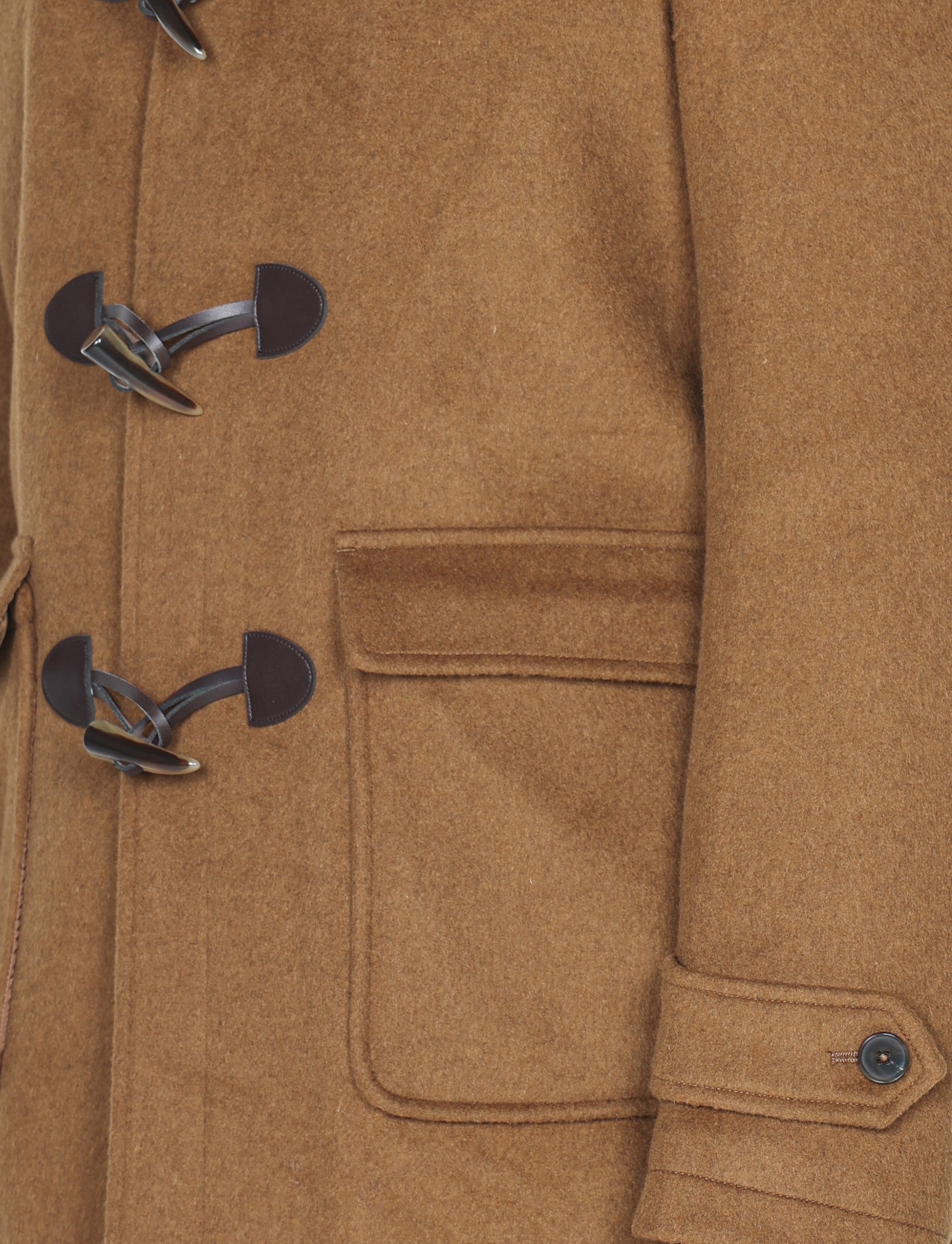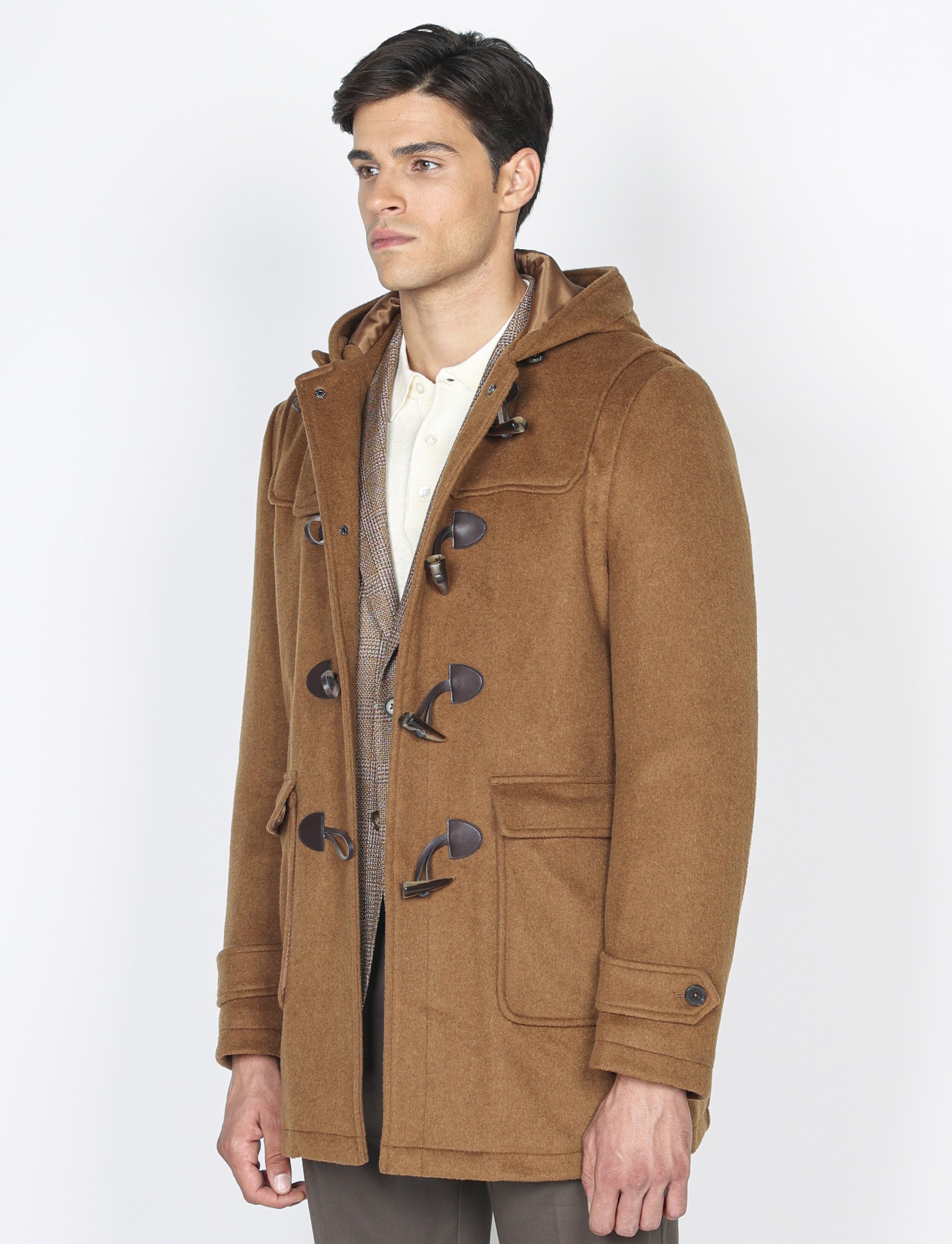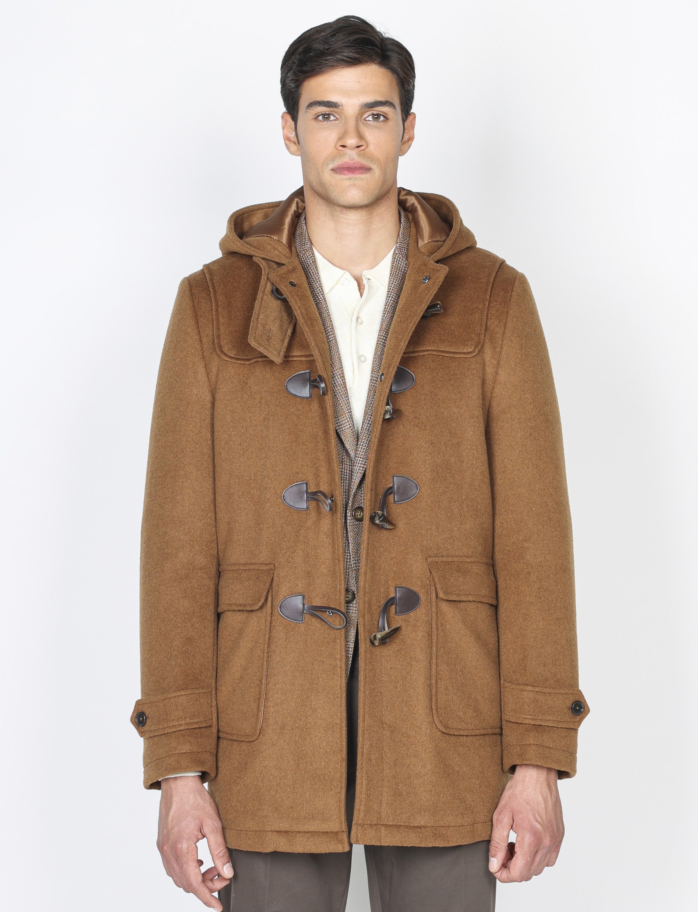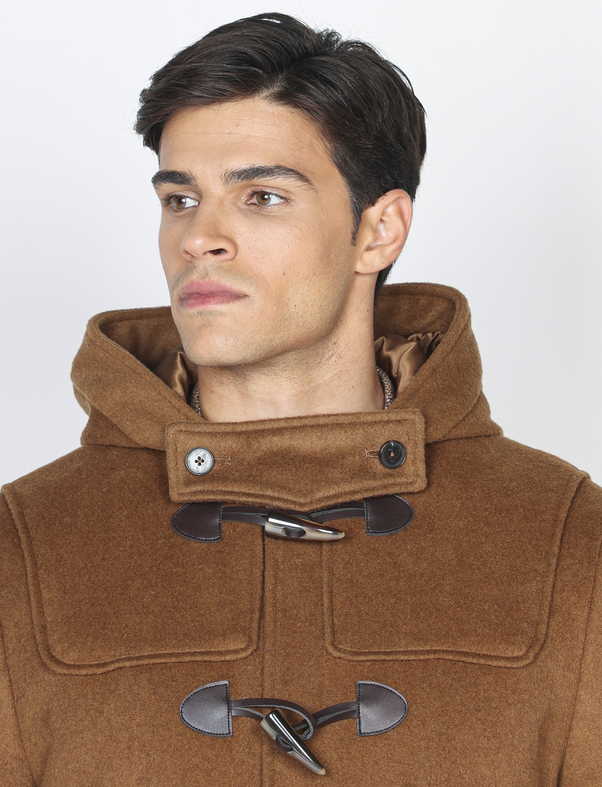 Realizzato in tessuto misto lana caldo e strutturato, presenta la classica chiusura con alamari in corno e inserti in pelle, dettagli che ne esaltano lo stile autentico. Il cappuccio fisso e l’interno trapuntato e foderato lo rendono ideale per affrontare la stagione fredda con eleganza.