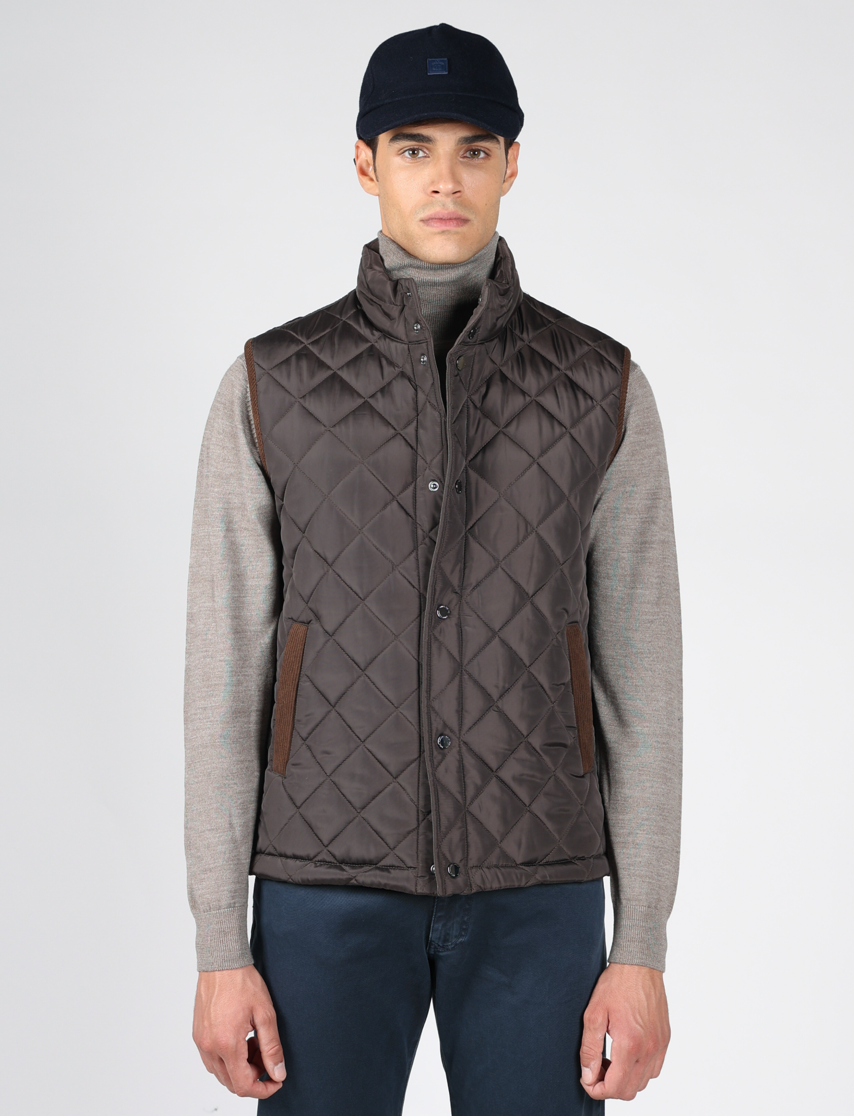 Gilet imbottito e trapuntato a rombi, perfetto per la mezza stagione.