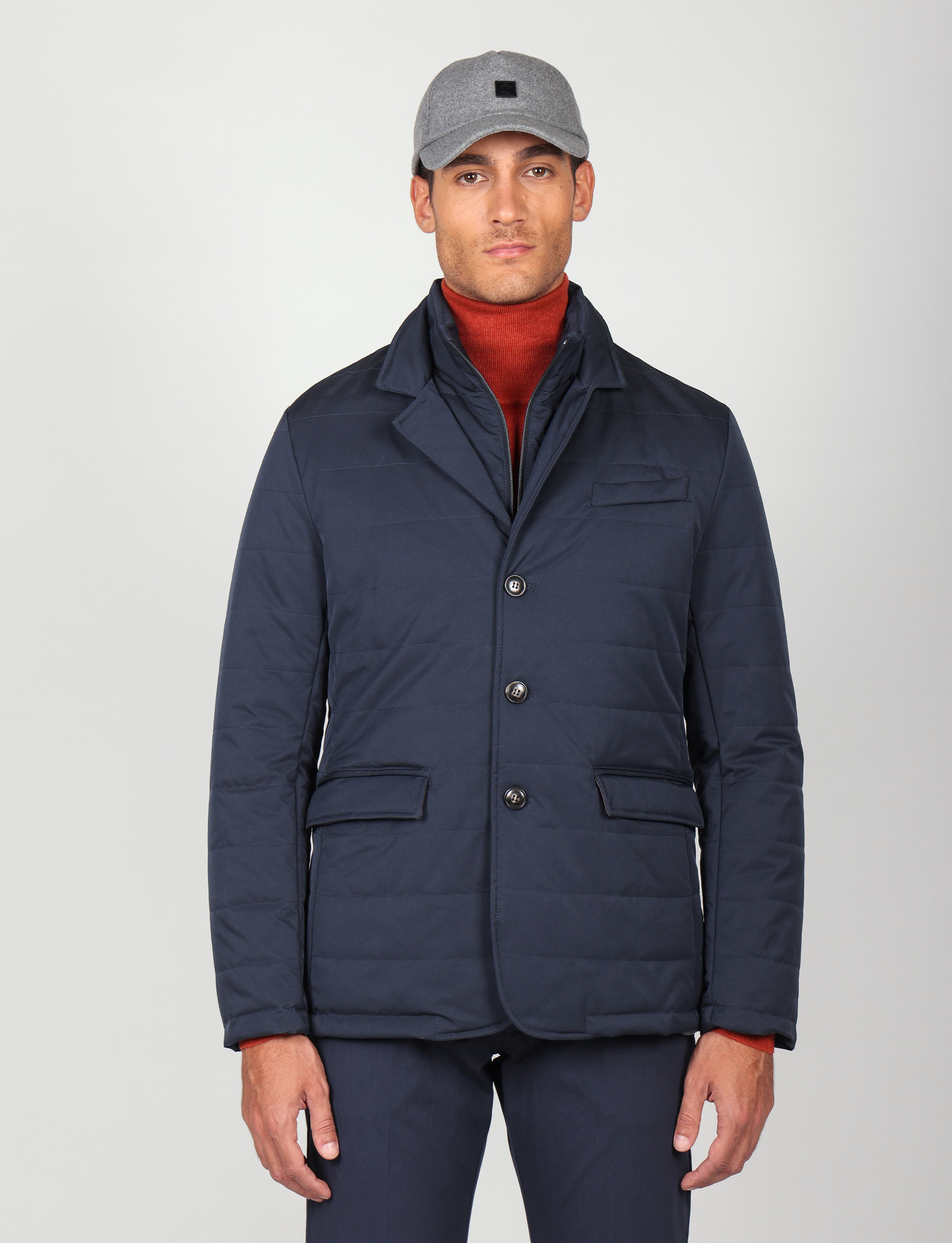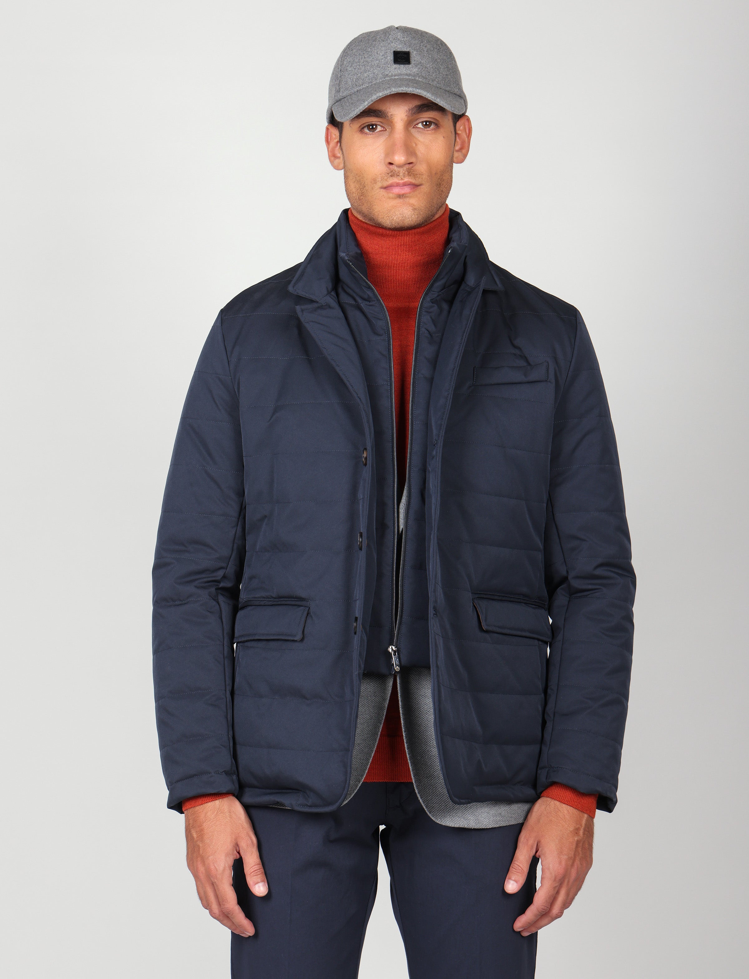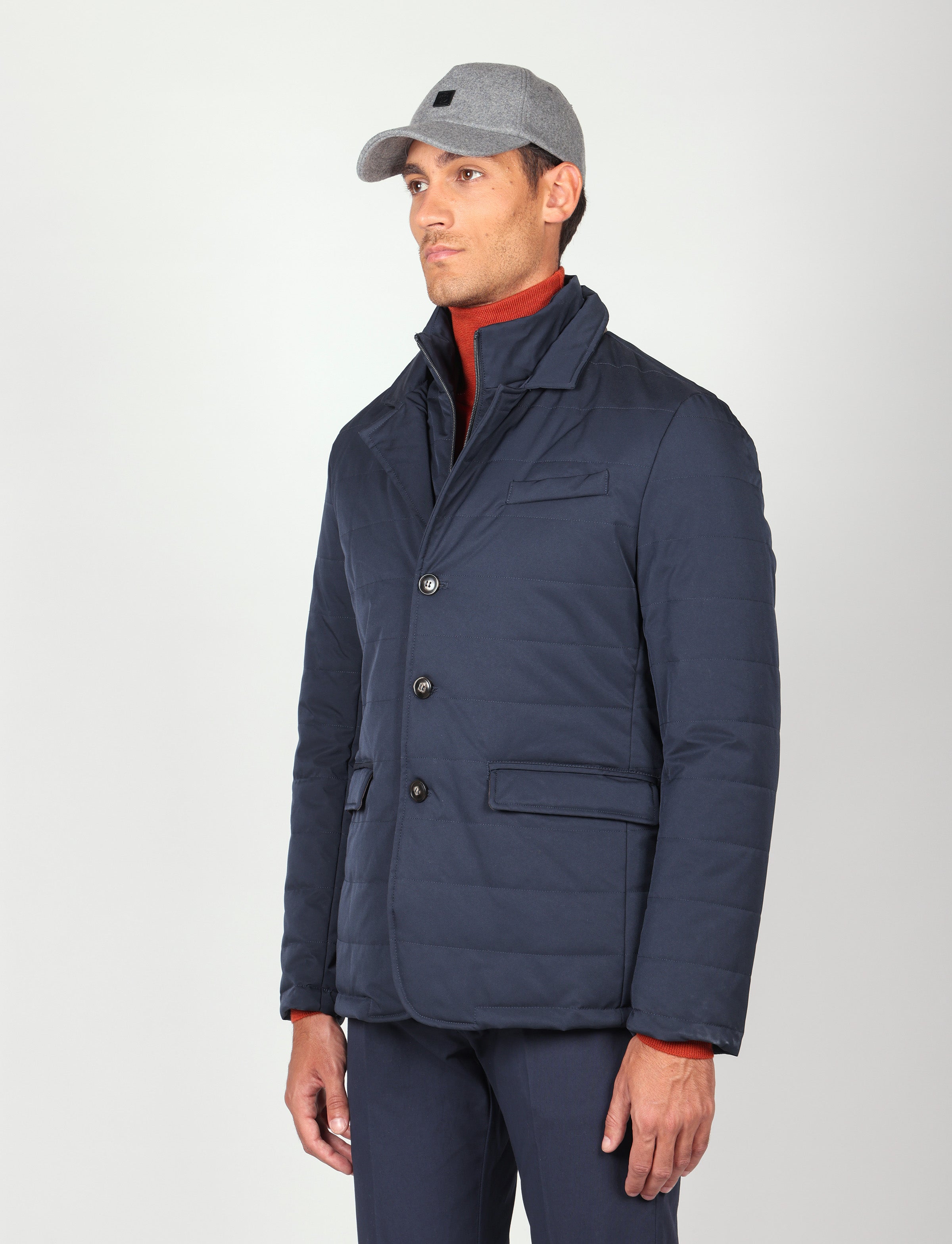 Giacca imbottita trapuntata dallo stile tecnico e raffinato. Realizzata in tessuto resistente e leggero, assicura massimo comfort grazie alla pettorina integrata con zip e all’interno foderato, mentre la linea sartoriale a tre bottoni aggiunge un tocco di classe ideale per ogni occasione. Un capo perfetto per affrontare la stagione fredda con eleganza contemporanea.
