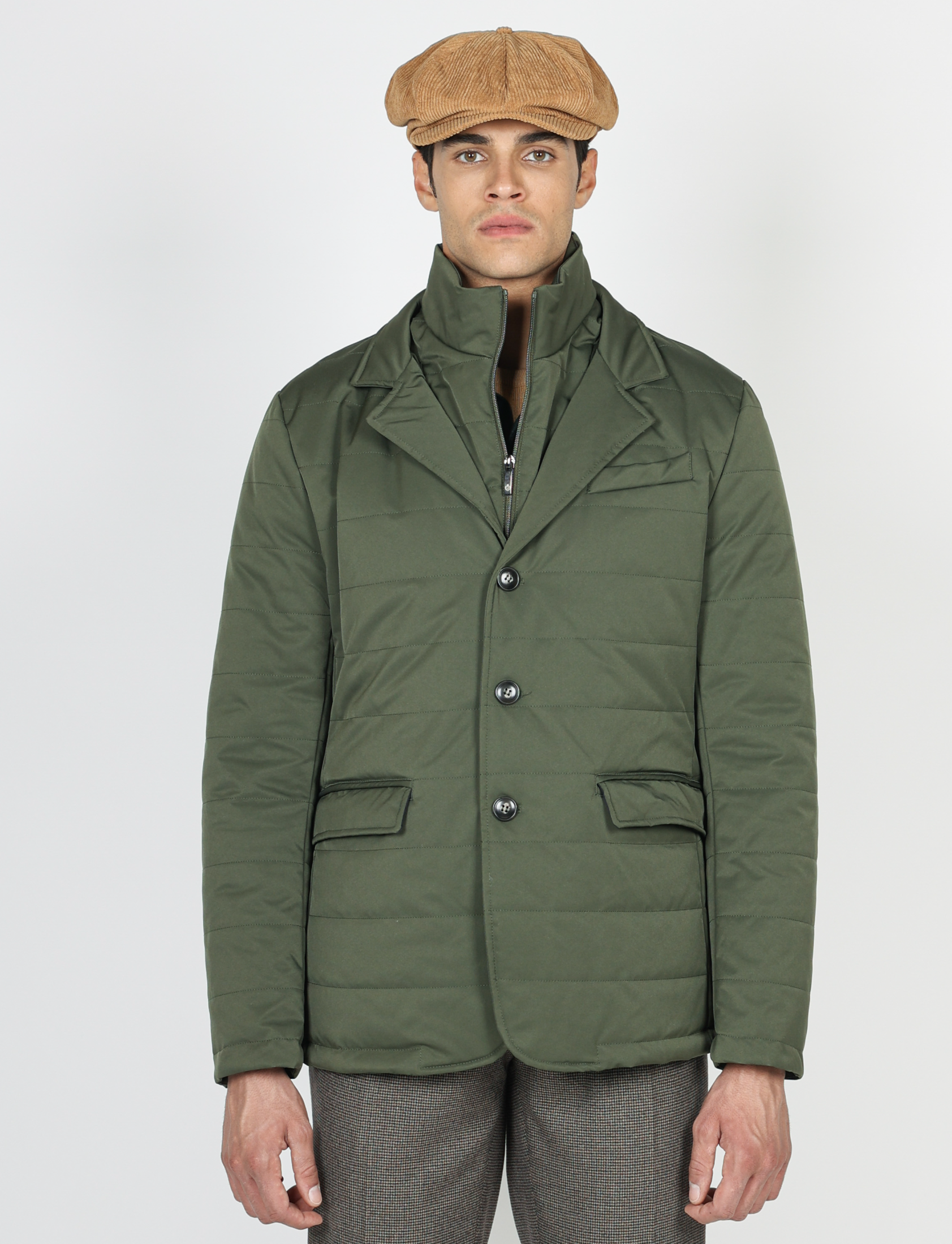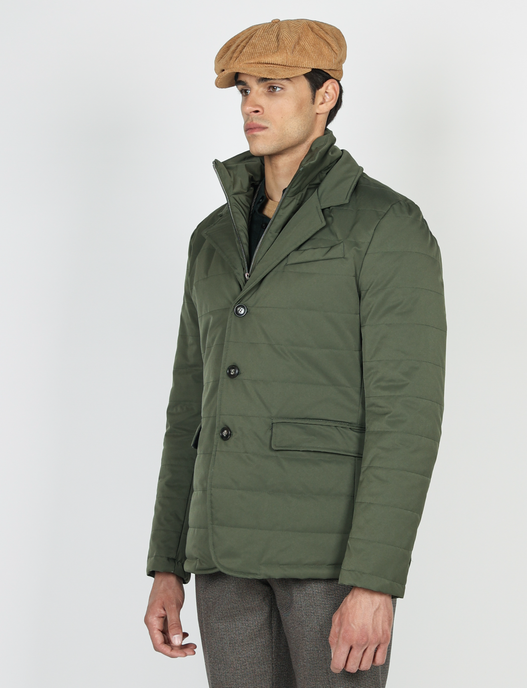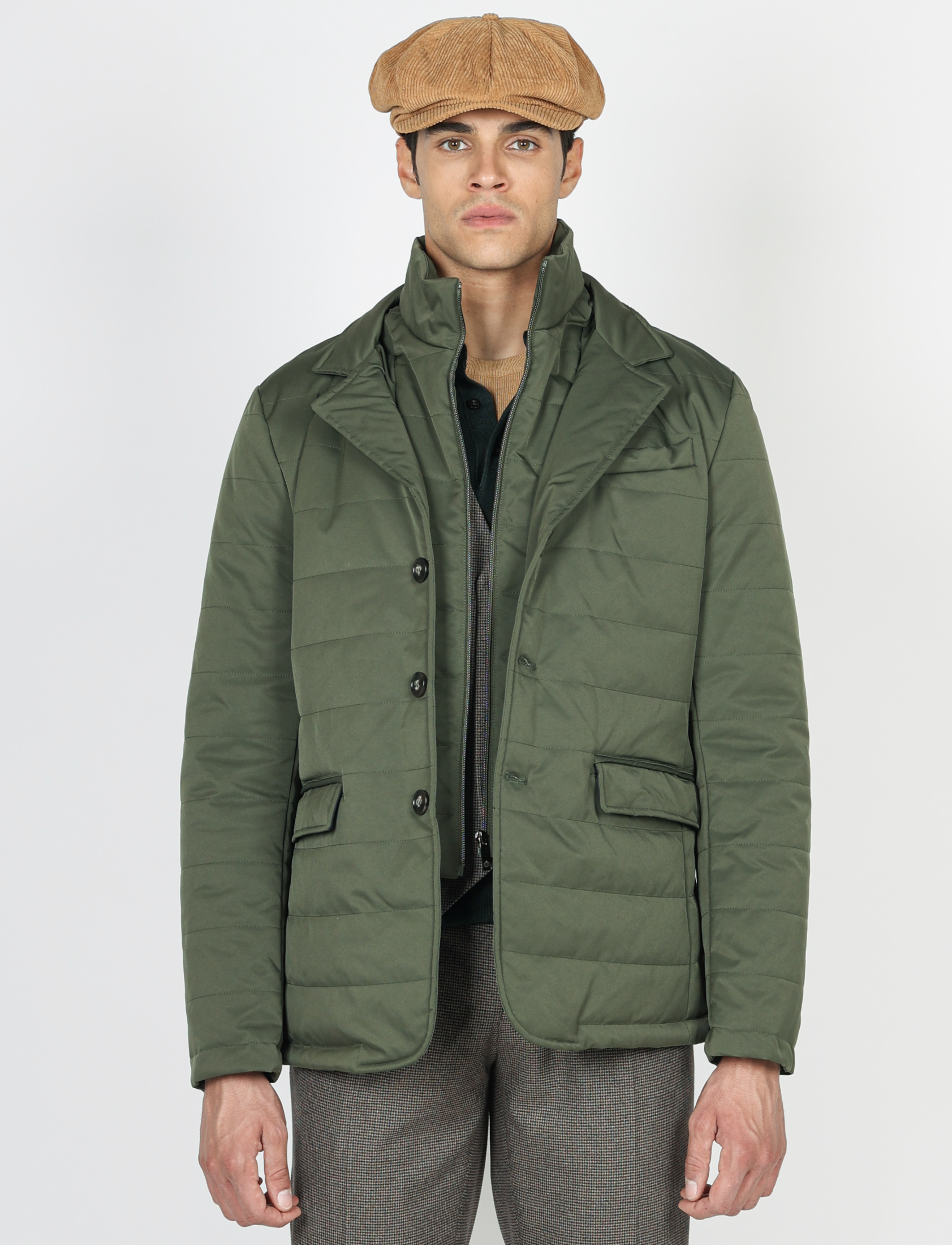 Giacca imbottita trapuntata dallo stile tecnico e raffinato. Realizzata in tessuto resistente e leggero, assicura massimo comfort grazie alla pettorina integrata con zip e all’interno foderato, mentre la linea sartoriale a tre bottoni aggiunge un tocco di classe ideale per ogni occasione. Un capo perfetto per affrontare la stagione fredda con eleganza contemporanea.