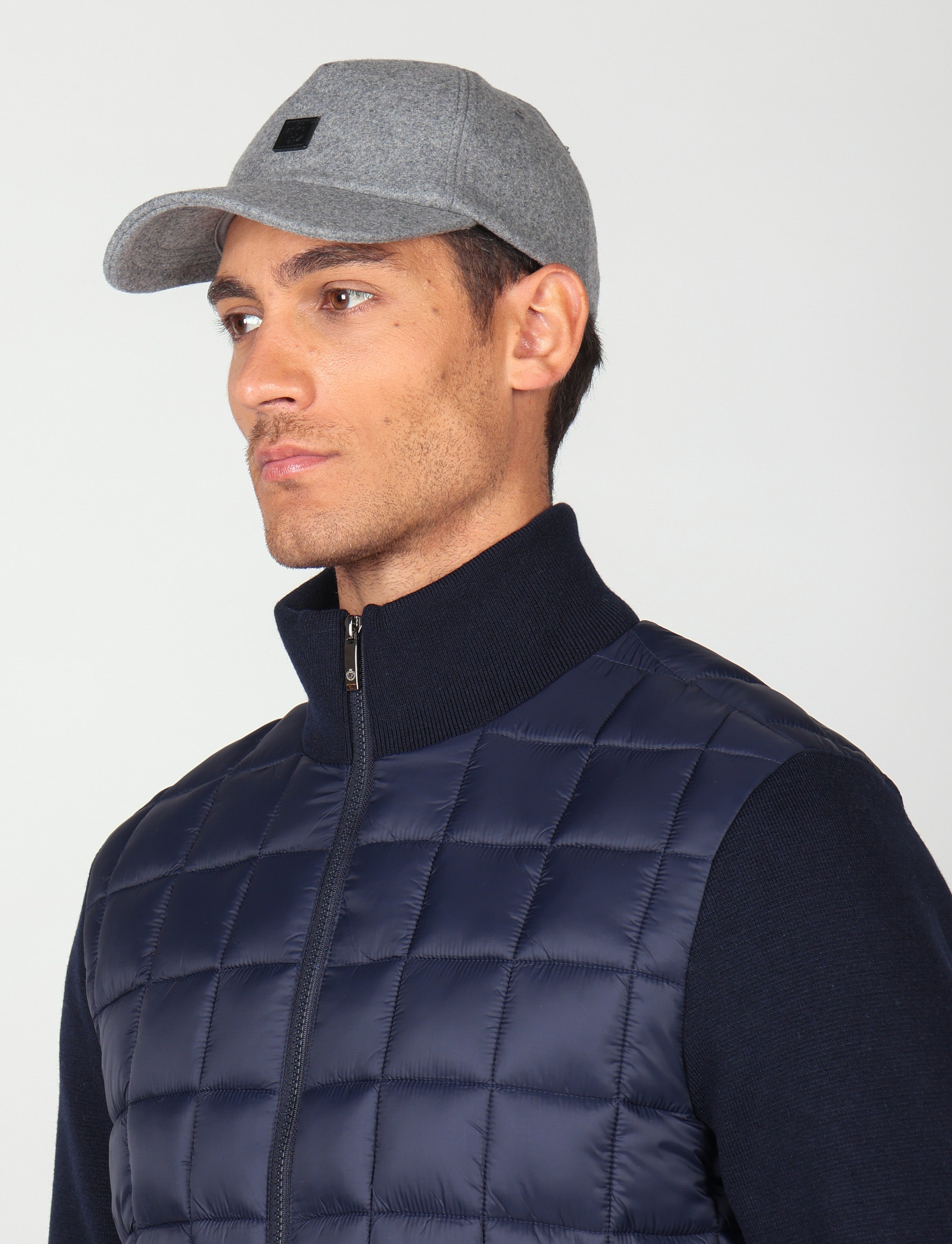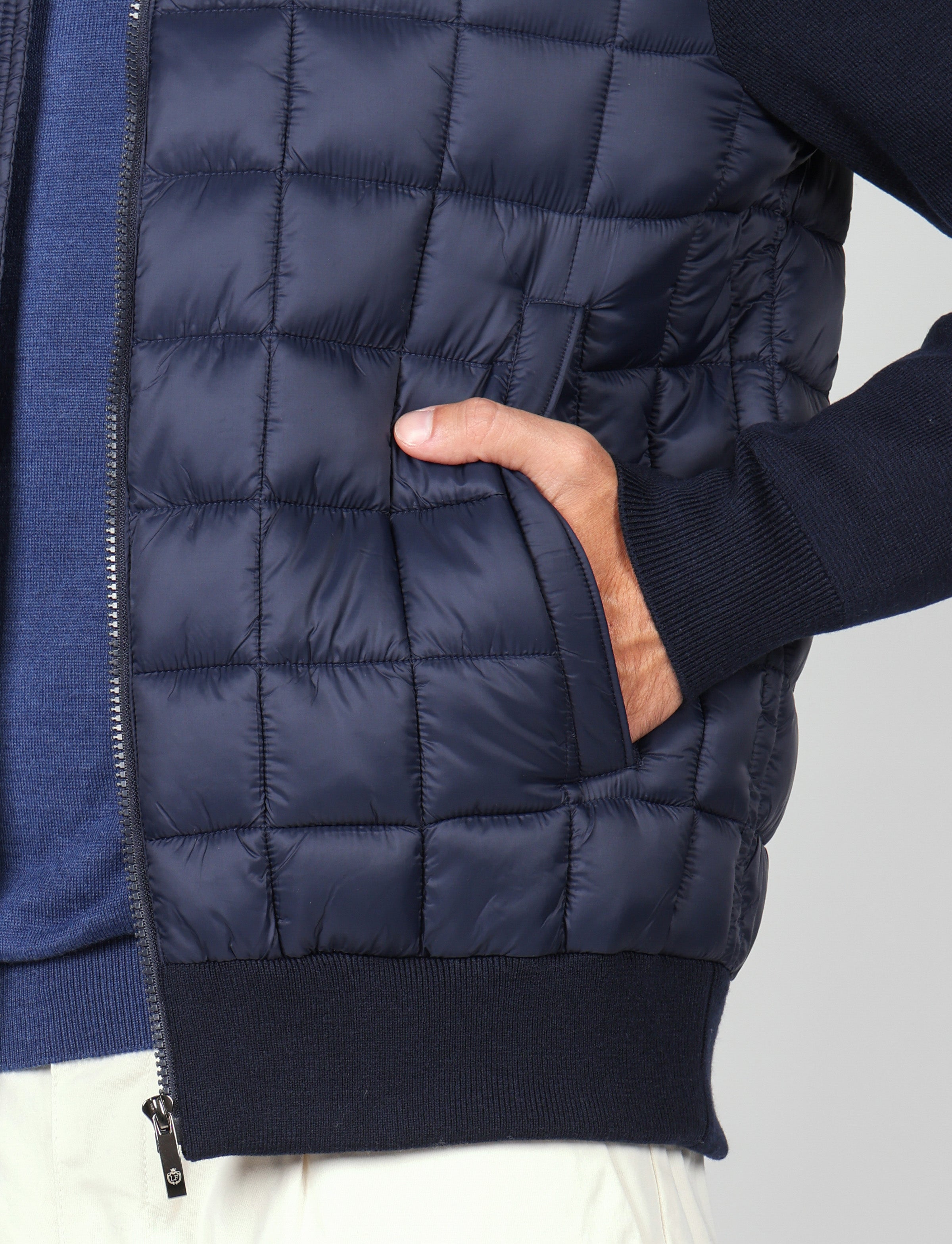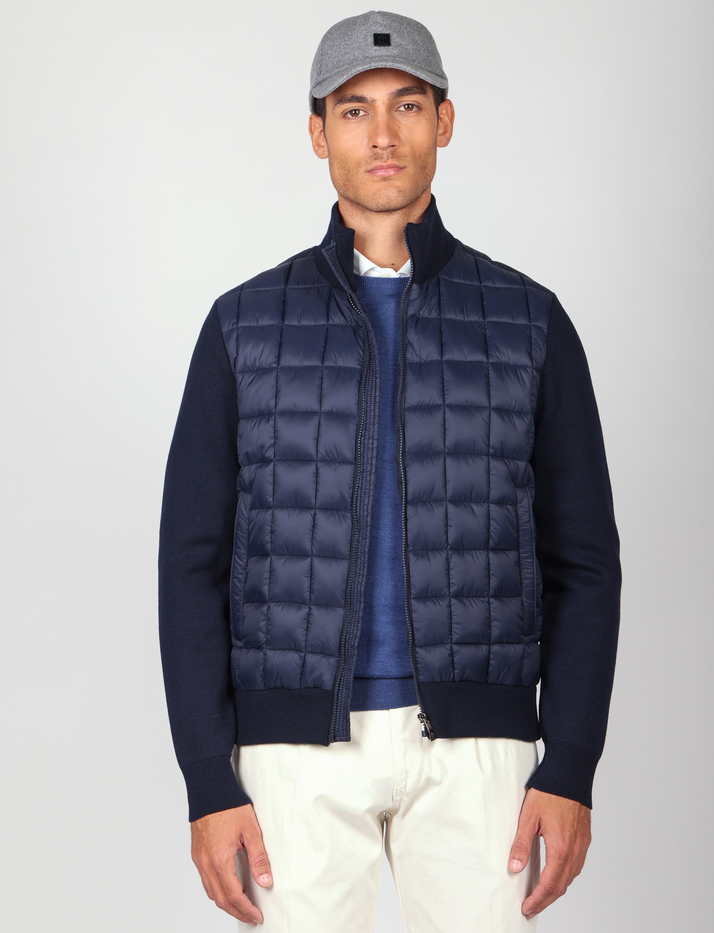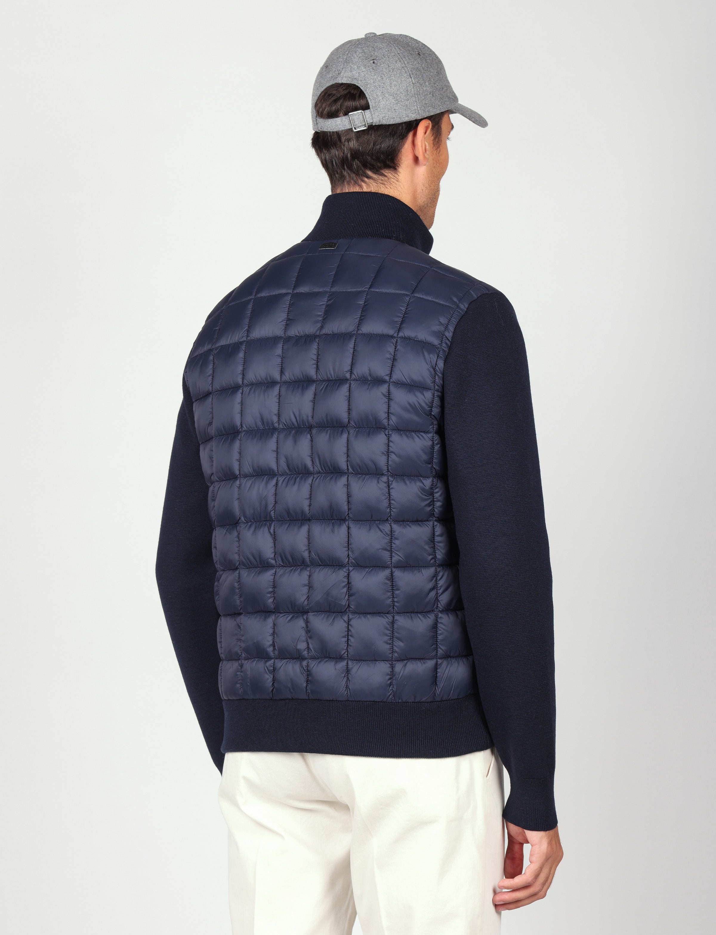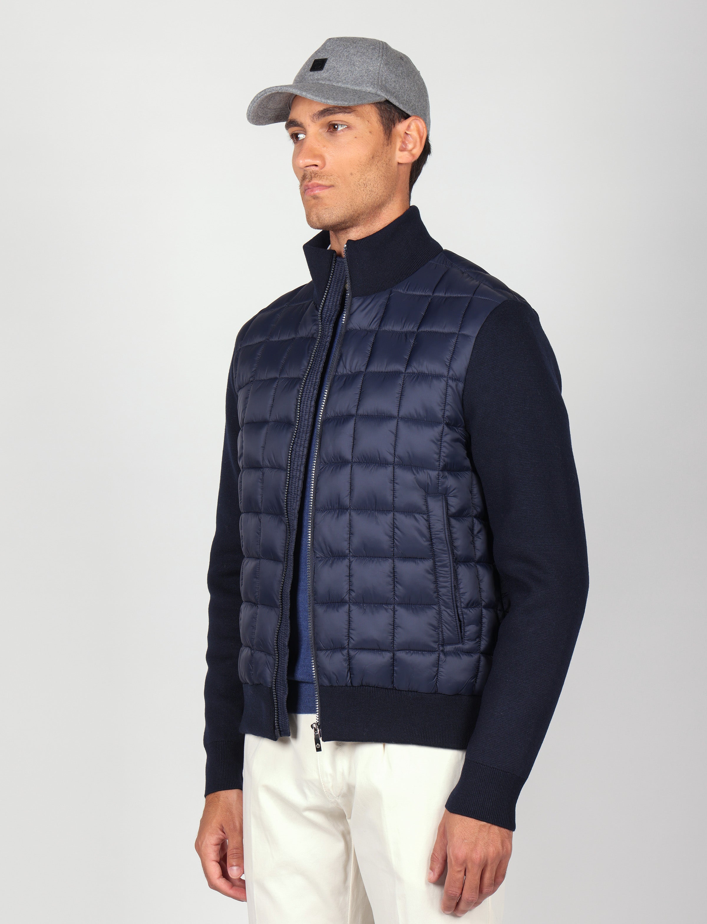 Maglia trapuntata imbottita a giubbino dal design moderno, arricchita da collo, fondo e maniche in maglia a contrasto per un look casual e raffinato. Comoda e versatile, perfetta come capo intermedio o soprabito leggero nelle giornate fresche.