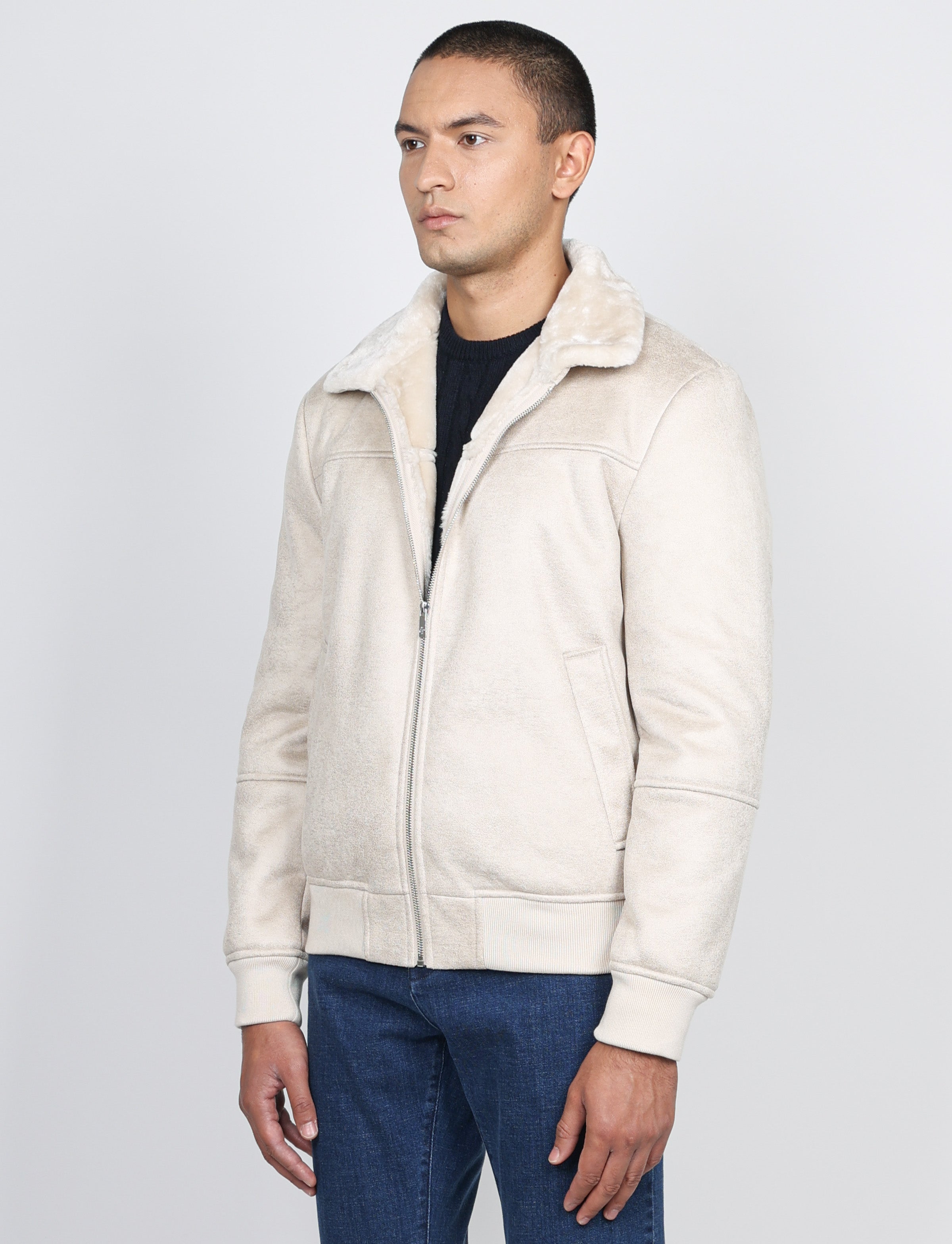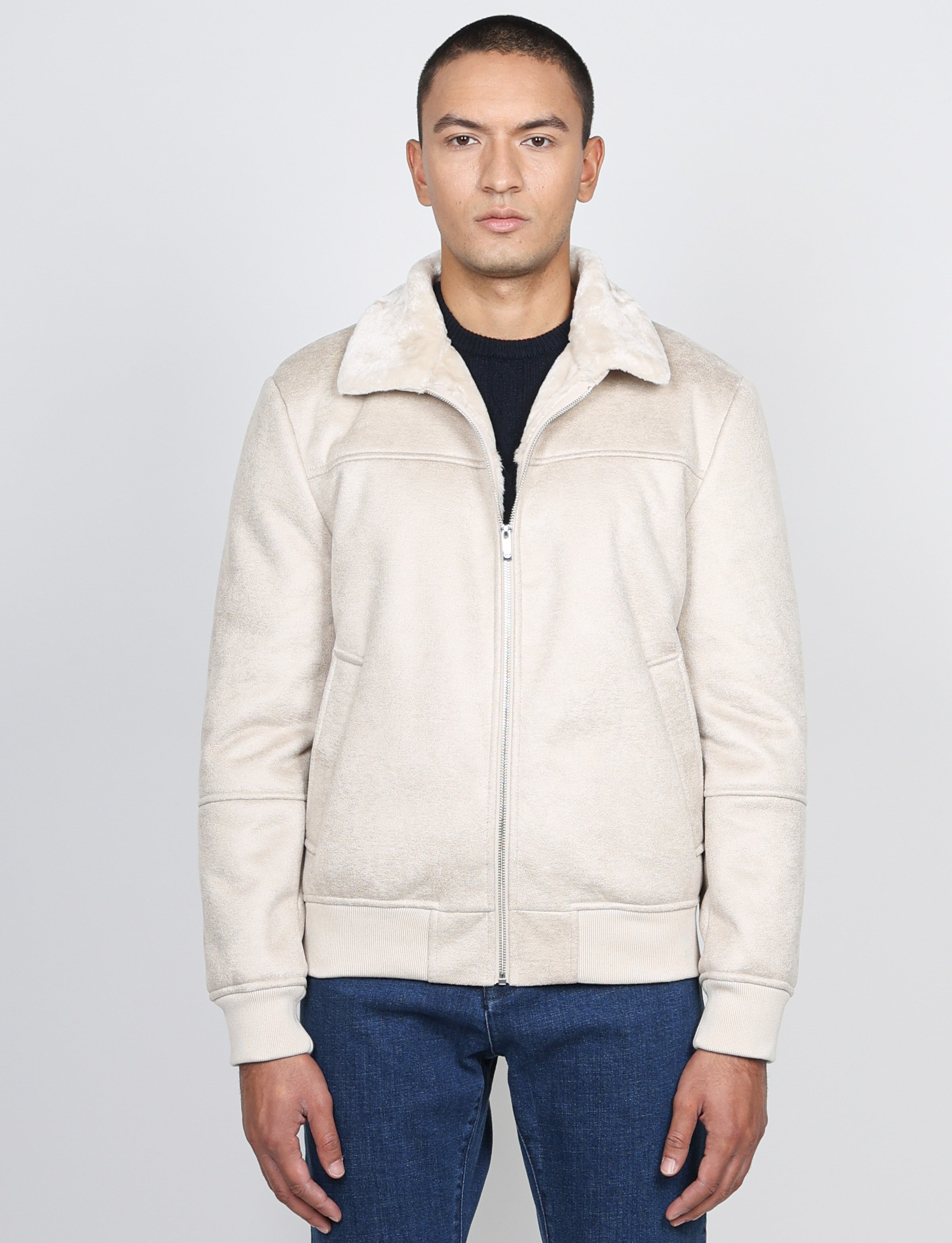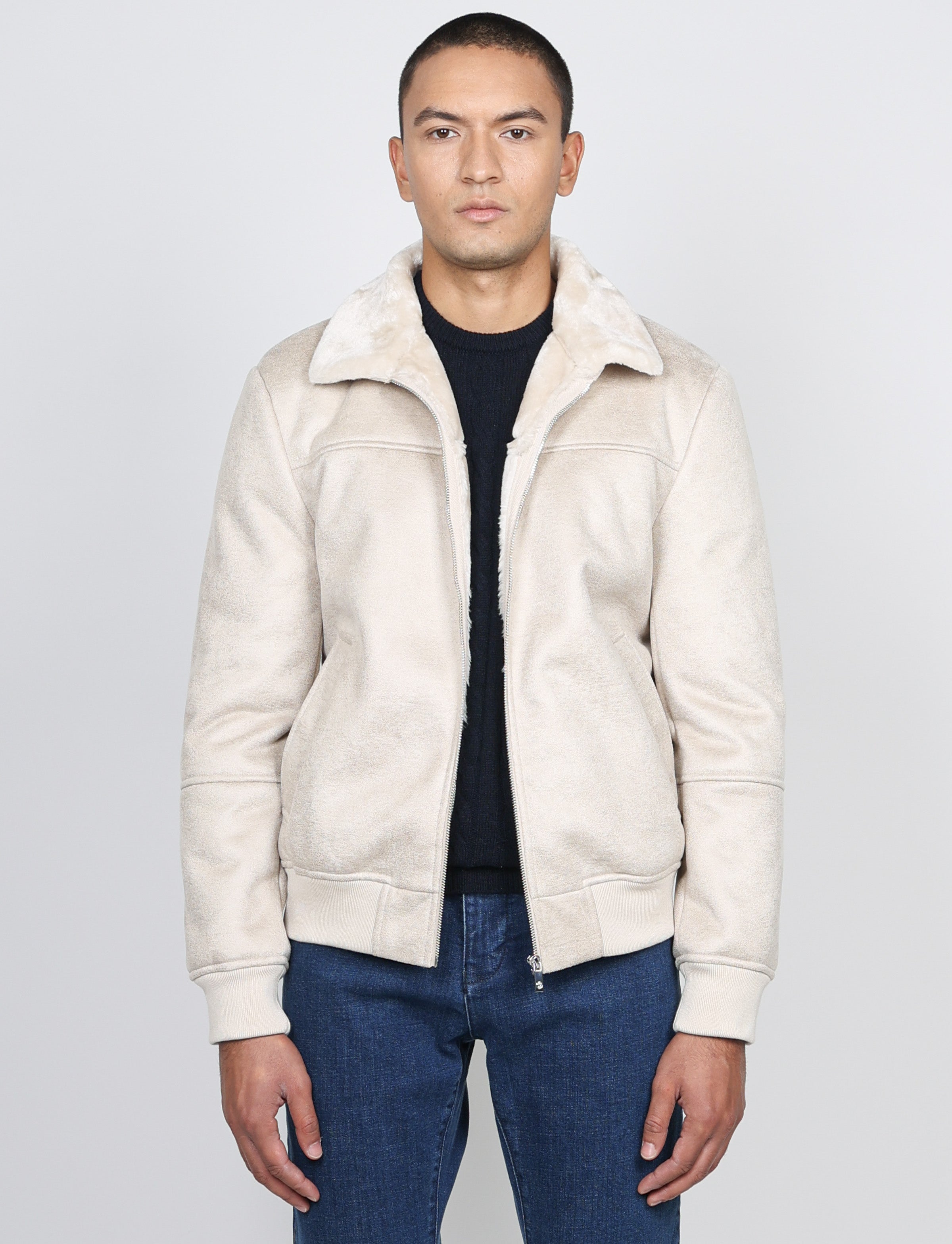 Giubbino modello Cortina in eco montone effetto scamosciato, con interno caldo e soffice in eco shearling.