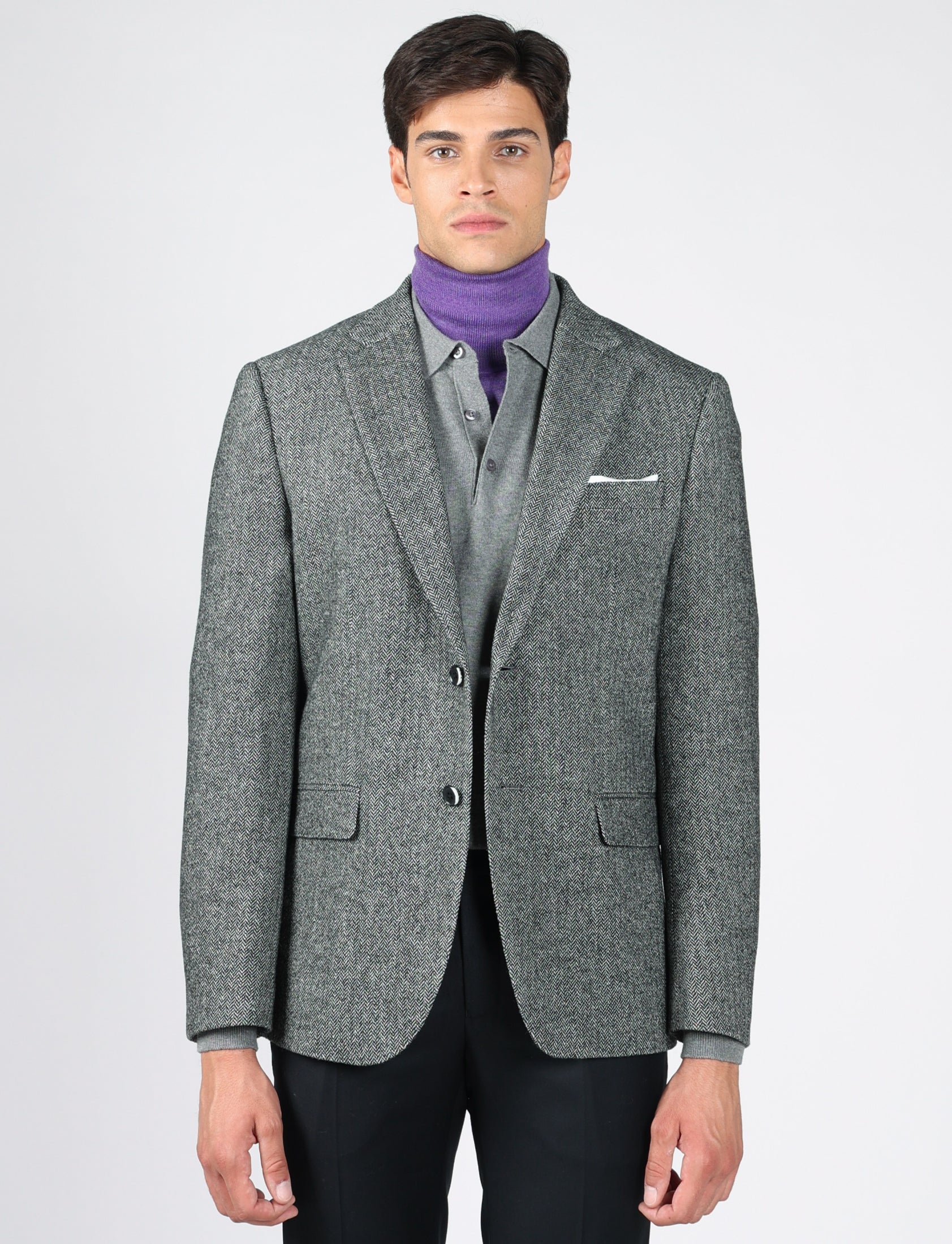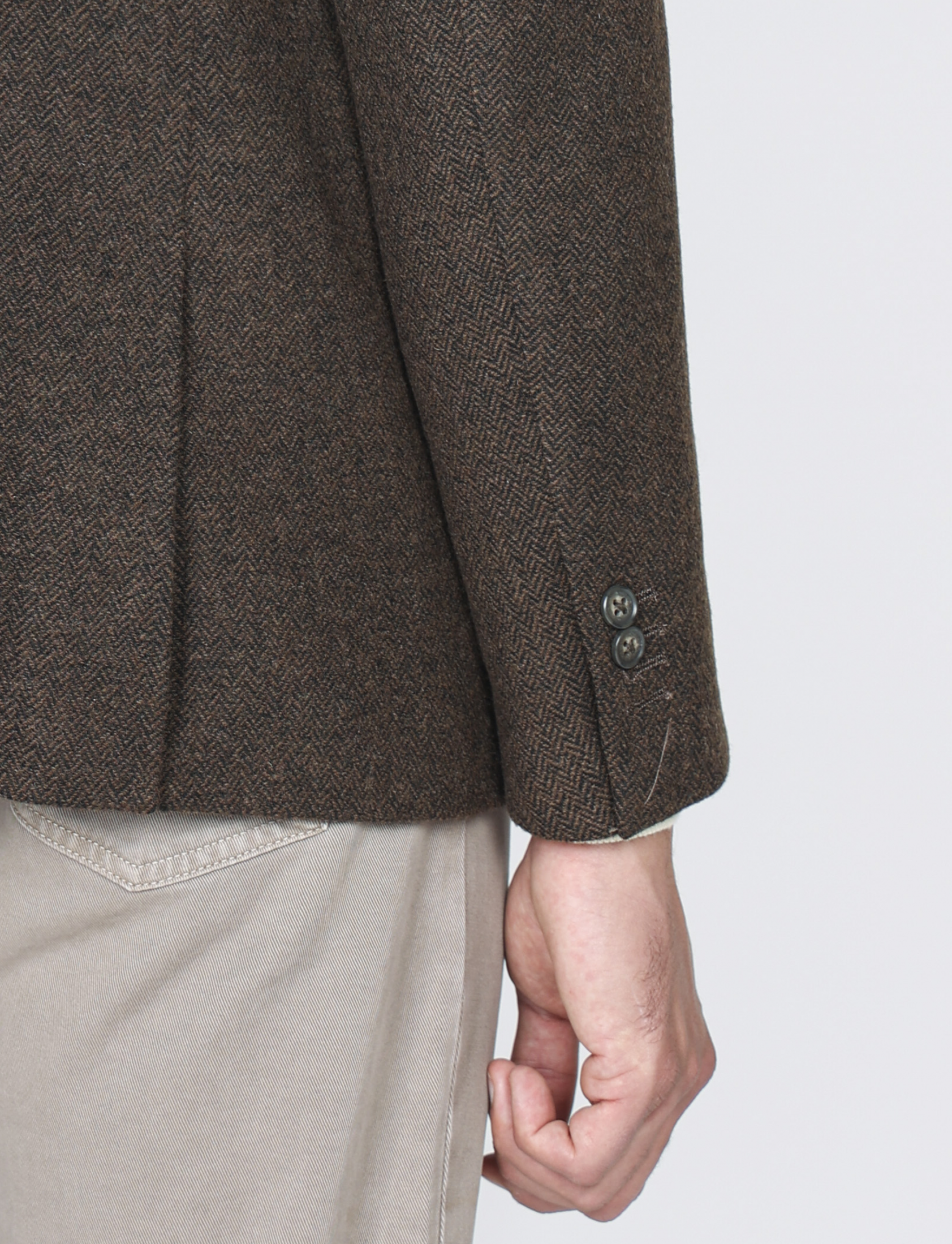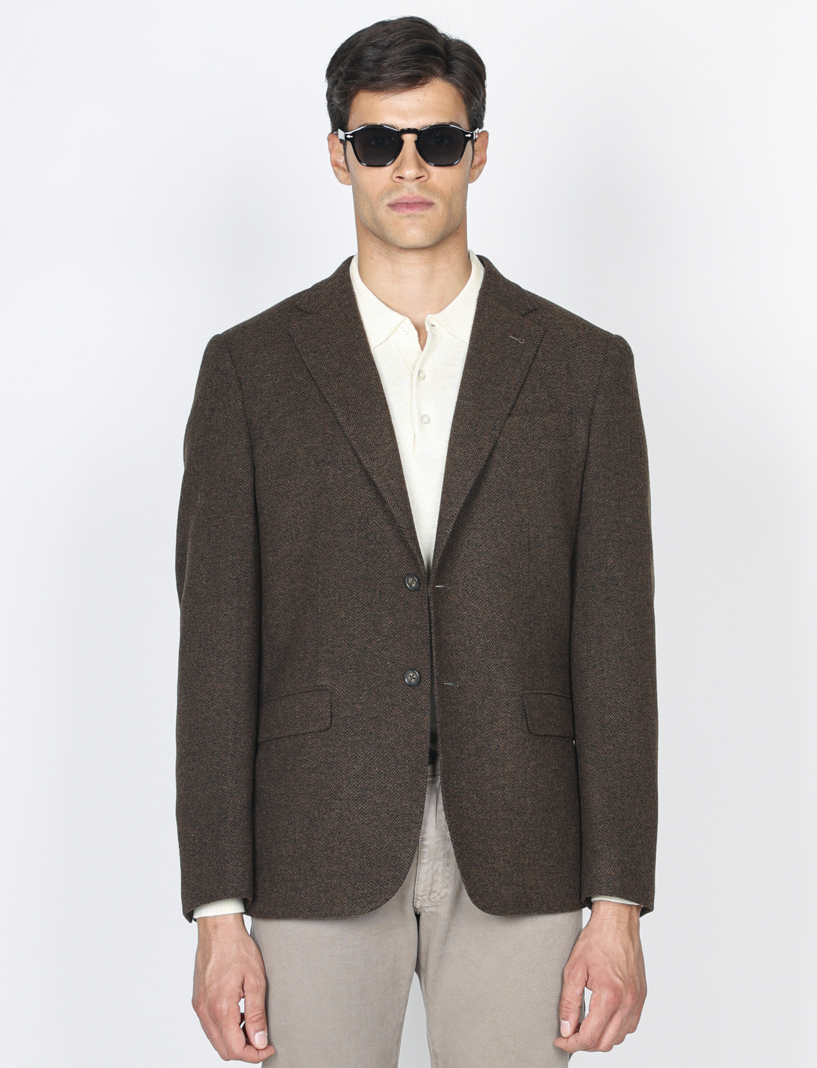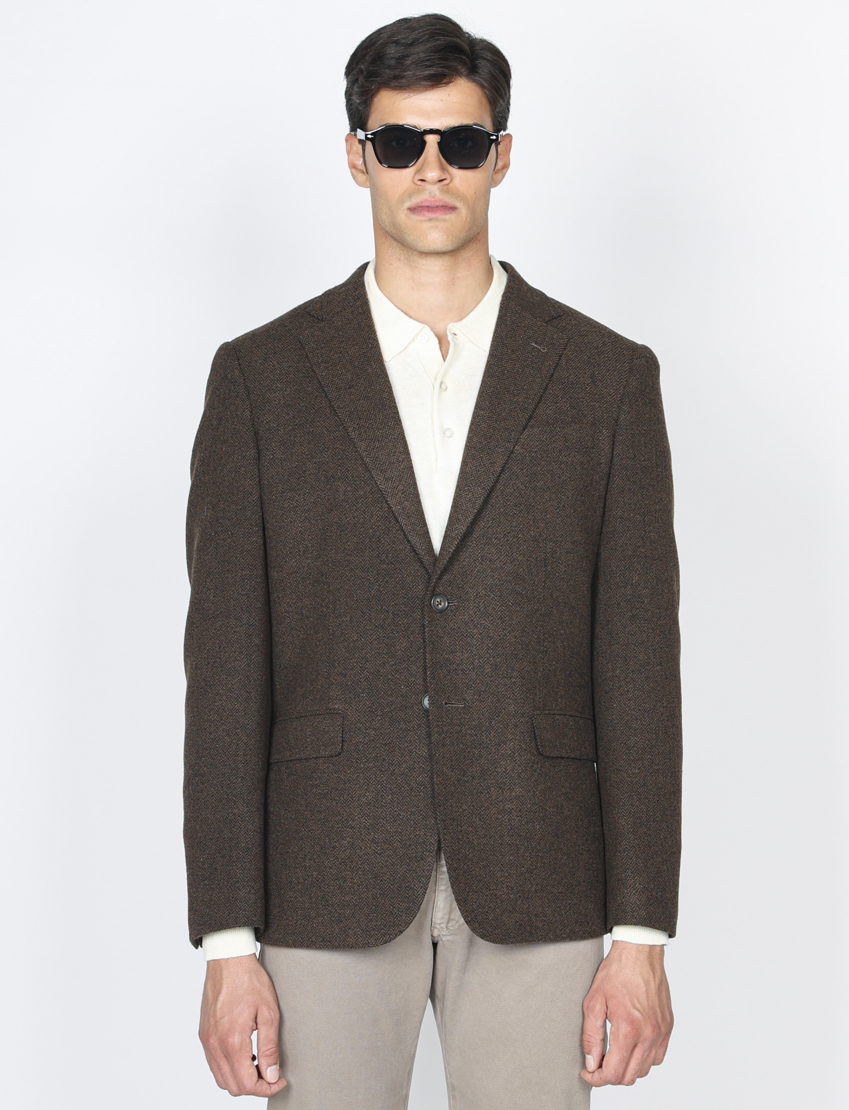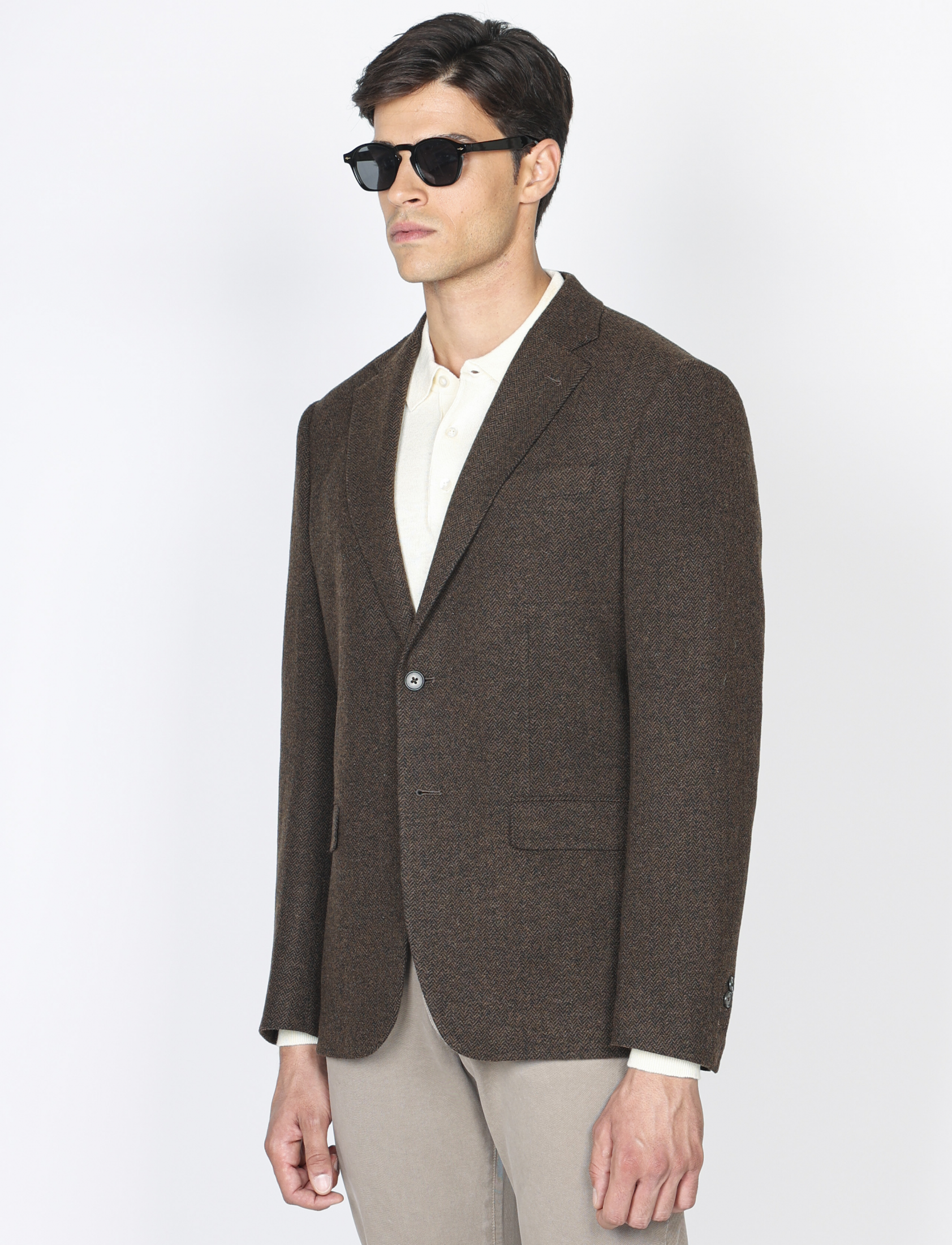Giacca in tessuto spigato, realizzata in un pregiato misto lana con una mano morbida e compatta.