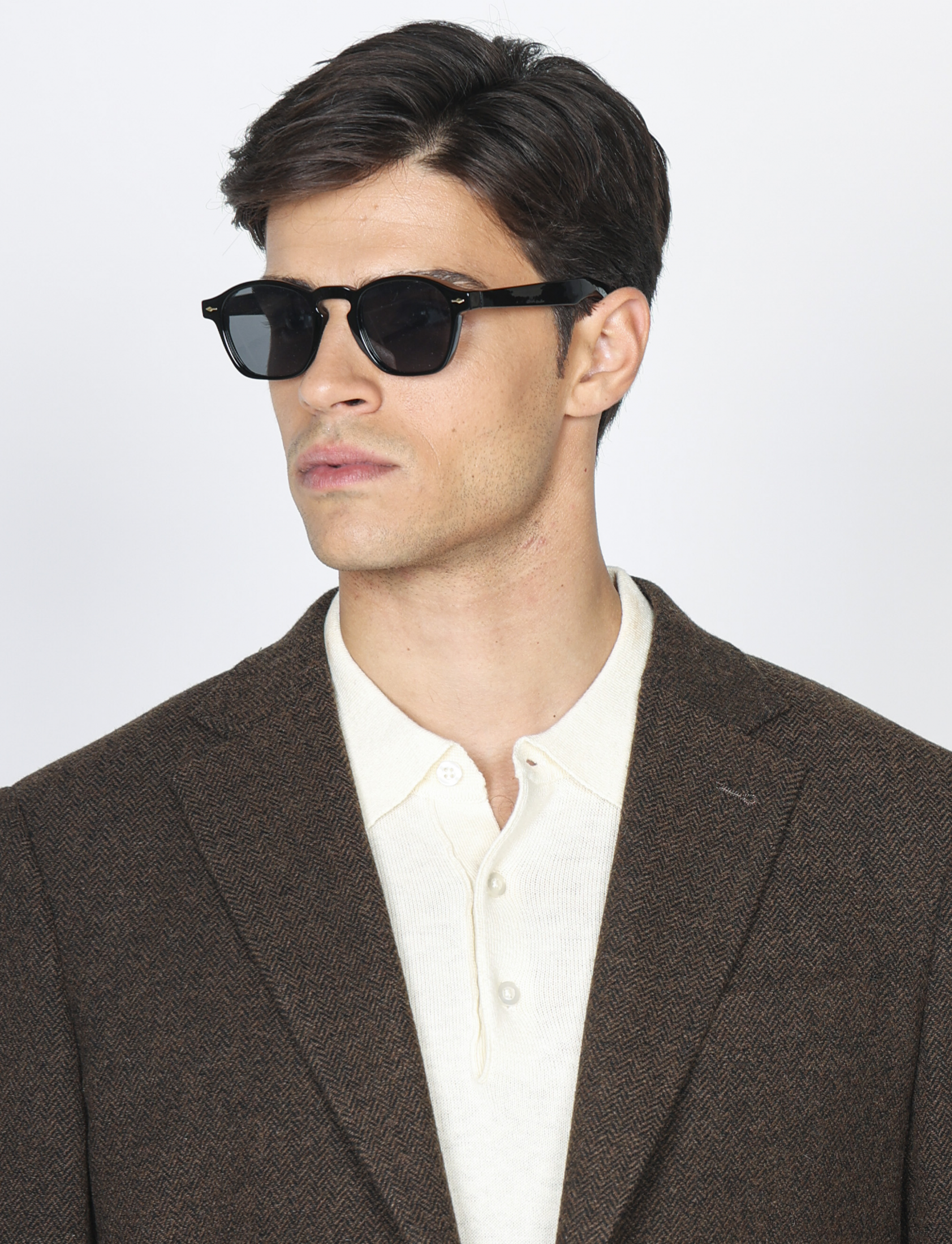 Il taglio slim fit valorizza la silhouette, mentre la costruzione moderna e la texture spigata donano un’eleganza classica ma contemporanea.