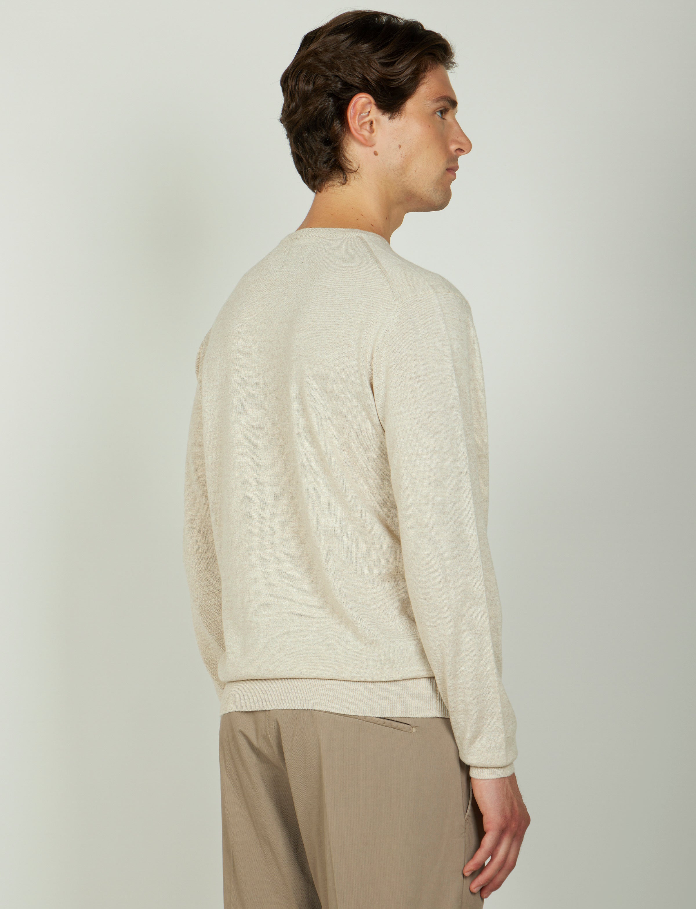 Maglia in misto cotone e lana dal design pulito e versatile. Morbida, leggera e traspirante, è perfetta per completare look casual o raffinati con un tocco di eleganza discreta.