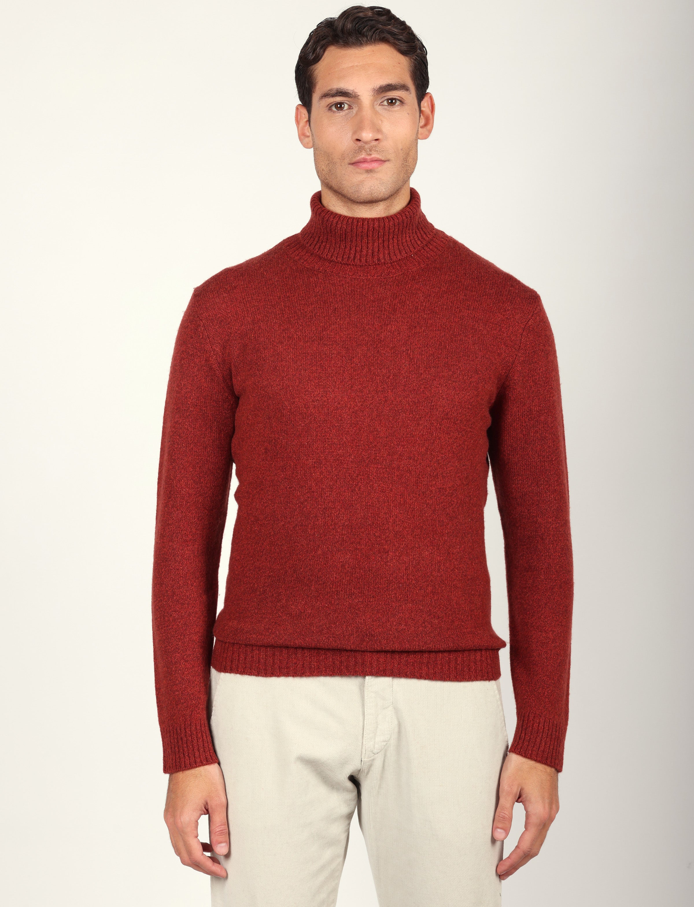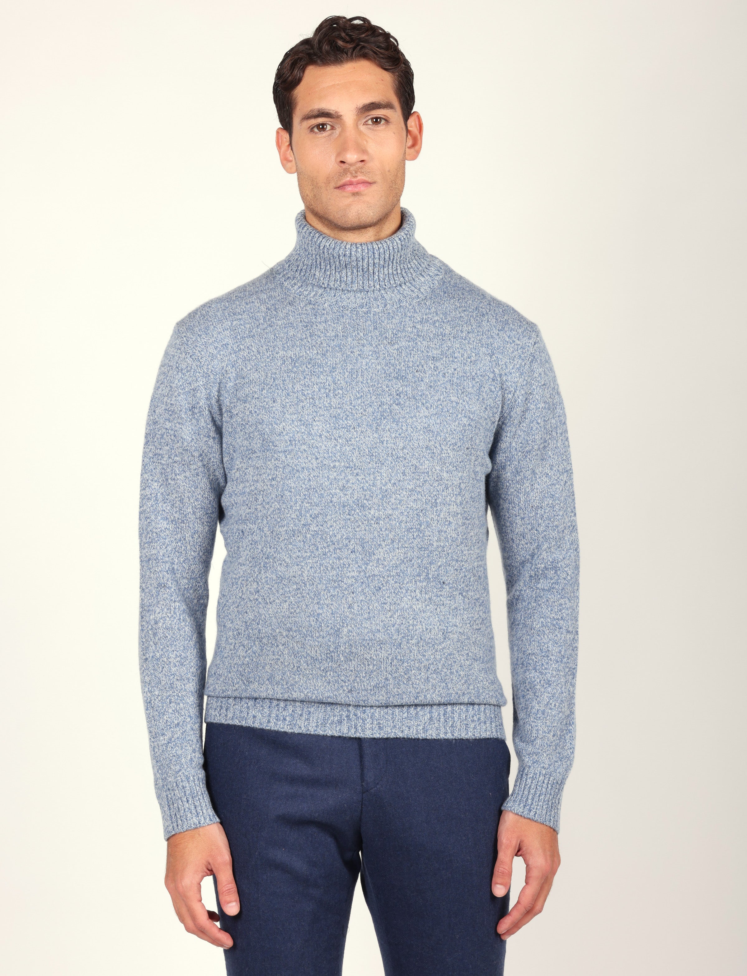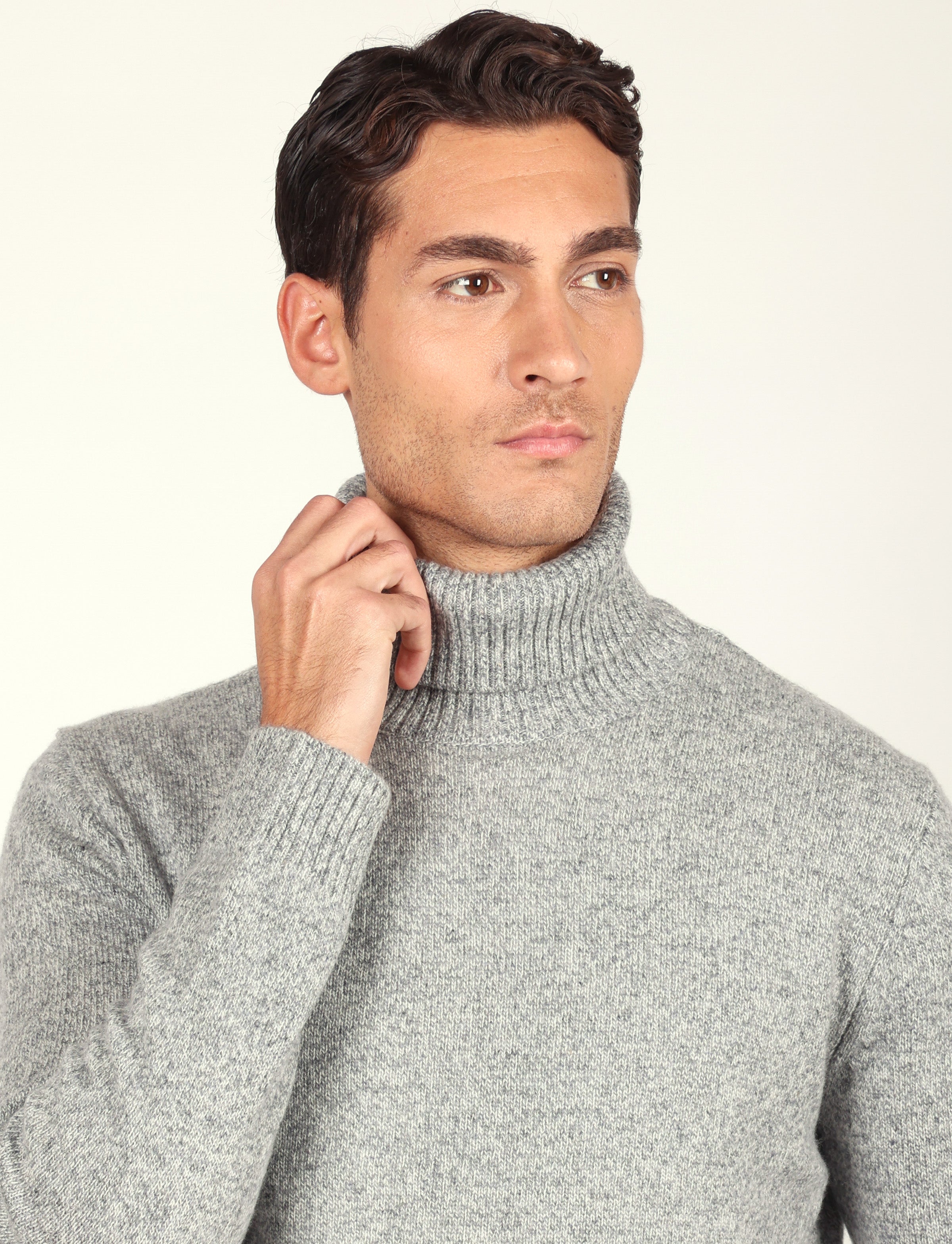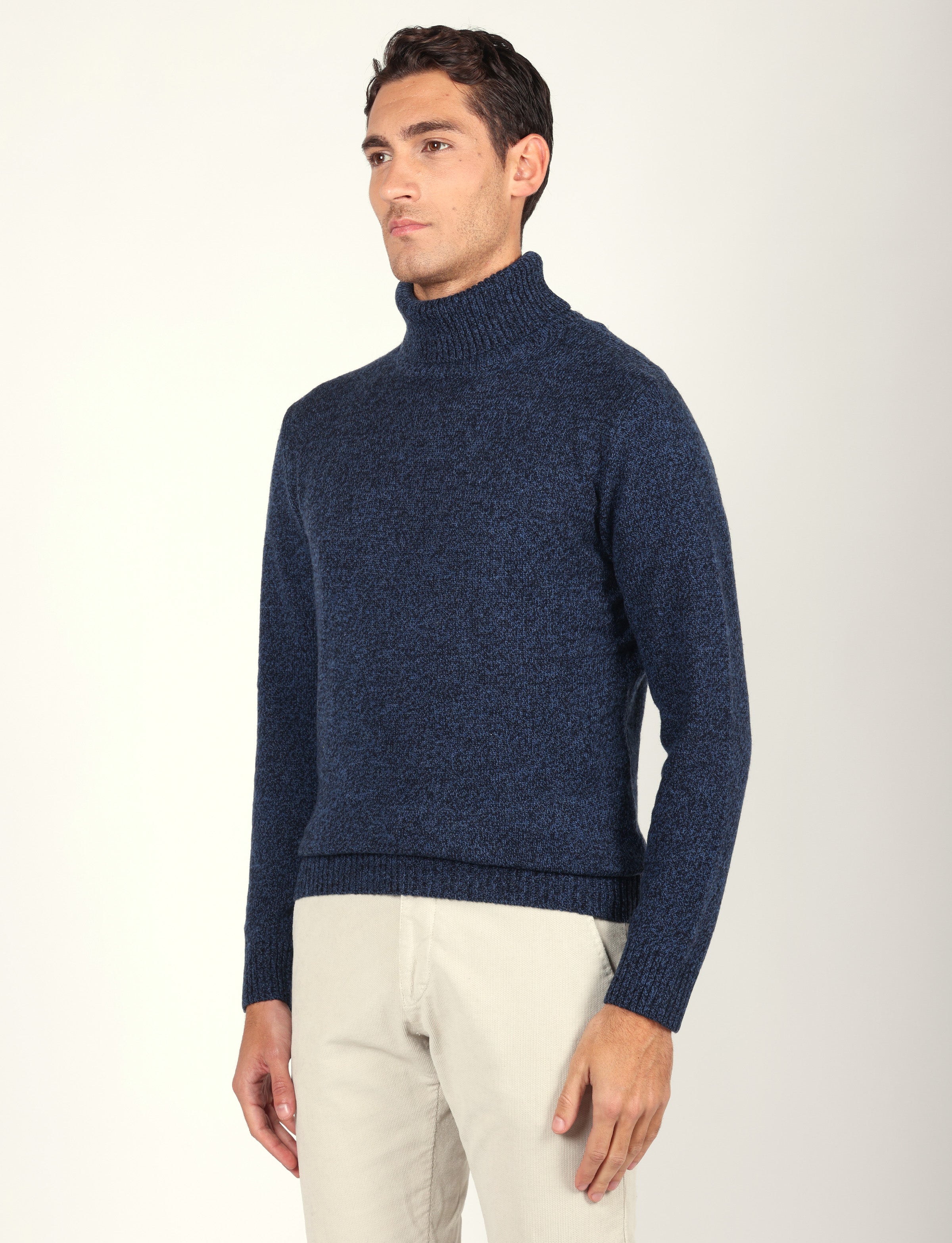 Dolcevita in lambswool mouliné, realizzato con filato pregiato che unisce più tonalità per un effetto cromatico elegante e naturale.