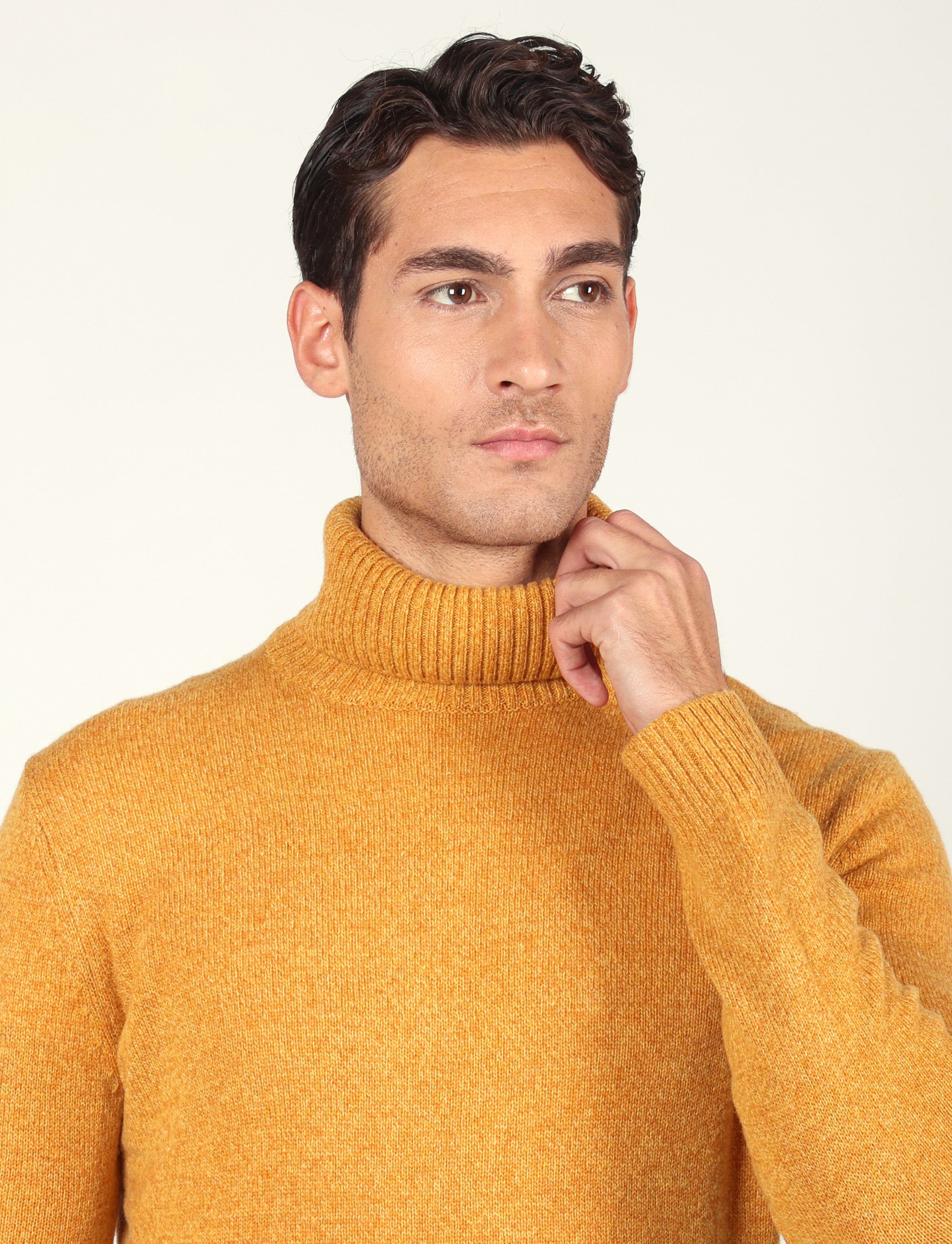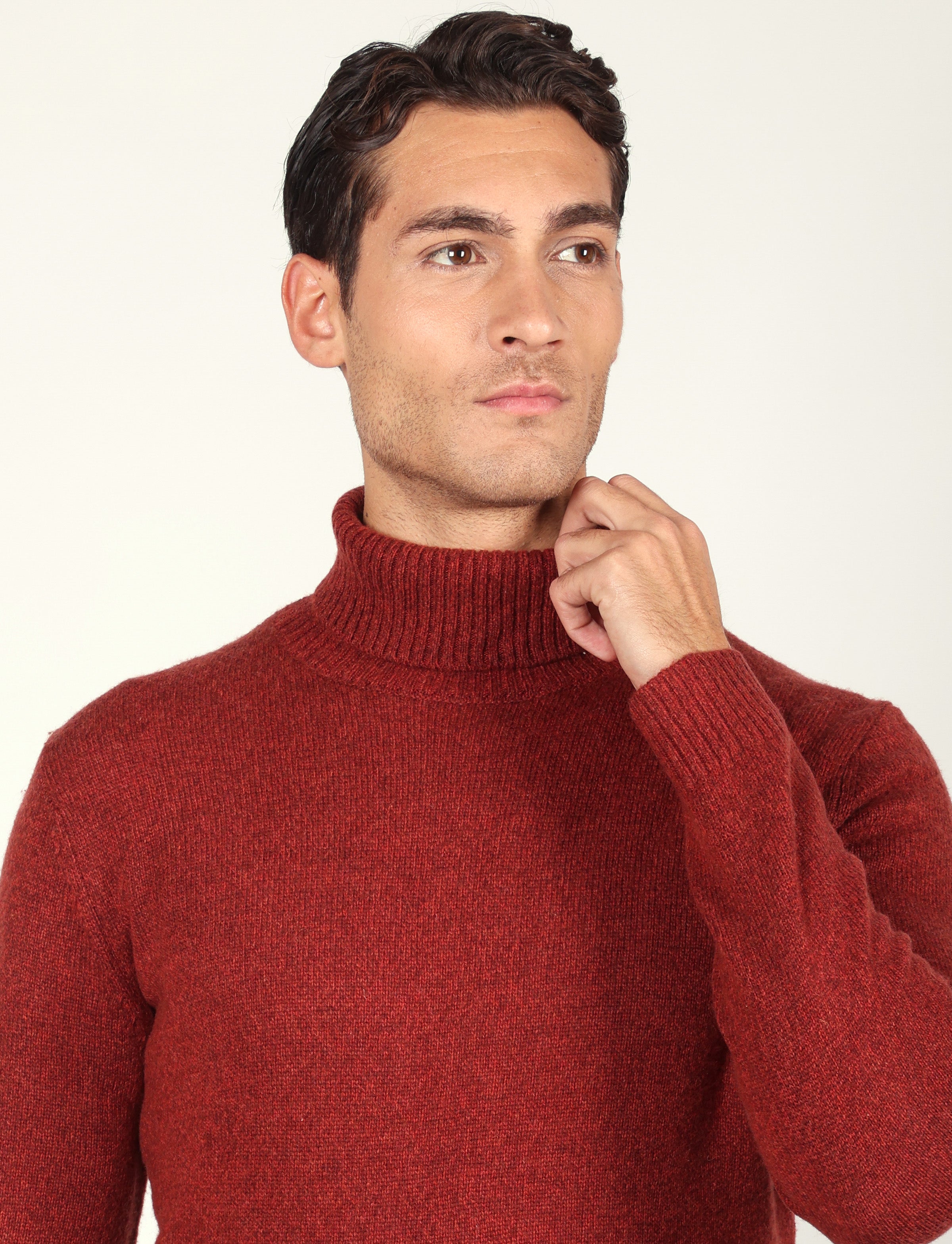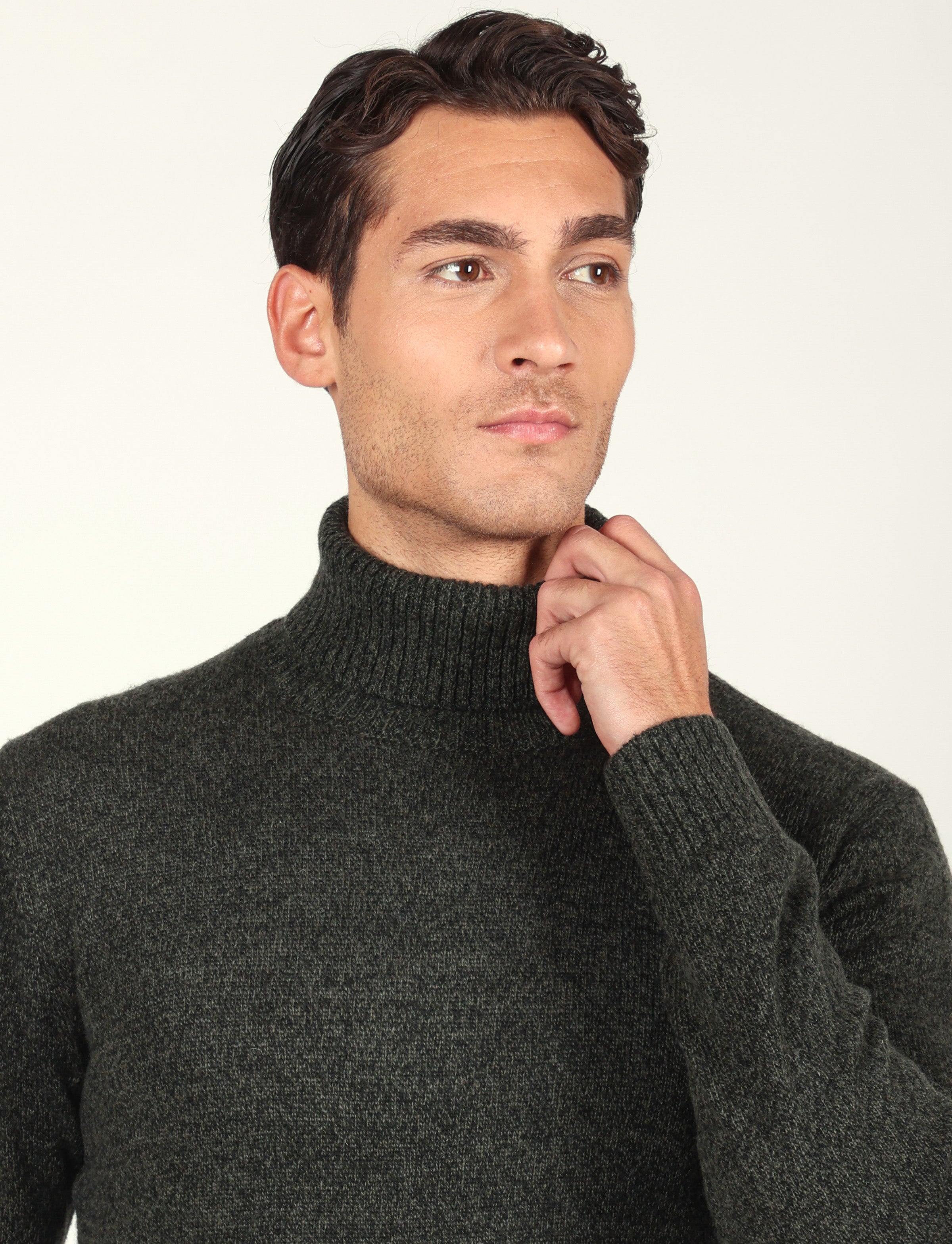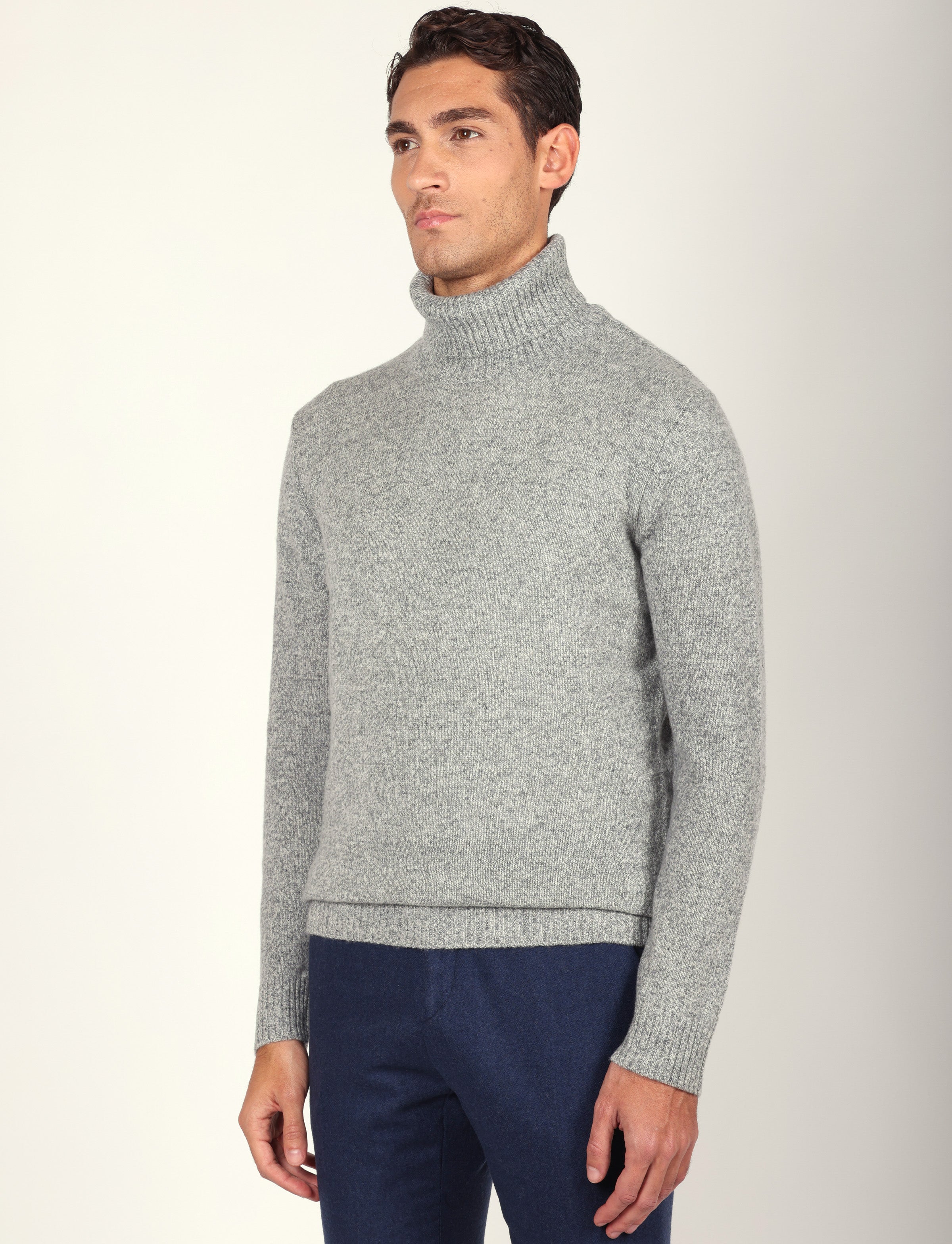 Dolcevita in lambswool mouliné, realizzato con filato pregiato che unisce più tonalità per un effetto cromatico elegante e naturale.