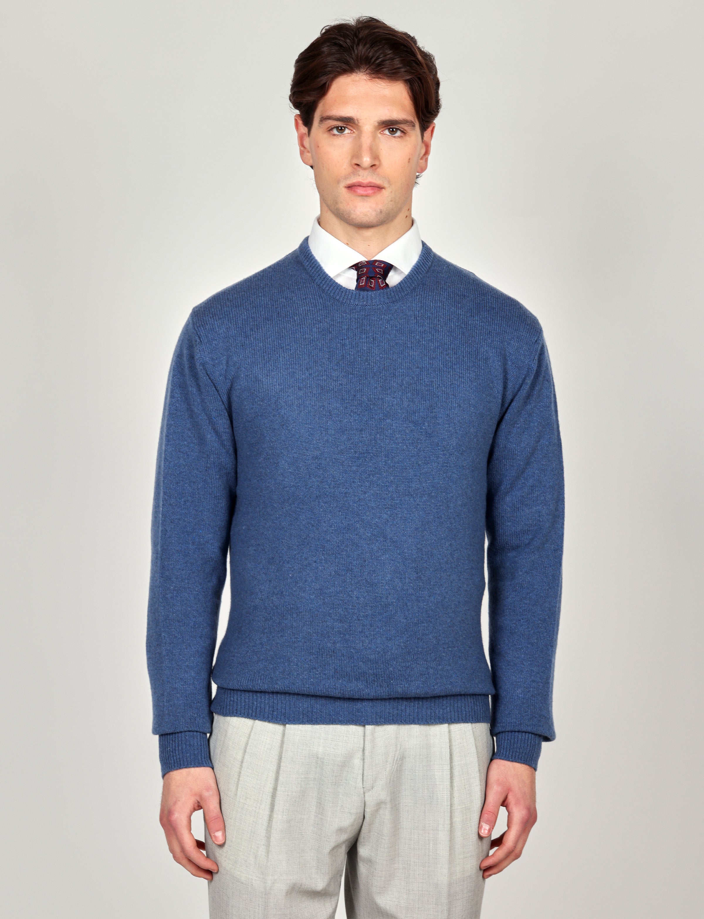 Maglia girocollo in pura lana lambswool, calda e confortevole, ideale per completare outfit casual o eleganti con un tocco di colore e raffinatezza.