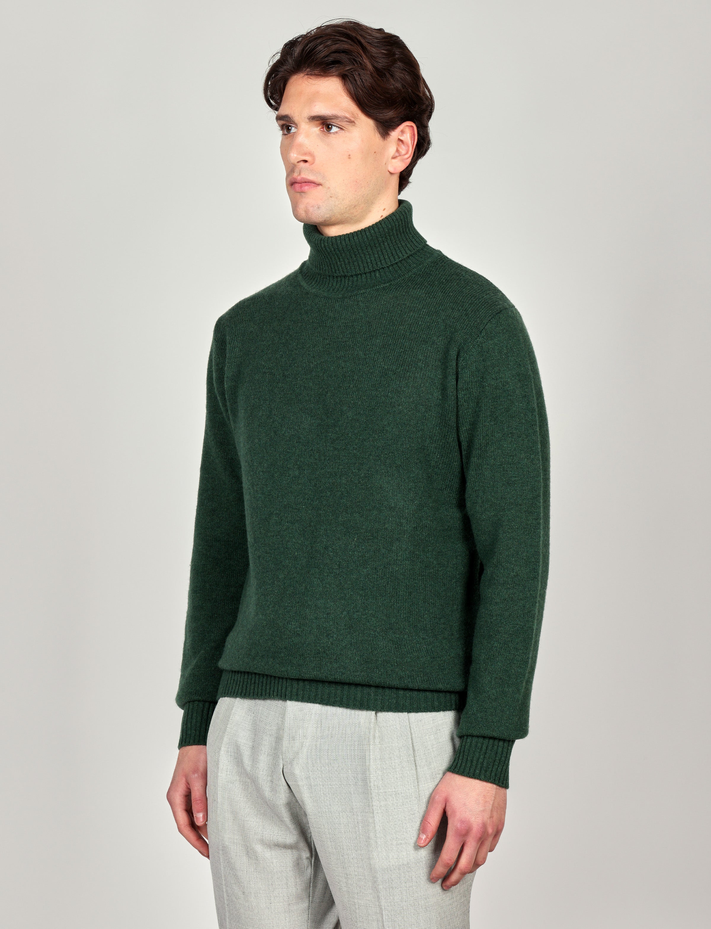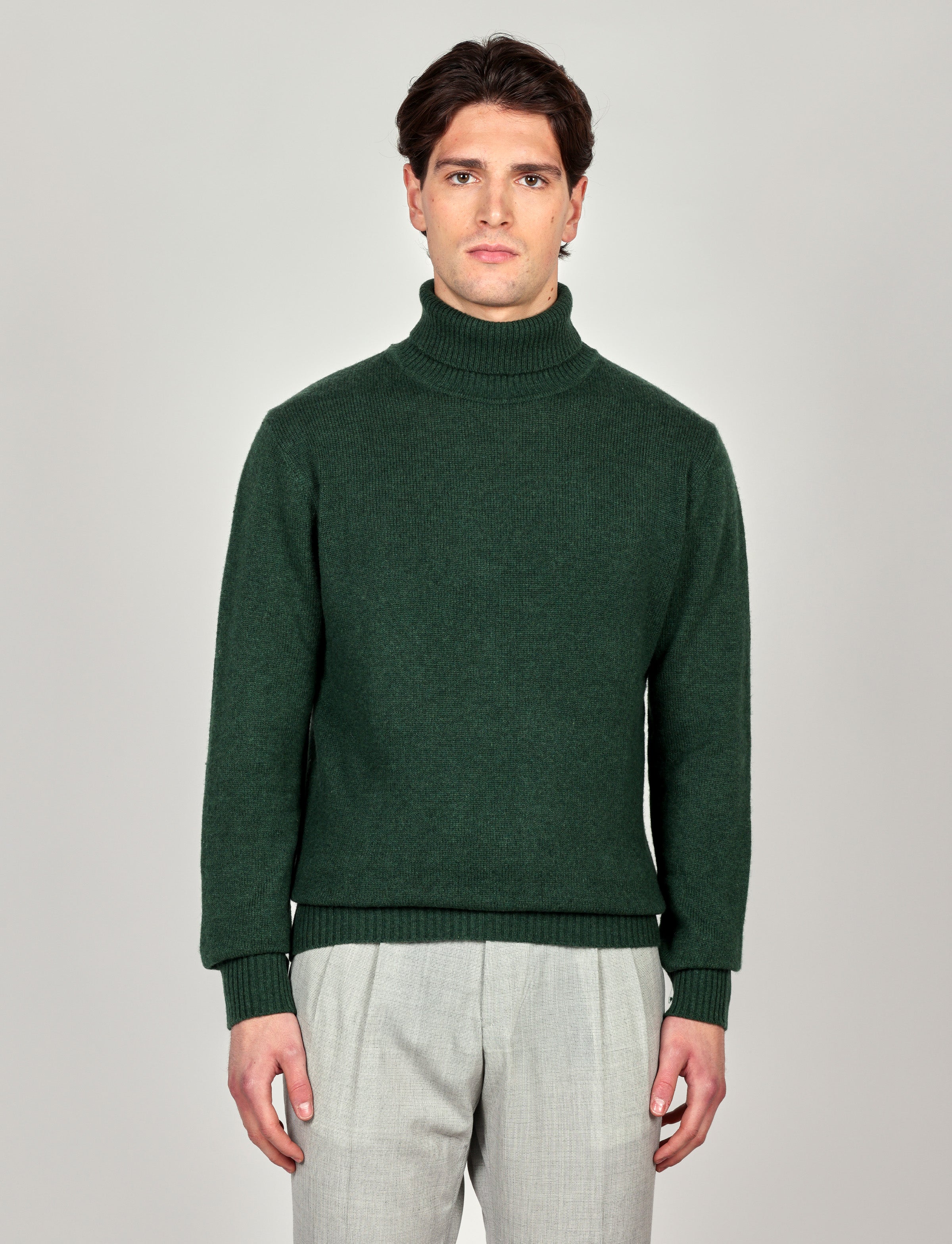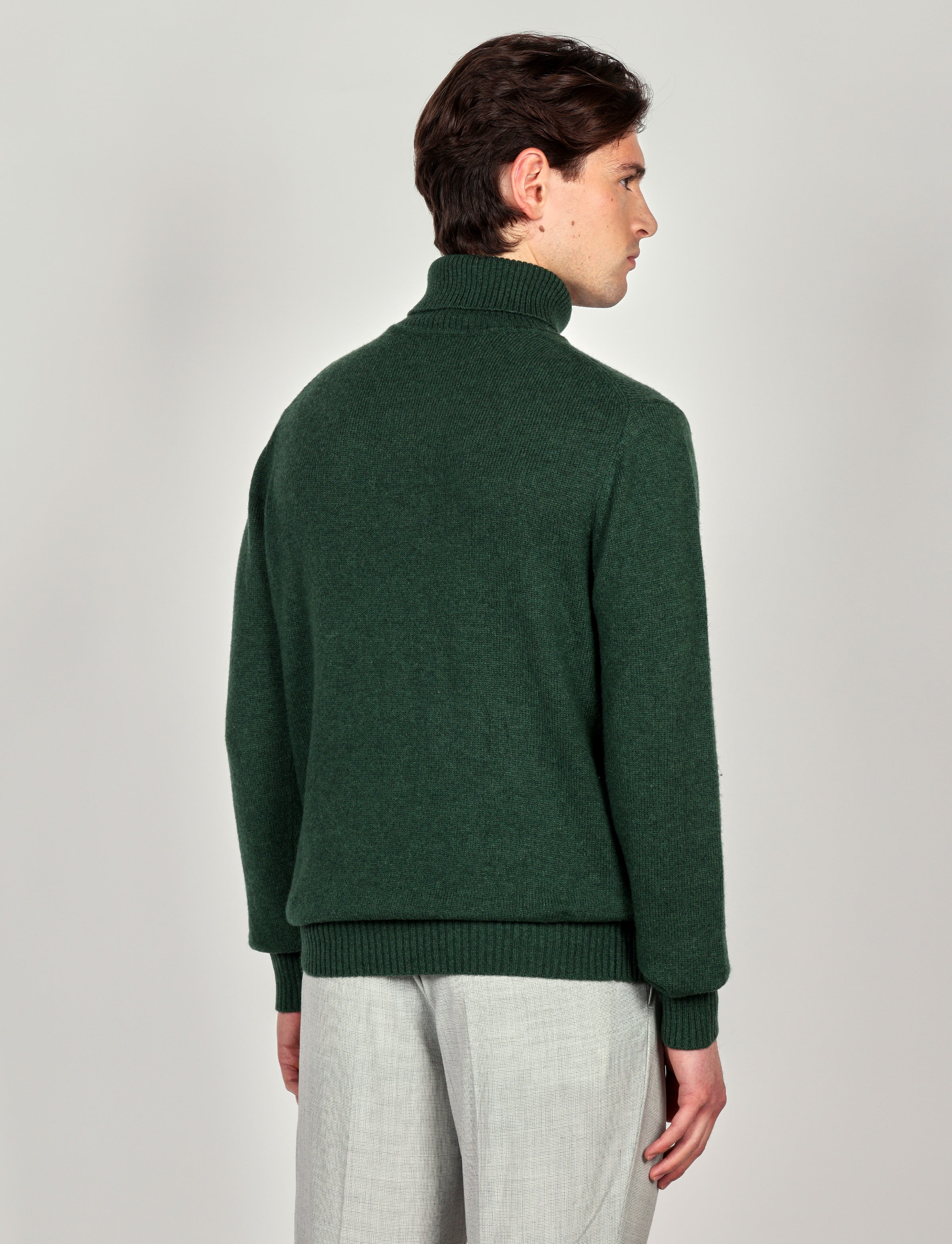 Dolcevita in lana Lambswool con texture liscia e tinta unita. Un capo essenziale dal fascino raffinato, ideale per affrontare l’inverno con comfort e stile senza tempo.