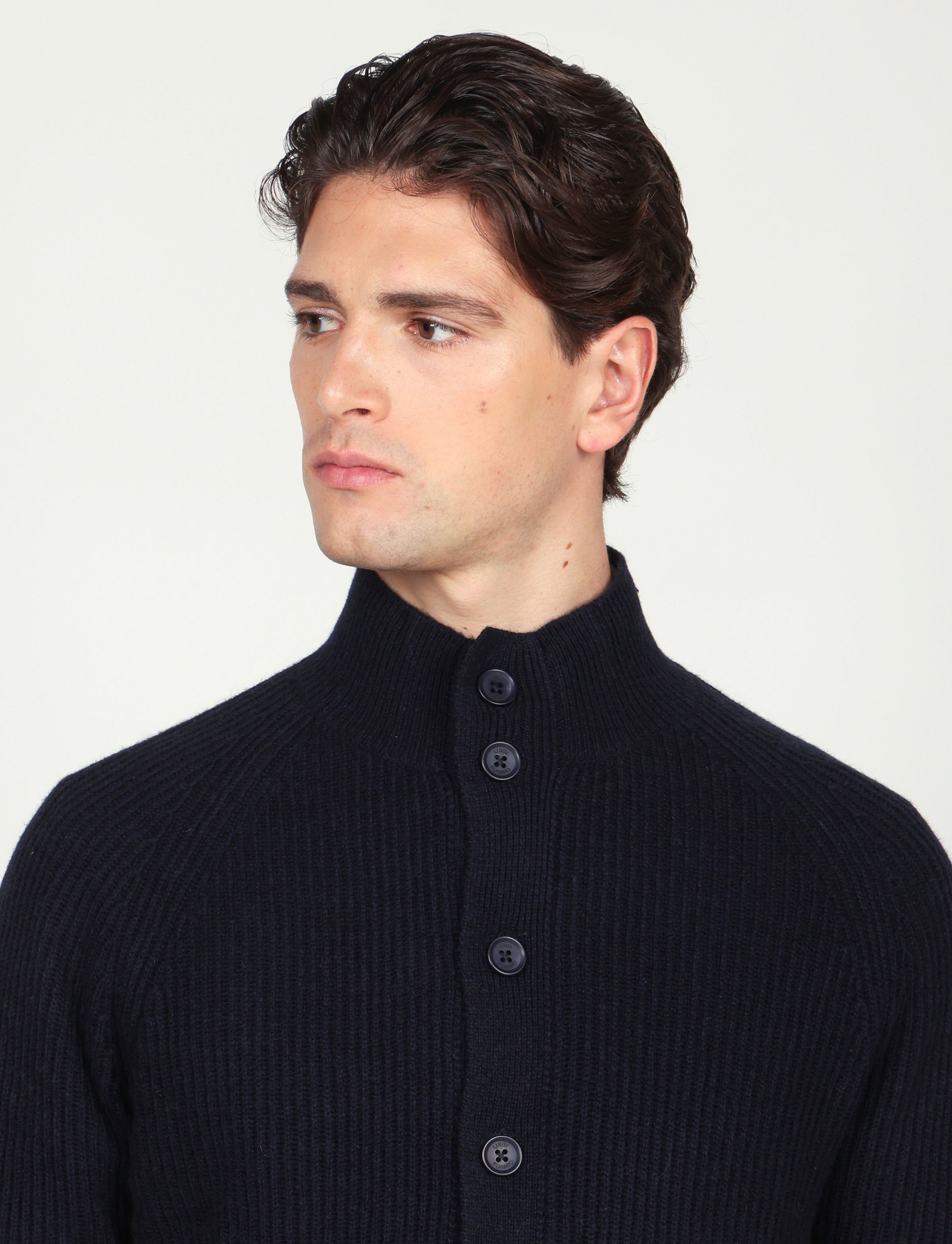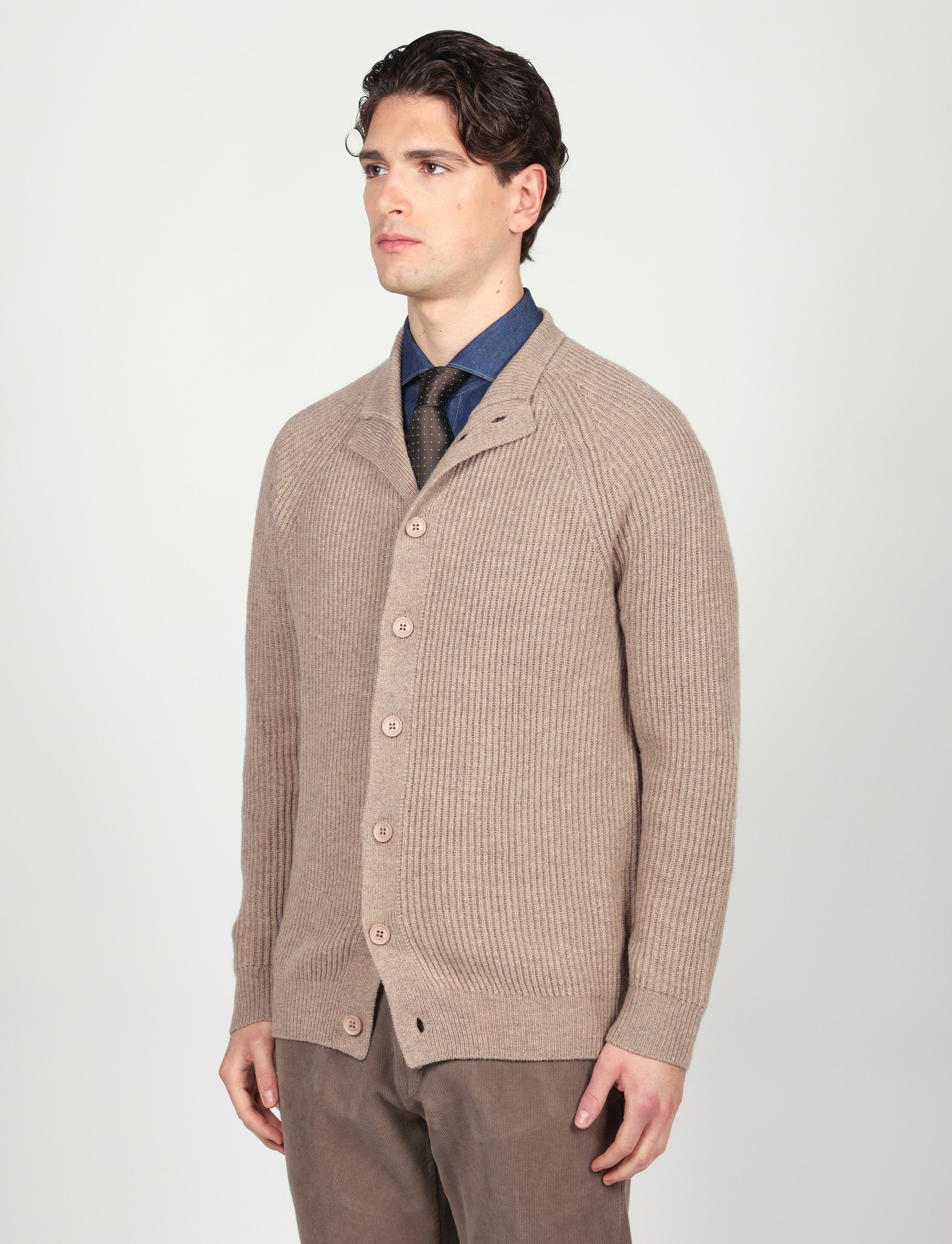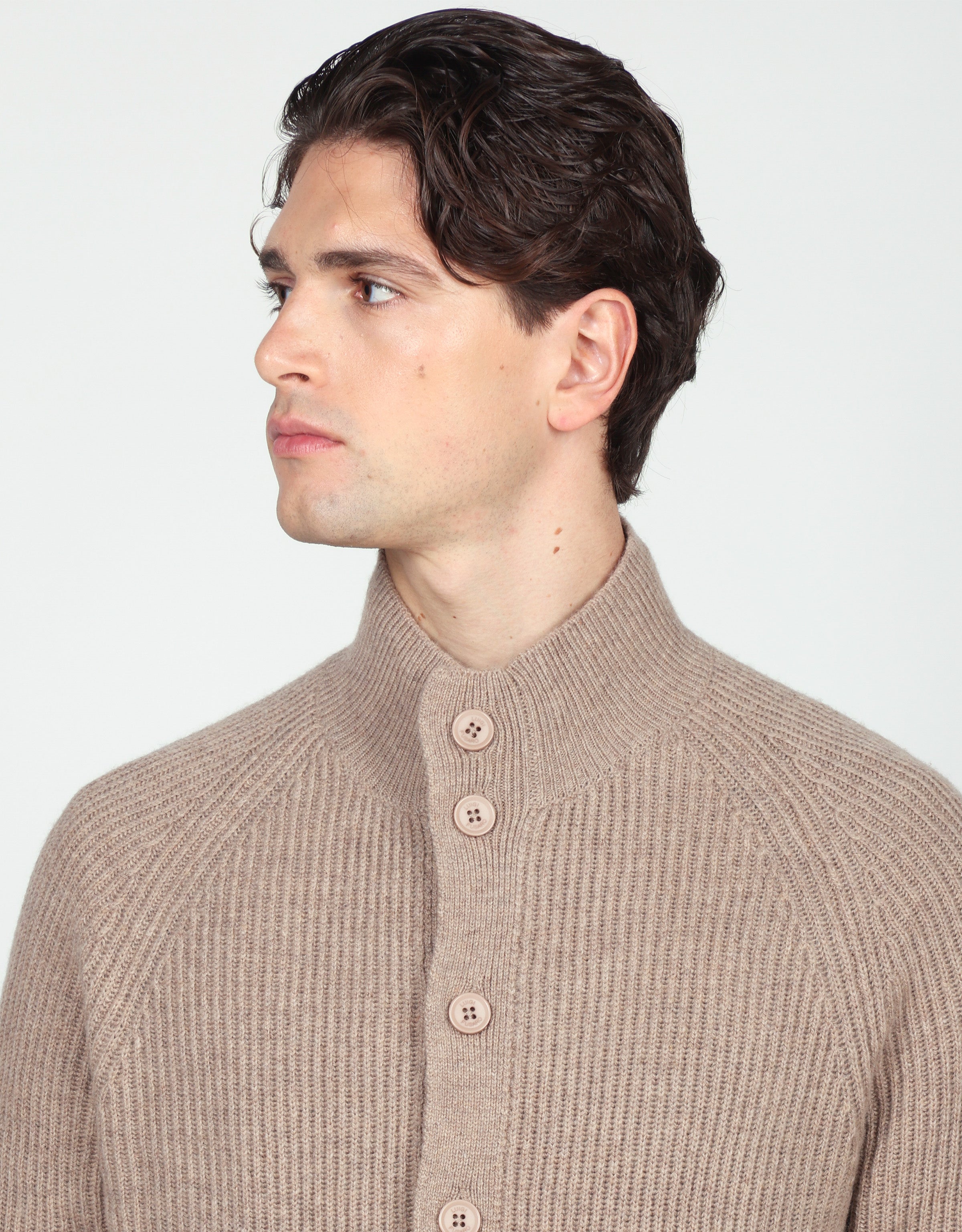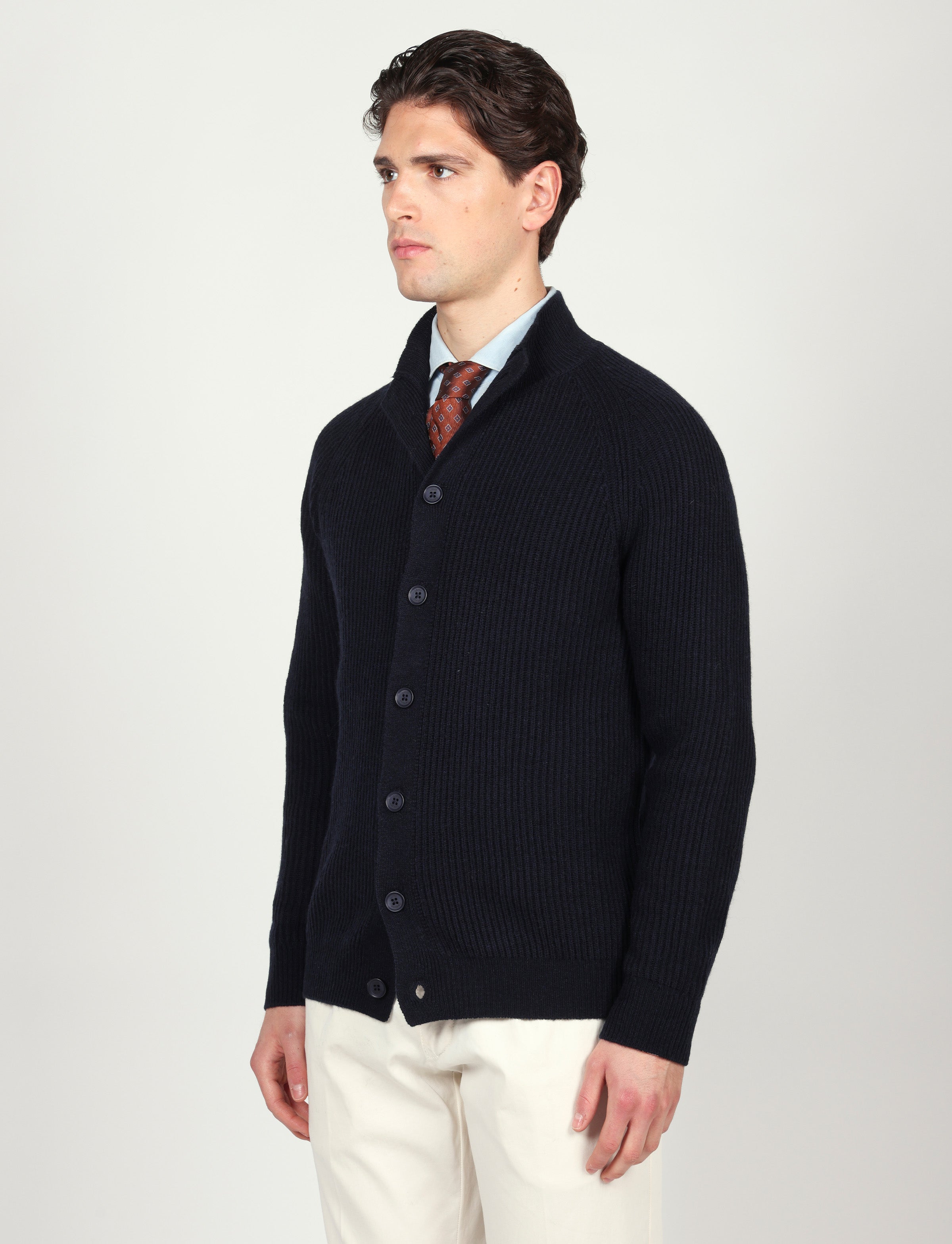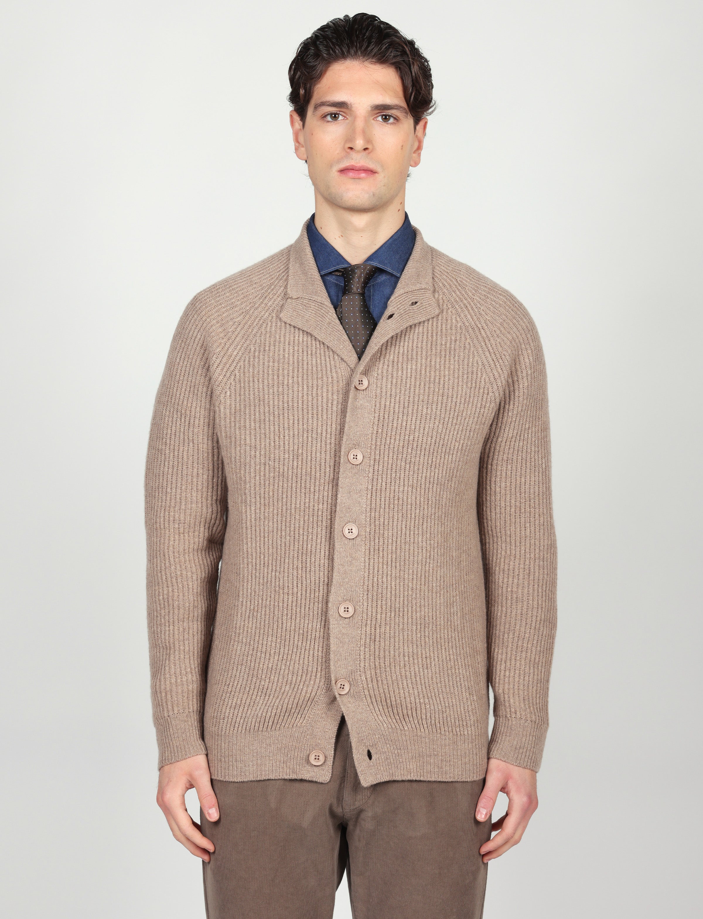 Cardigan in lana lambswool lavorato a coste inglesi: un capo essenziale dallo stile raffinato e contemporaneo. Morbido, caldo e versatile, è perfetto per affrontare la stagione fredda con eleganza naturale.
