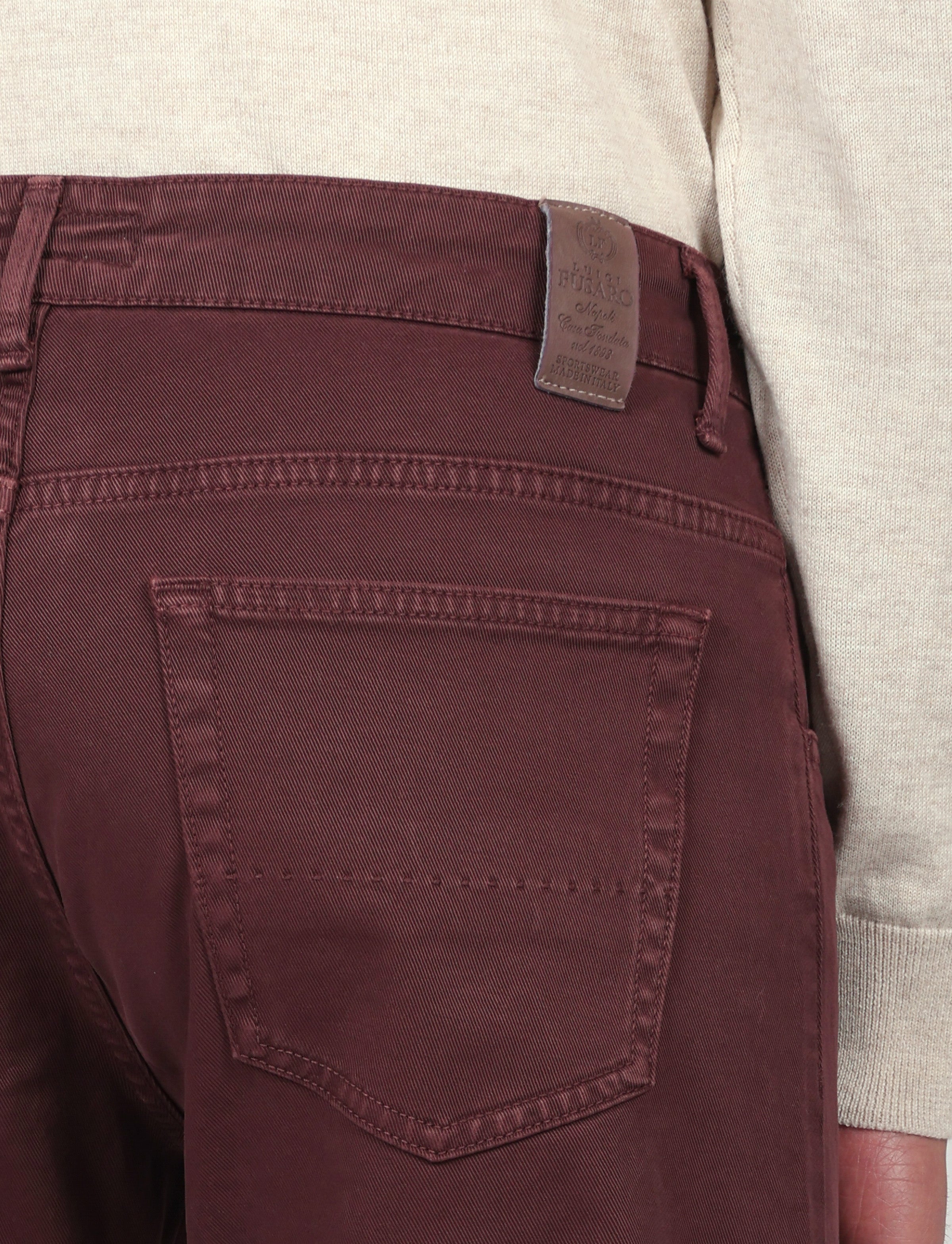 Pantaloni cinque tasche in twill di cotone stretch, dal design contemporaneo; un modello intramontabile e versatile, perfetto per outfit casual o raffinati, grazie alla texture diagonale del tessuto che aggiunge profondità e stile al look.