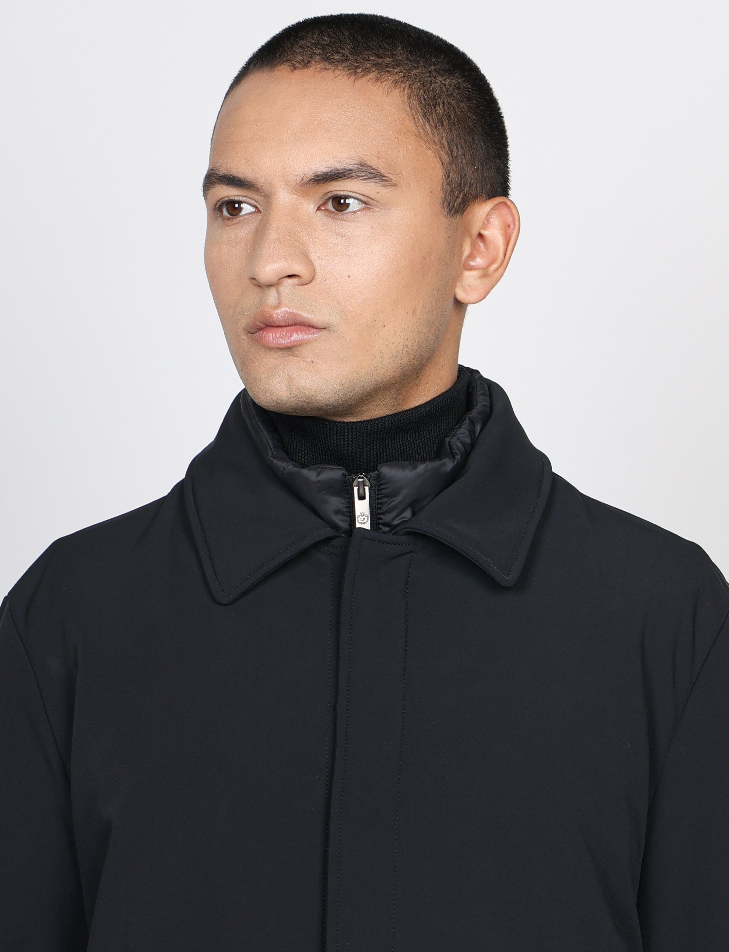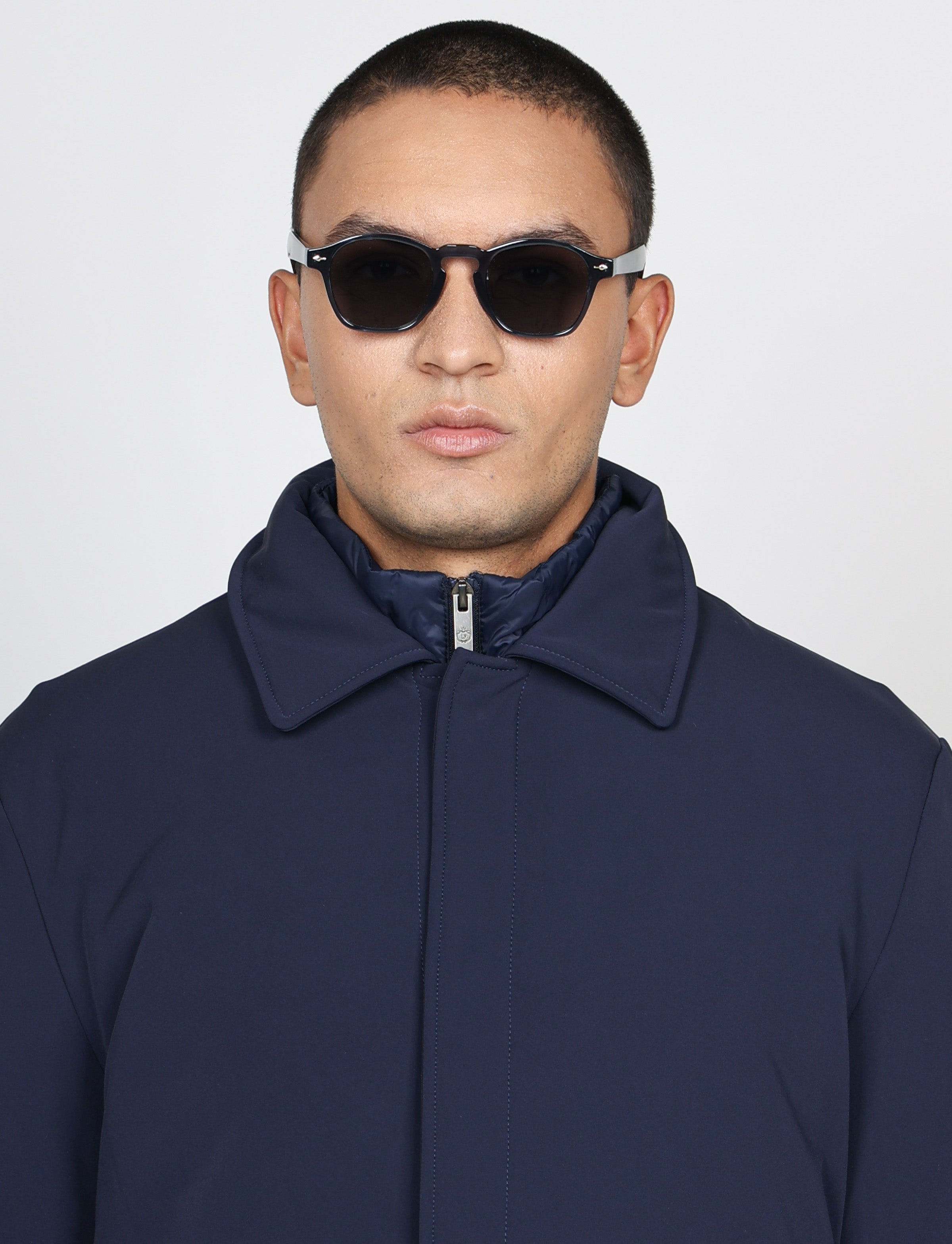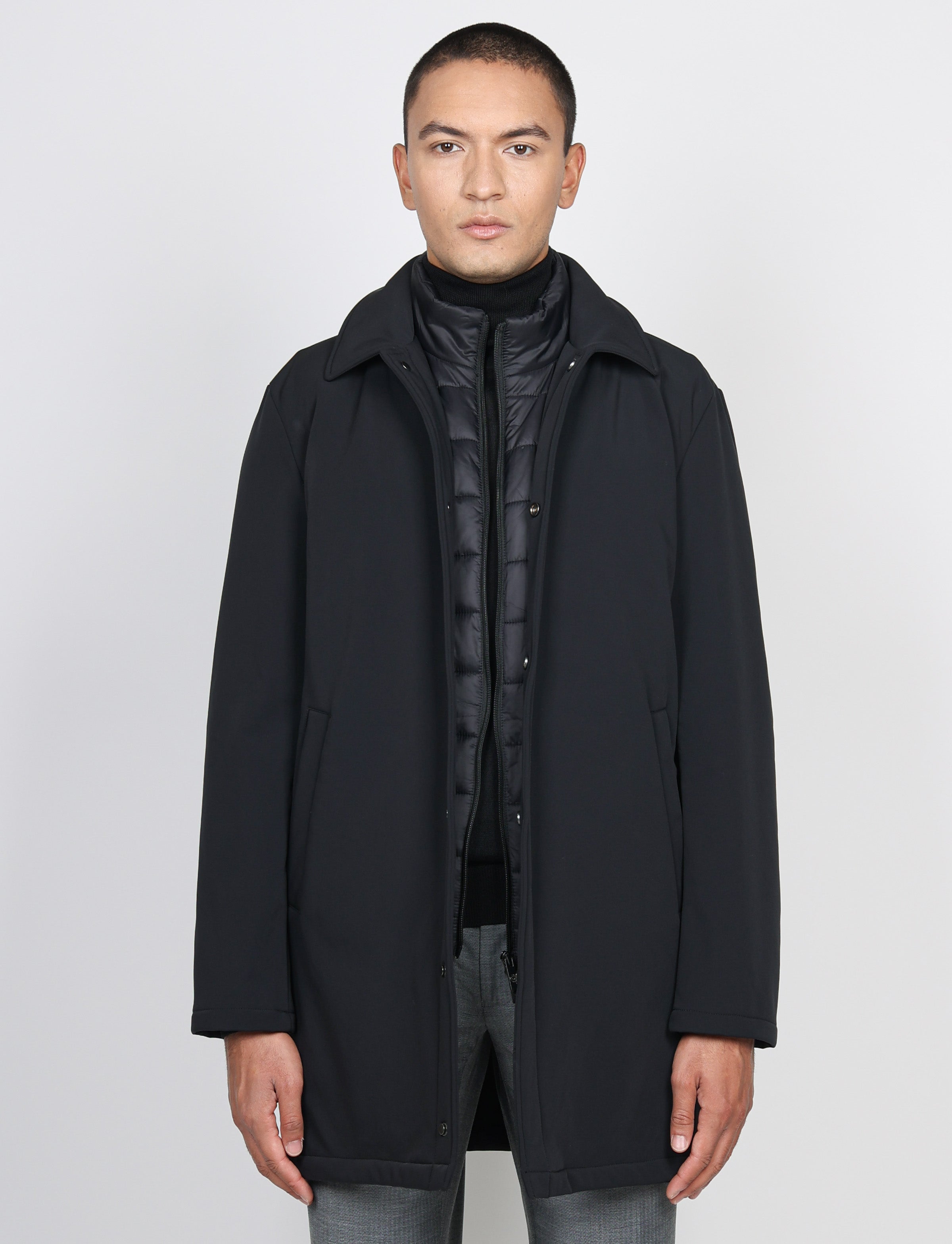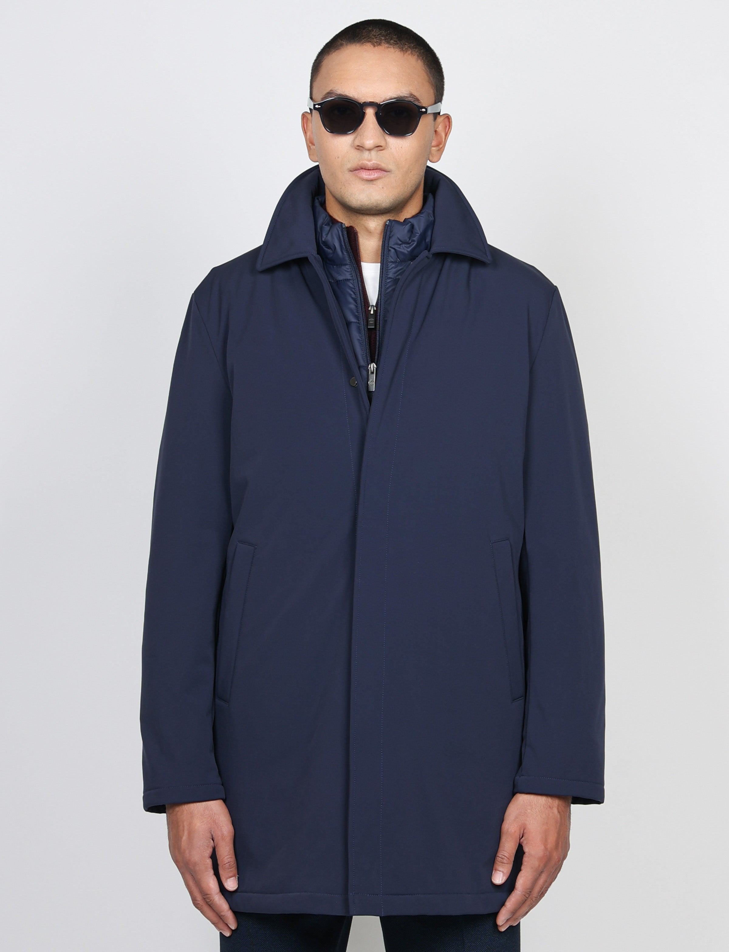 Trench tecnico dalle linee pulite, resistente a vento e pioggia leggera. Dotato di pettorina interna sfoderabile con bottoni, utilizzabile anche separatamente come gilet imbottito. Perfetto per pendolarismo, tempo libero e look urbani.