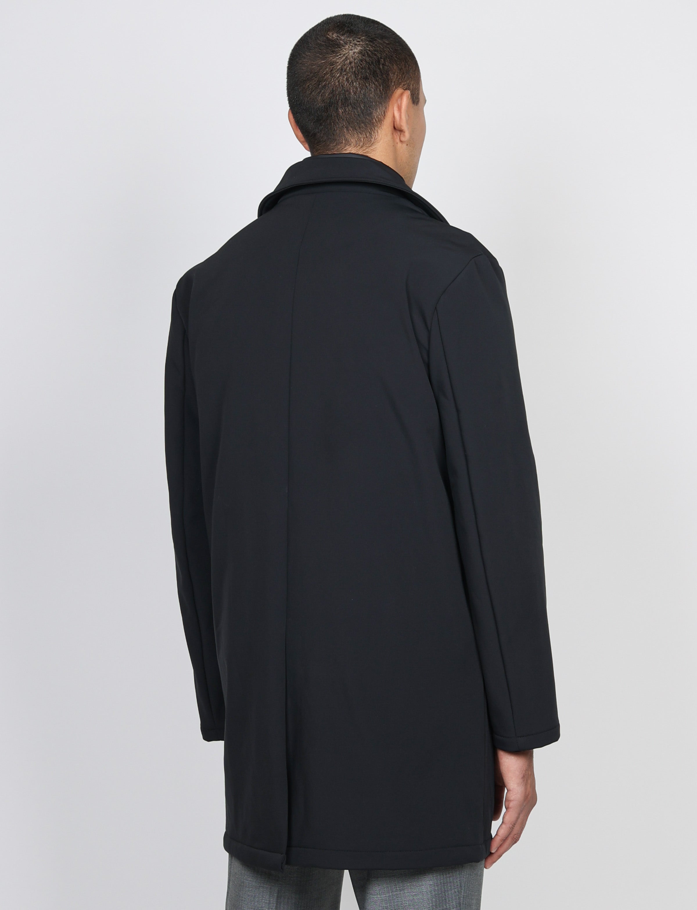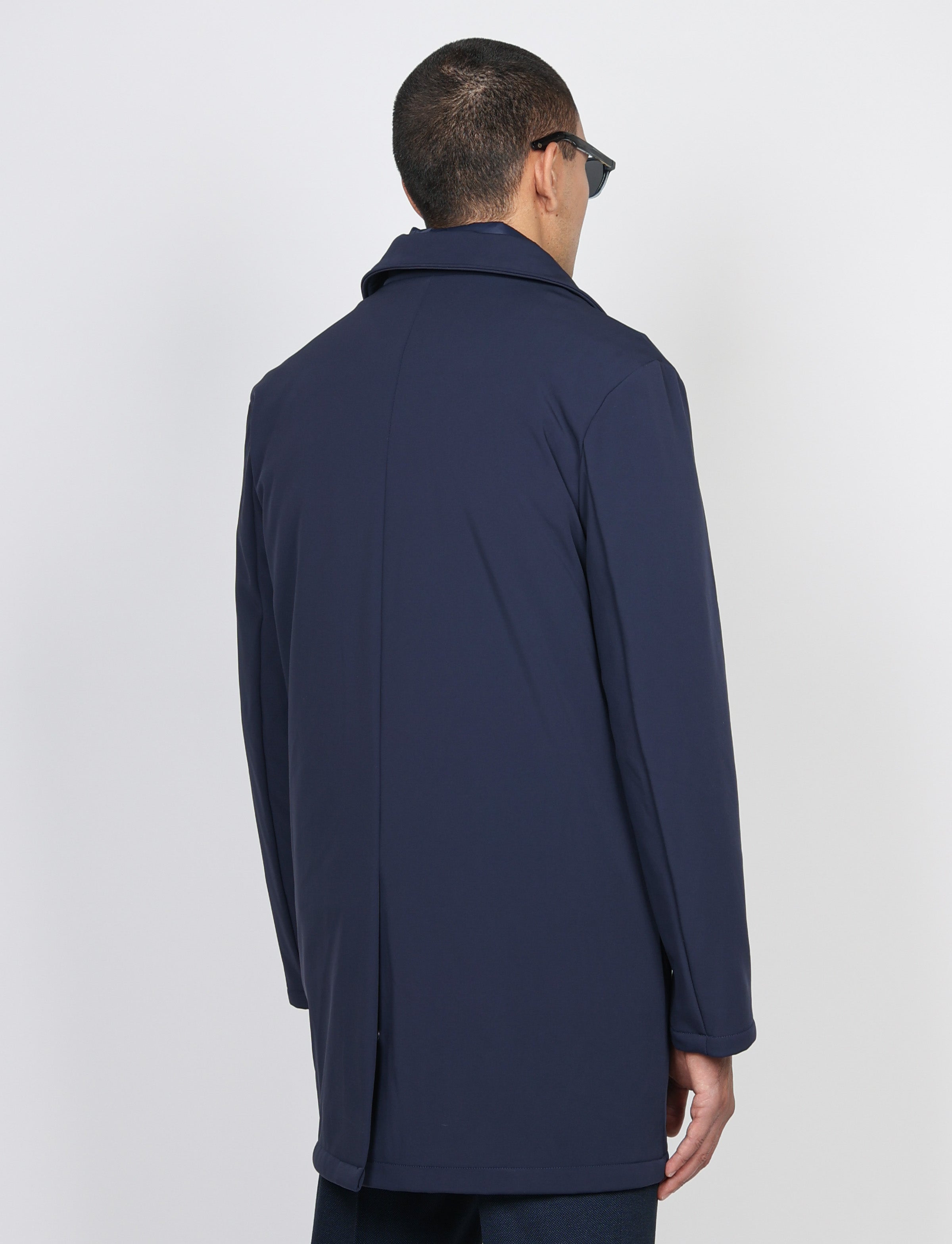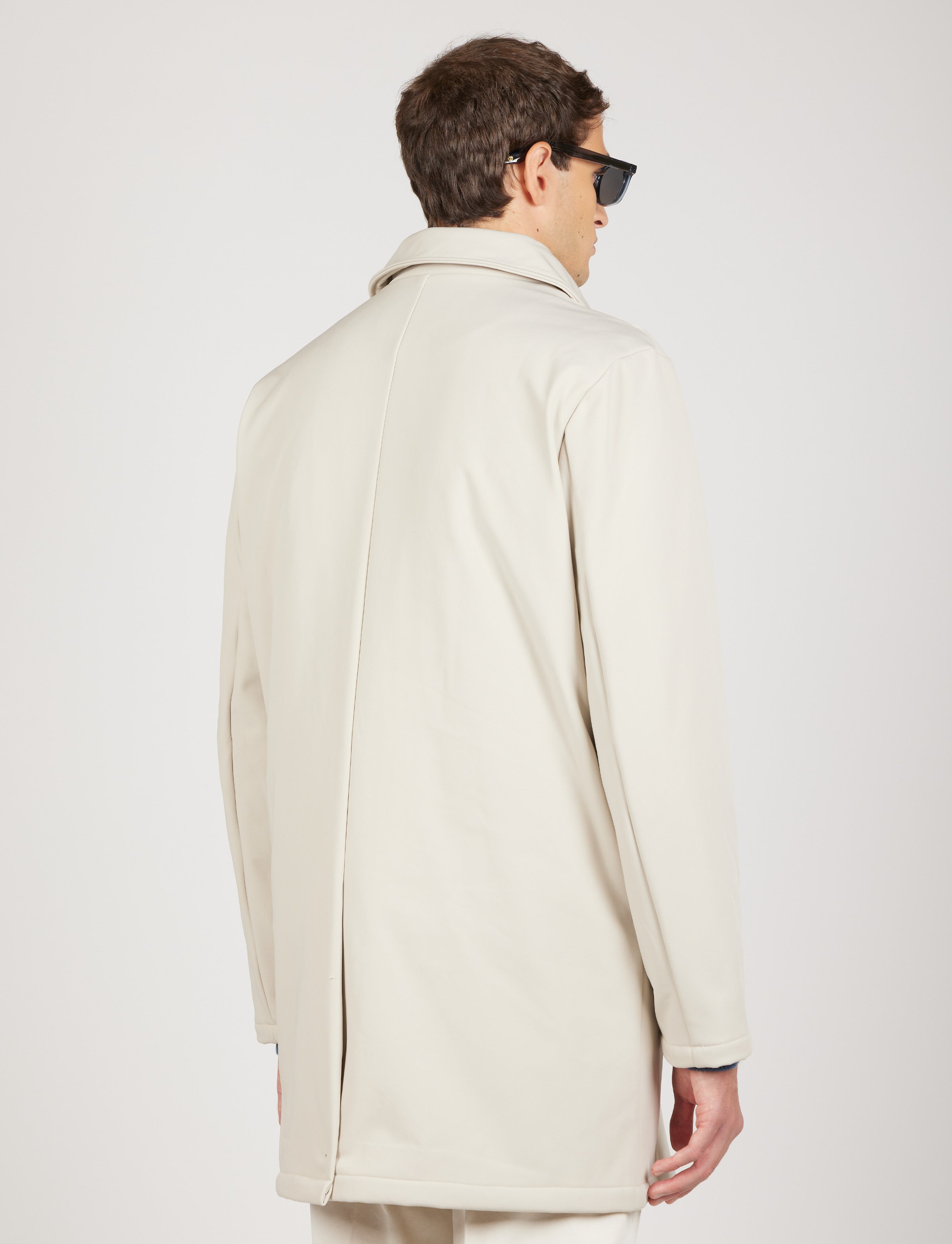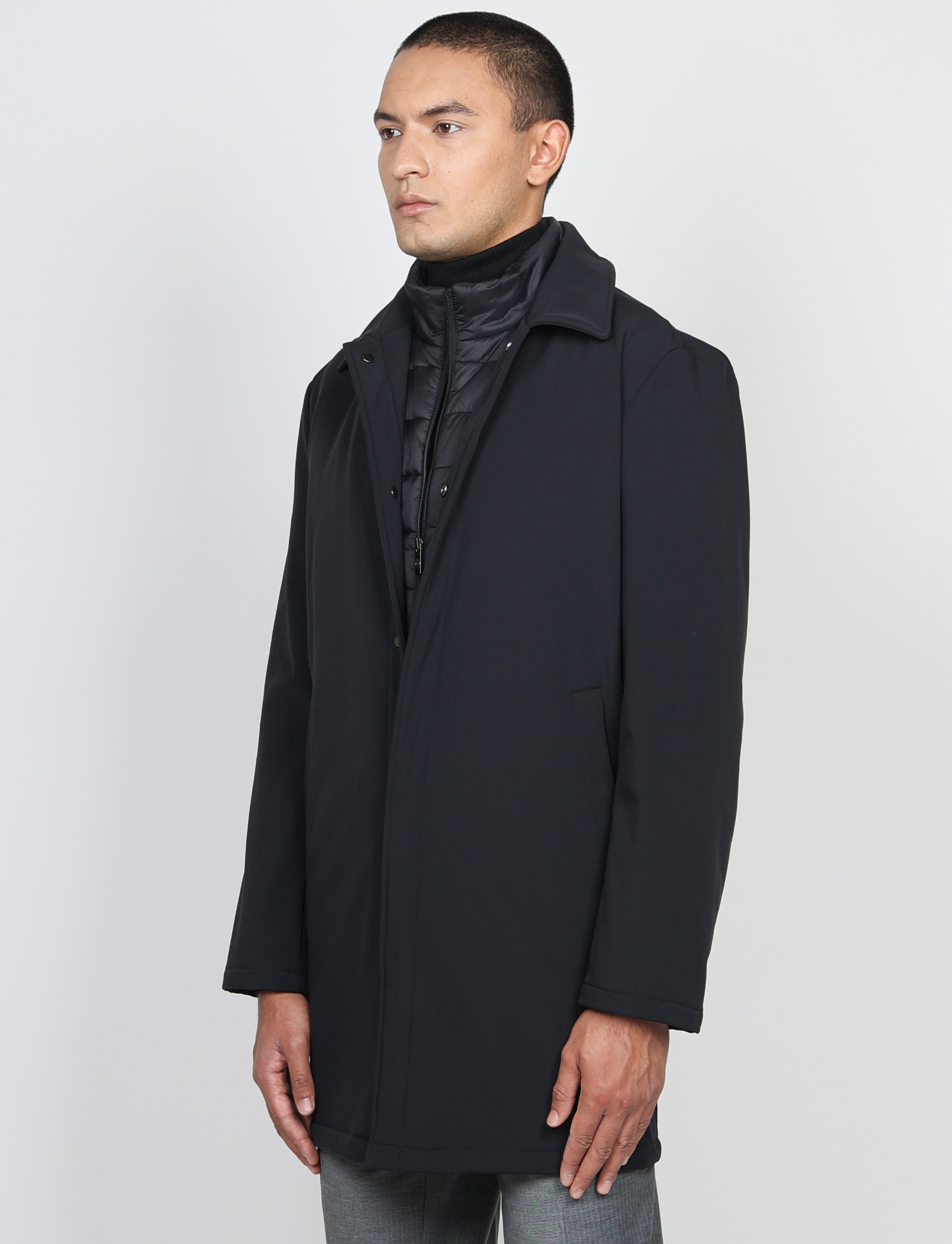 Trench tecnico dalle linee pulite, resistente a vento e pioggia leggera. Dotato di pettorina interna sfoderabile con bottoni, utilizzabile anche separatamente come gilet imbottito. Perfetto per pendolarismo, tempo libero e look urbani.