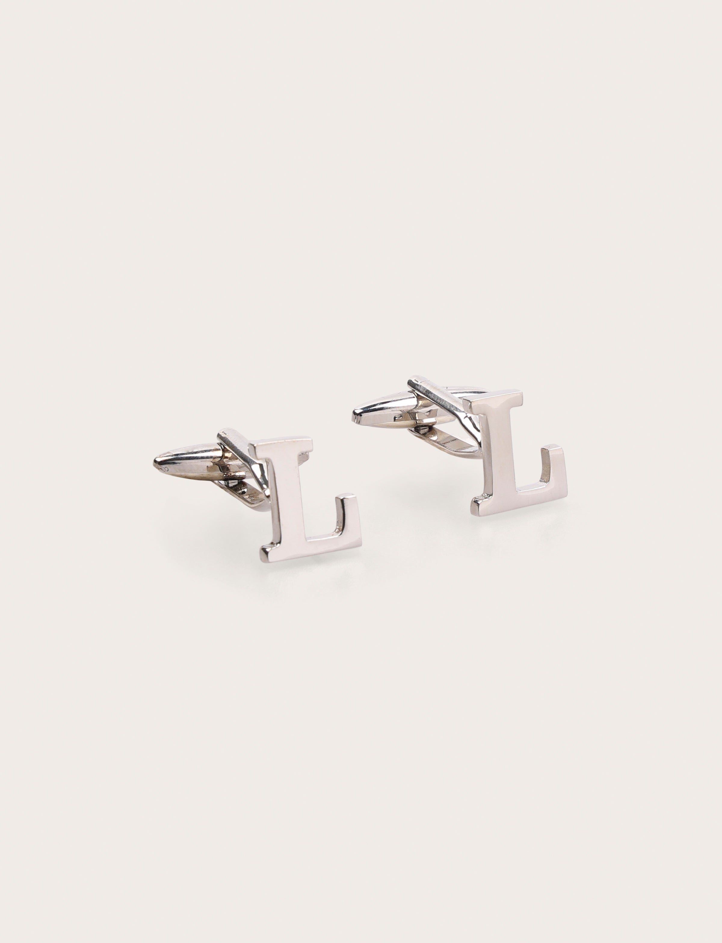 Gemelli da camicia con iniziale L in metallo lucido, eleganti e personalizzabili. Un accessorio raffinato perfetto per cerimonie, eventi formali o come idea regalo distintiva.