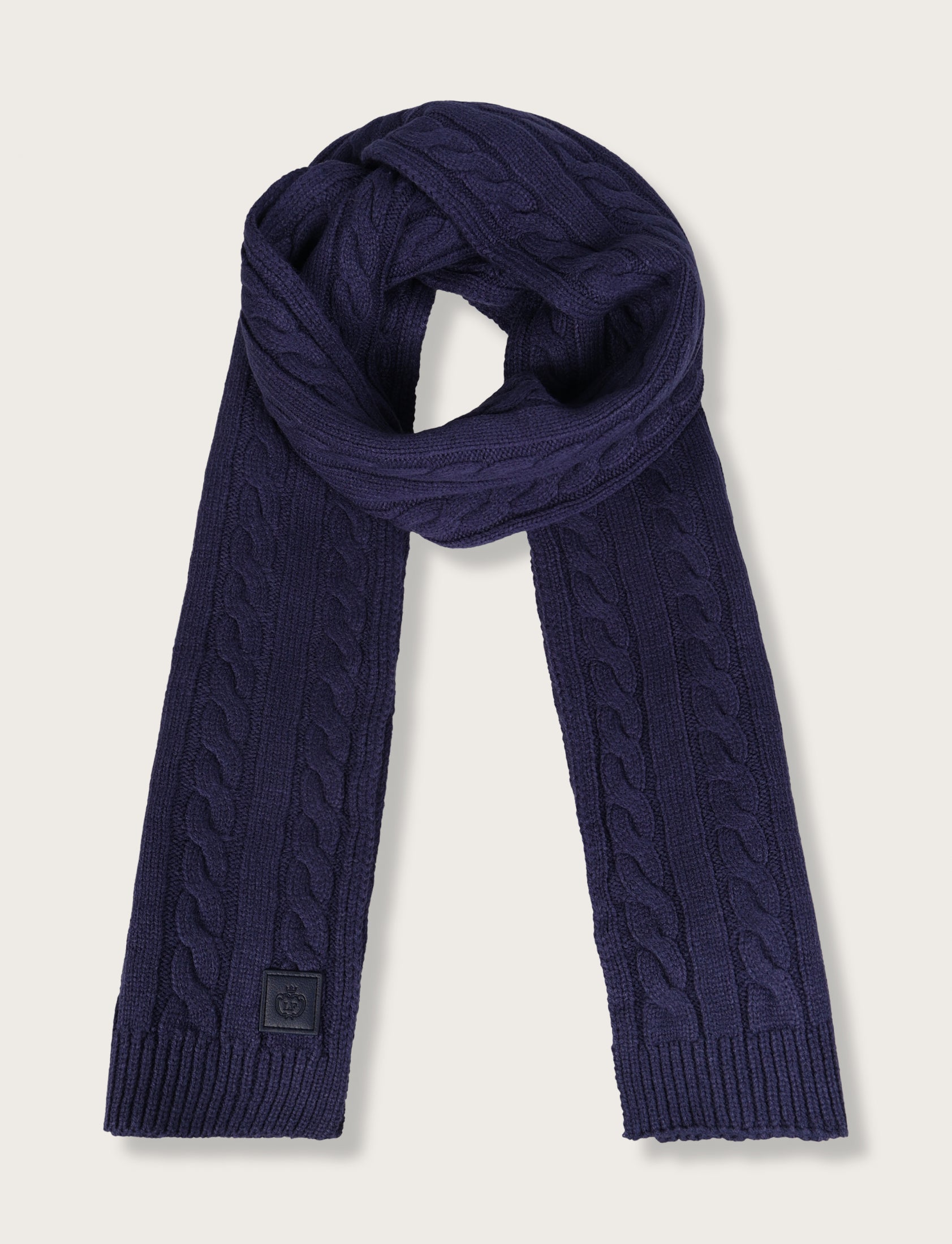 Sciarpa in maglia con raffinata lavorazione a coste inglesi, morbida e avvolgente. Un accessorio essenziale per completare con eleganza e comfort ogni look invernale.