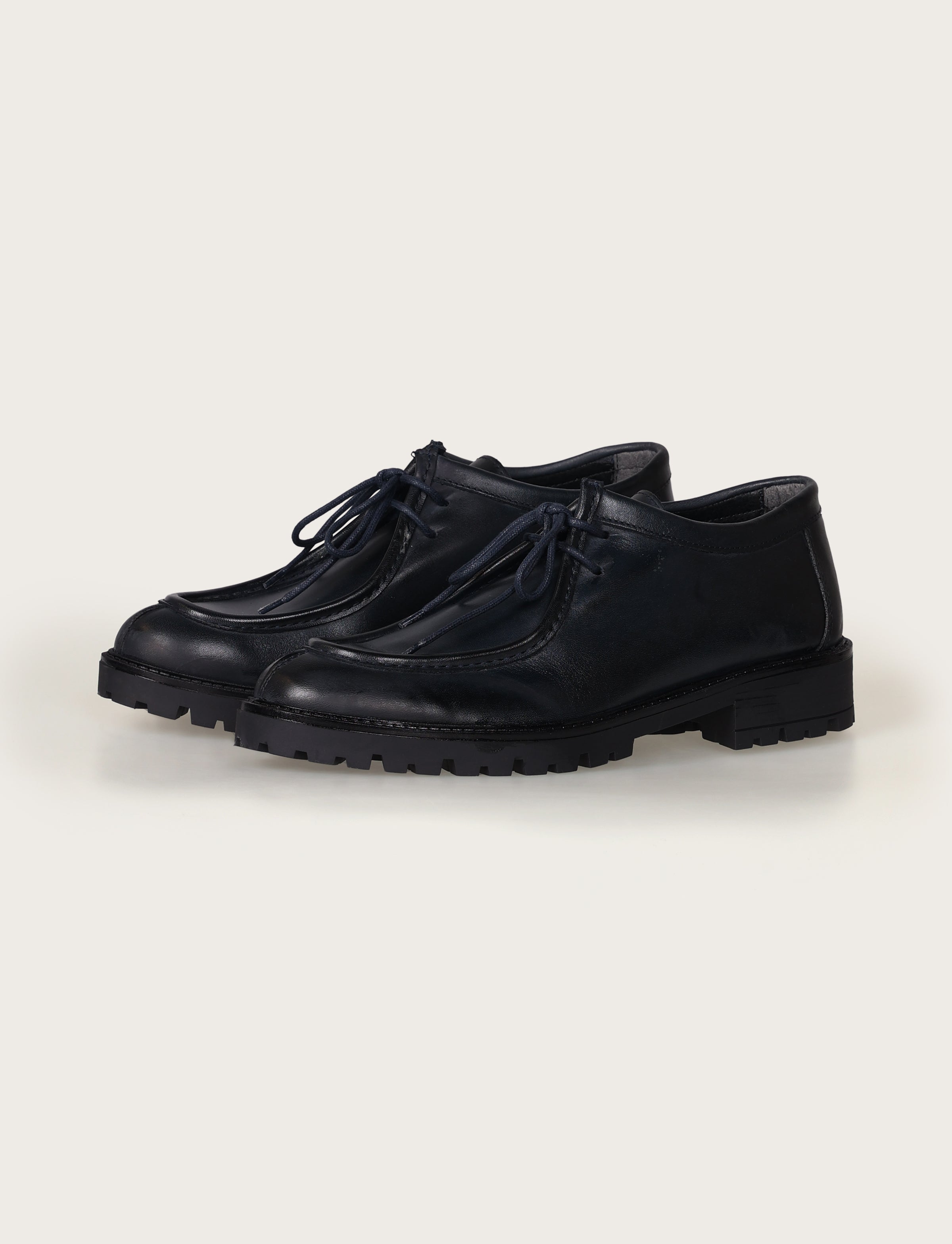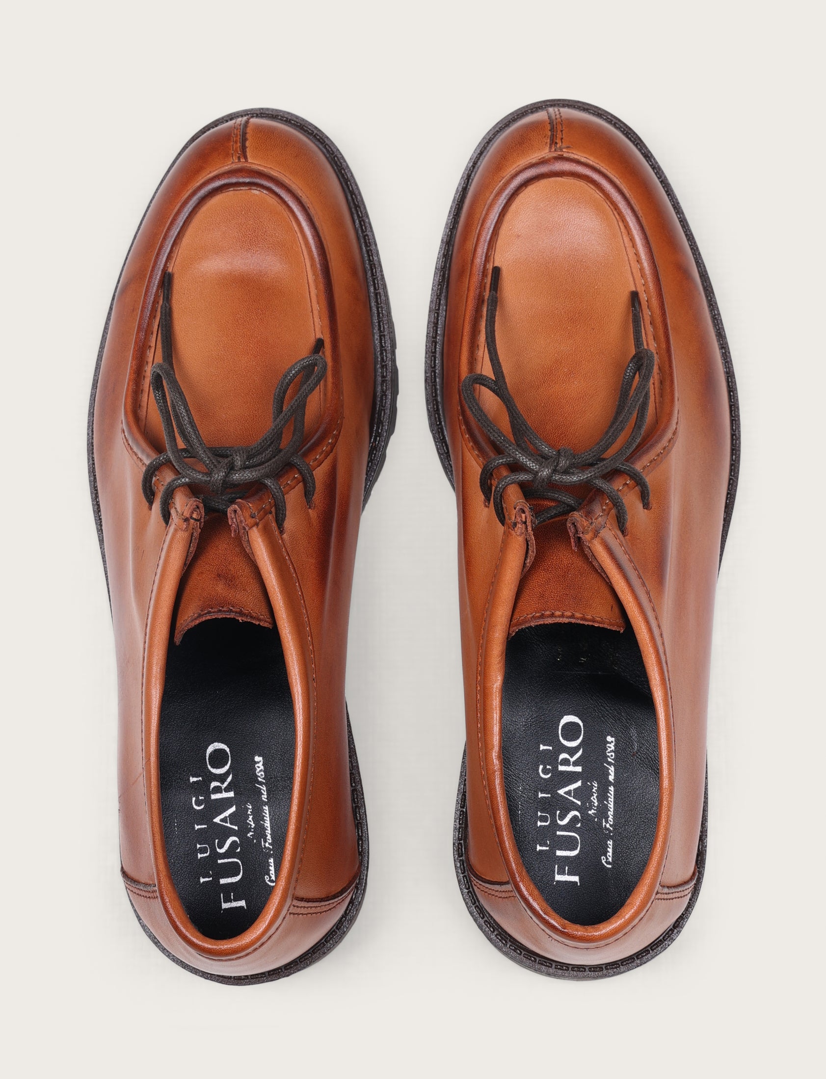 Scarpe in vera pelle con cuciture a vista e chiusura con lacci, ispirate al classico modello Wallabee.