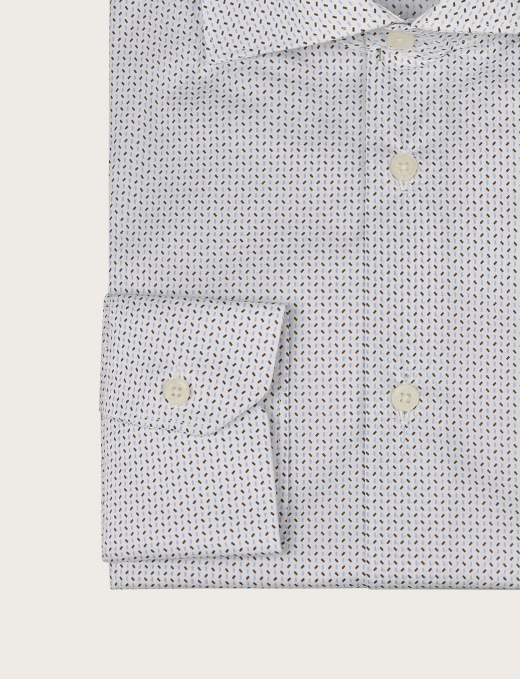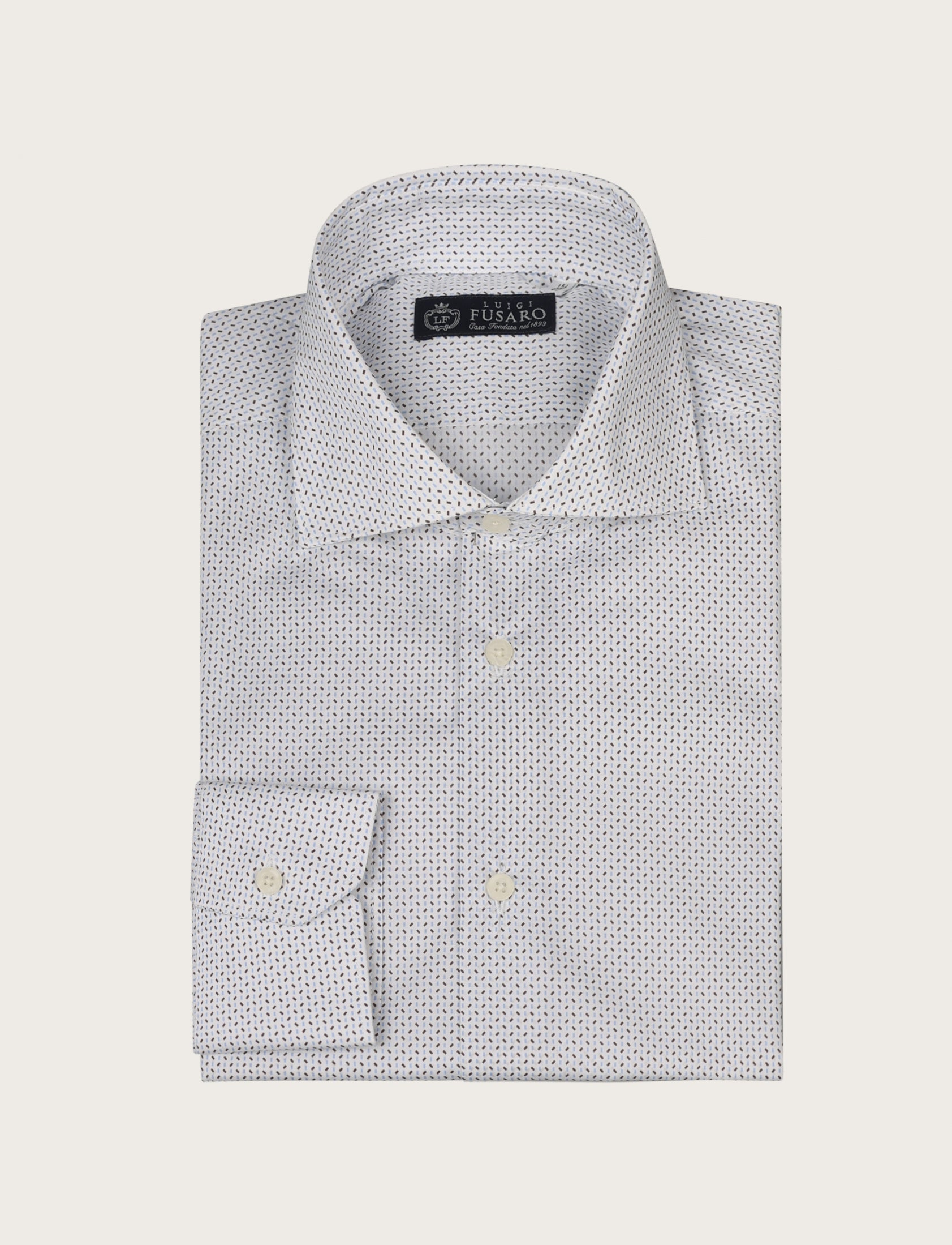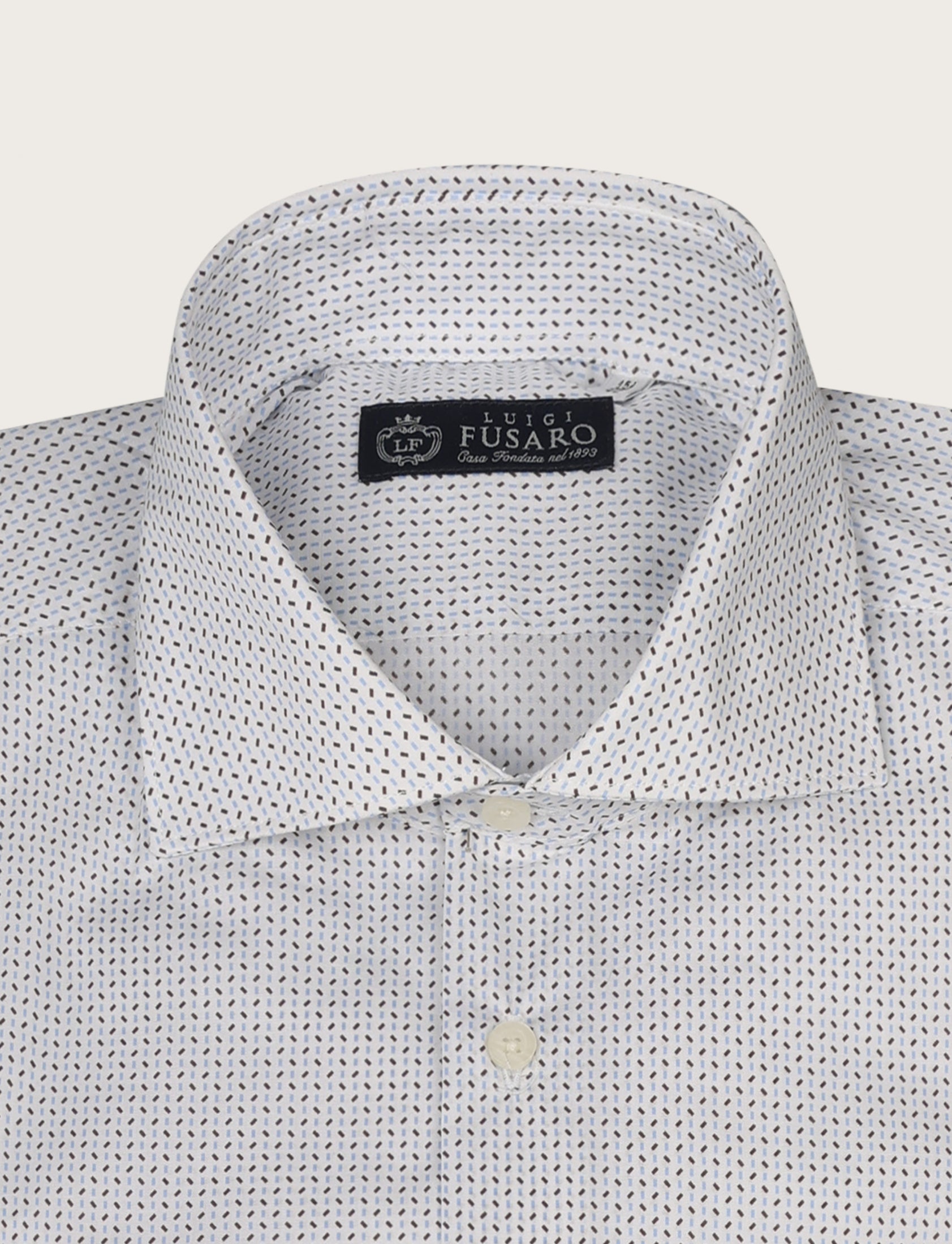 Aggiungi al tuo guardaroba la camicia in cotone stretch a micro fantasia puntinata: un capo elegante, versatile e confortevole.