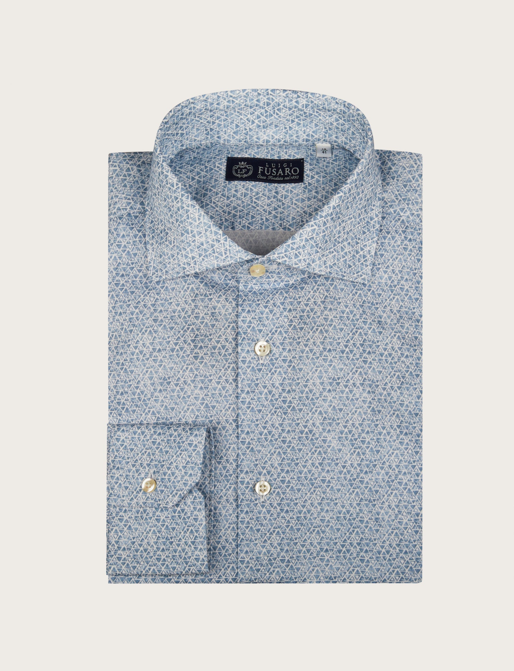 Scegli la camicia a micro fantasia geometrica in cotone stretch: un capo versatile che unisce eleganza e comfort quotidiano.