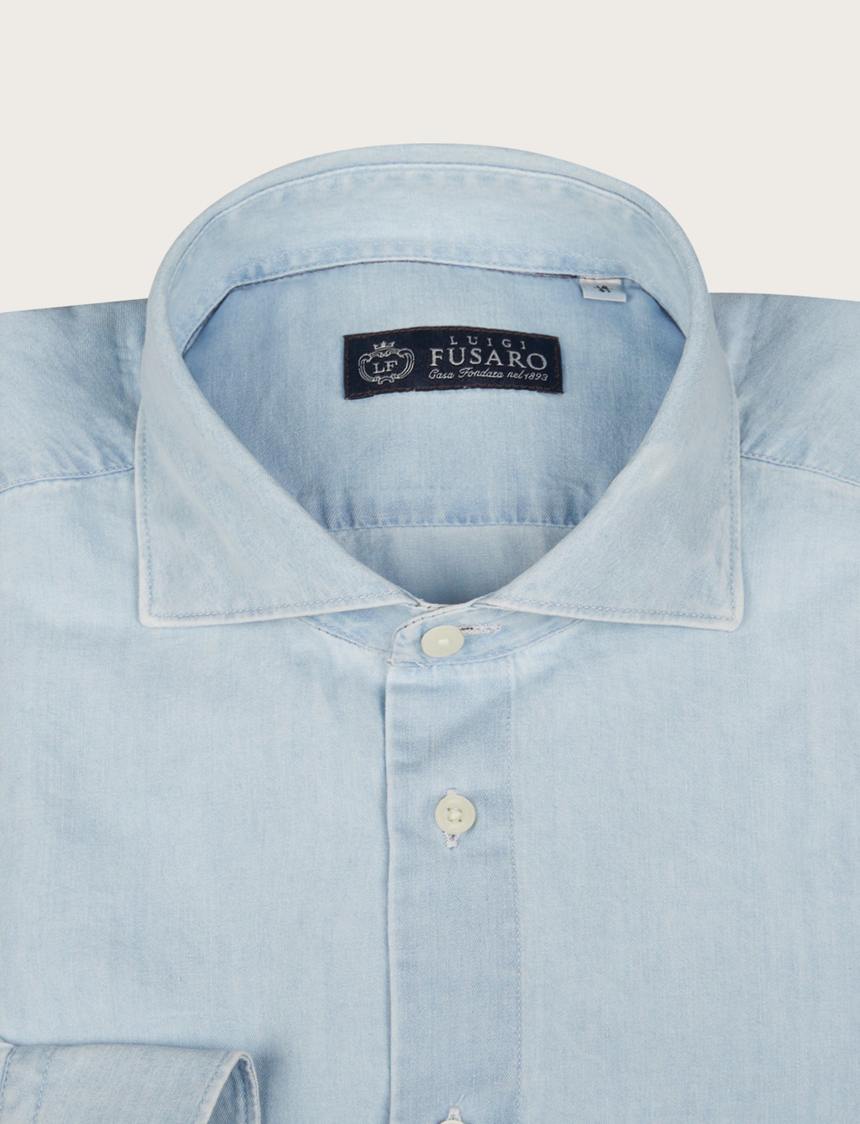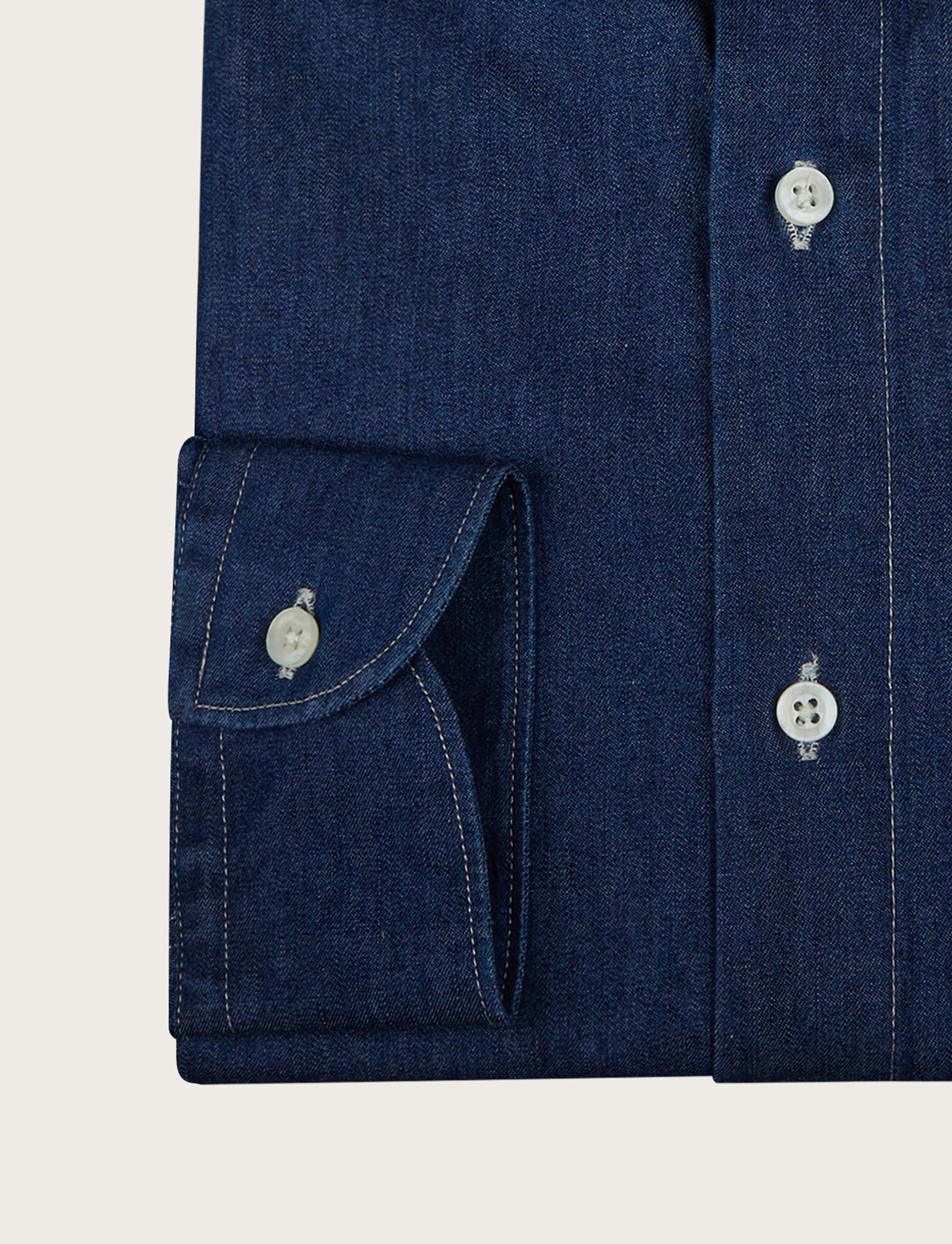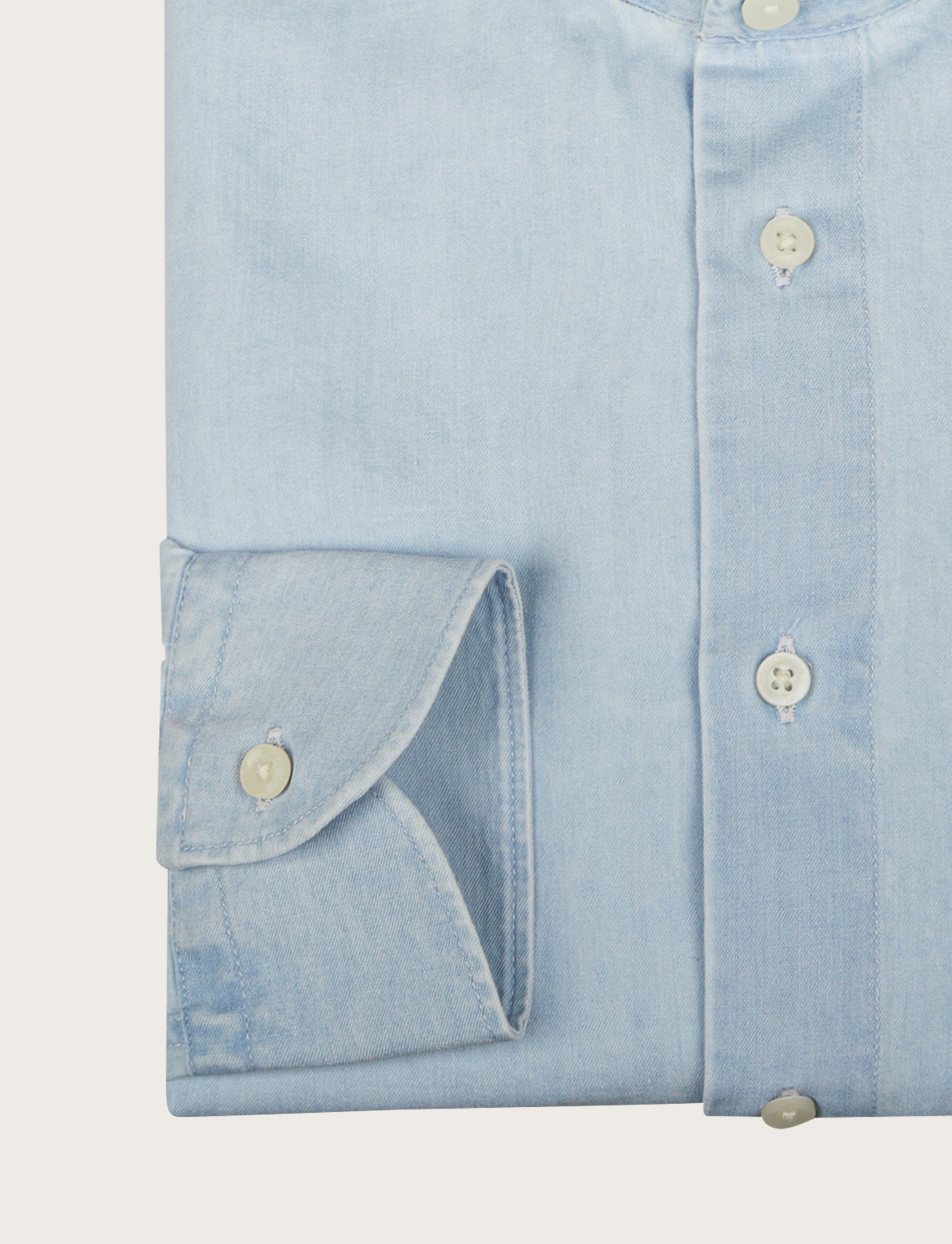 Camicia in denim 100% cotone, senza tasche e dal design essenziale. Un capo minimal e versatile, ideale per un look casual ricercato o come alternativa alla camicia classica in contesti informali. Perfetta da sola o abbinata a blazer e chino.