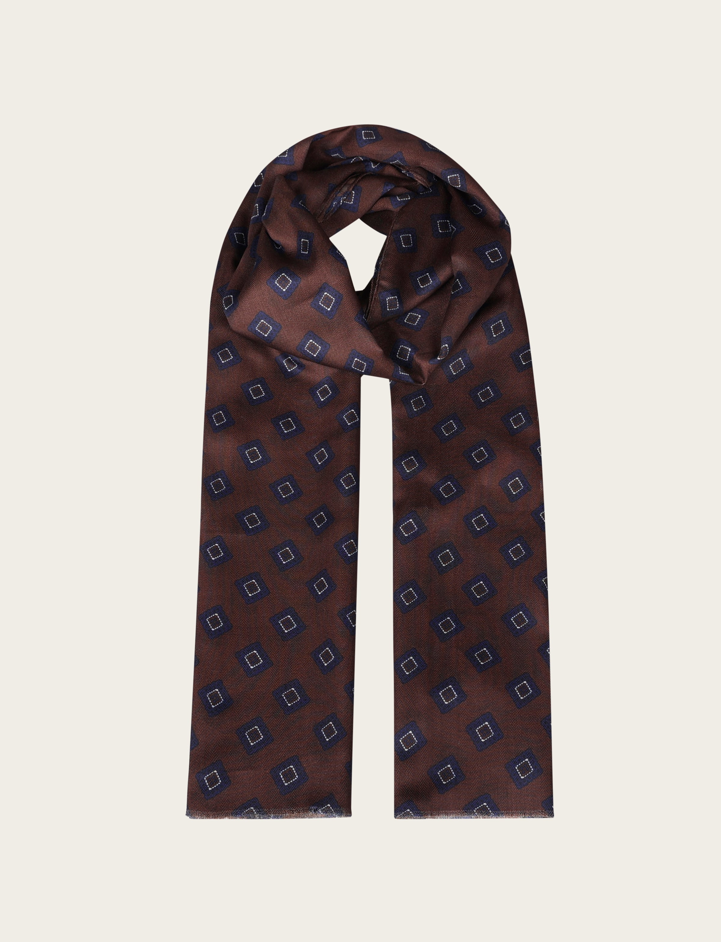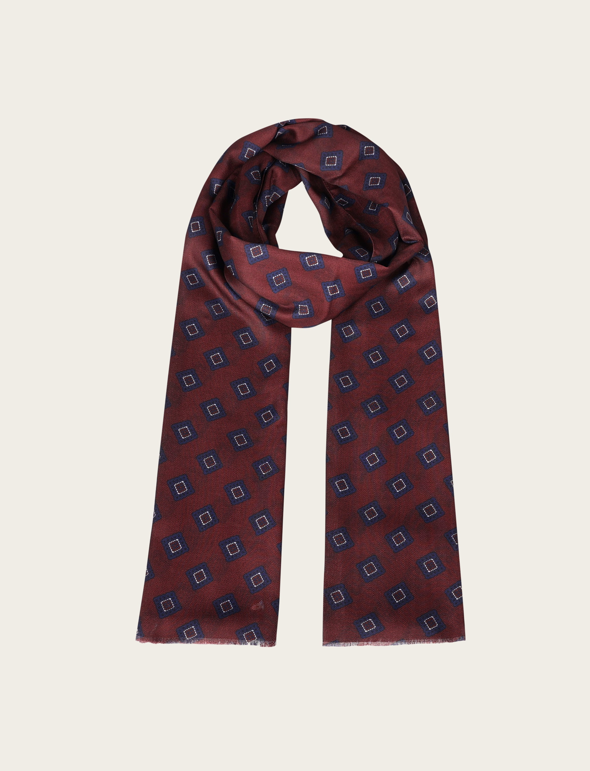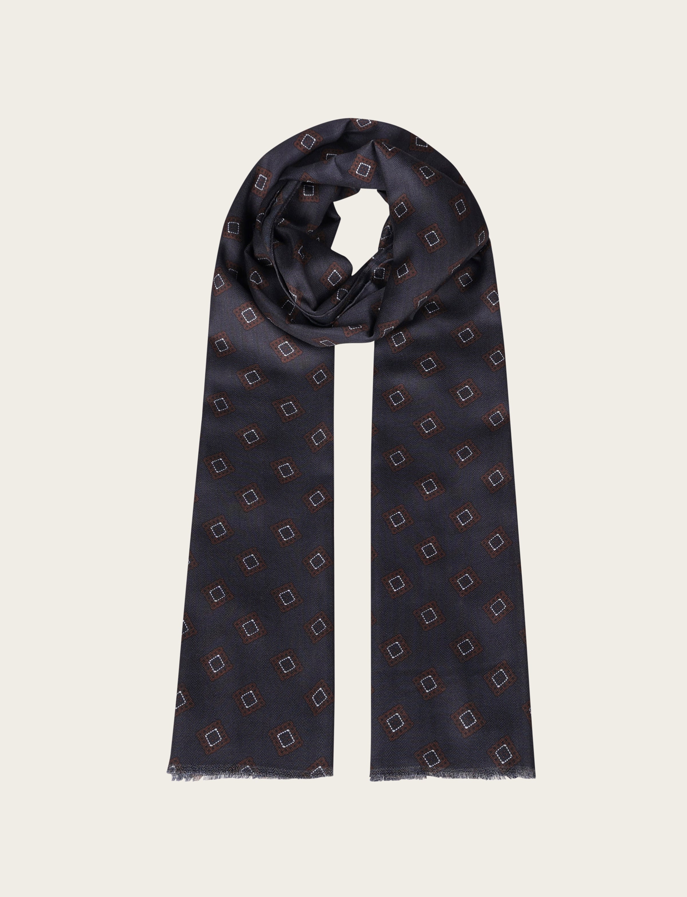 Sciarpa a fantasia geometrica a rombi stilizzati, caratterizzata da un design elegante e senza tempo. Realizzata in tessuto leggero e morbido, è ideale per l’uso quotidiano e per completare look business o casual chic. I bordi rifiniti garantiscono una maggiore durata nel tempo.