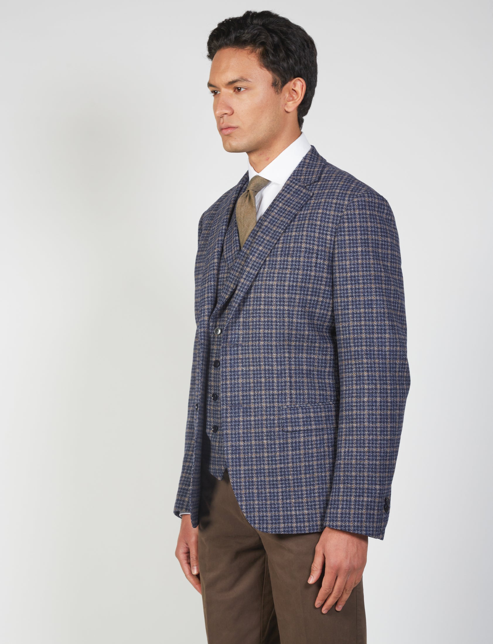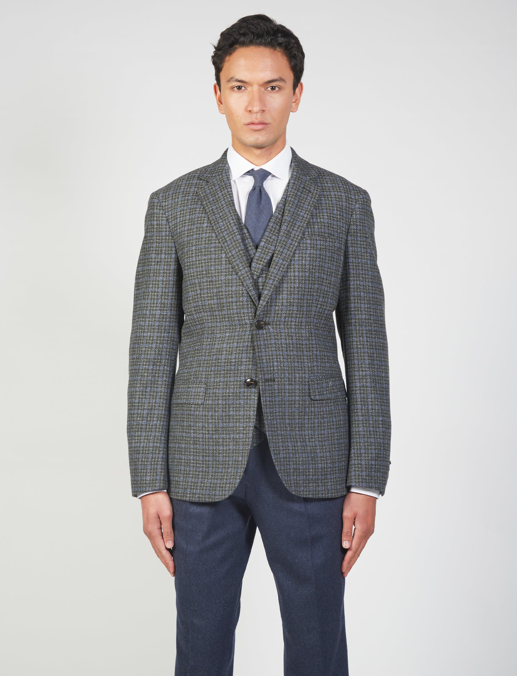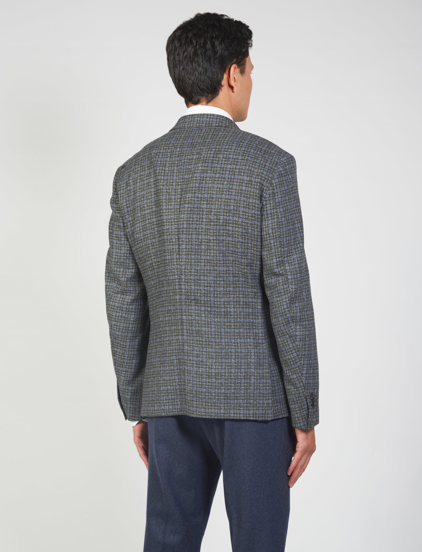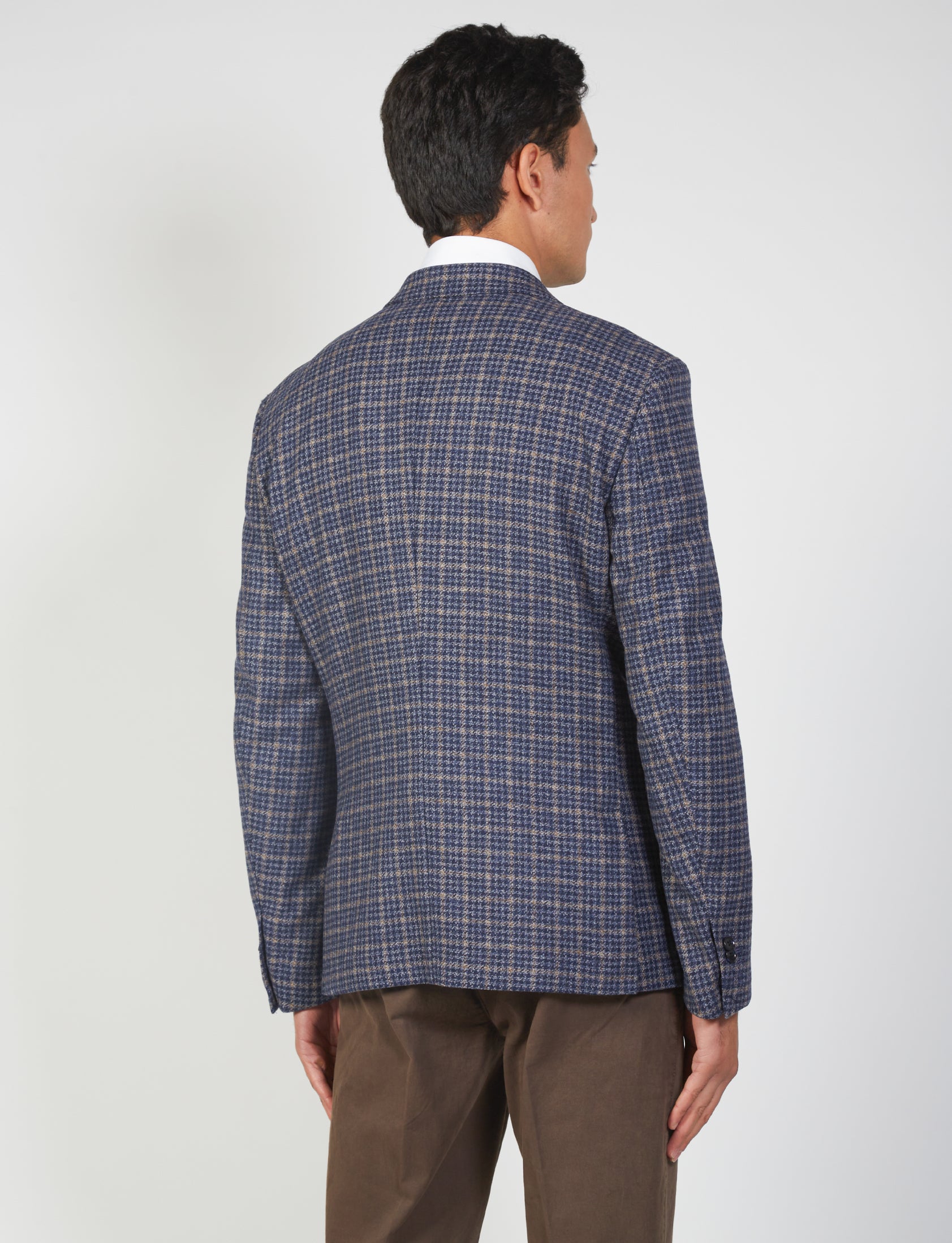 Scopri la giacca in lana pied de poule per uomo, perfetta per ogni occasione formale e casual. Con un design elegante, questo capo è caratterizzato dal classico rever, due tasche frontali a pattina, e un taschino sul petto. La chiusura a due bottoni e gli spacchi laterali garantiscono comfort e stile.