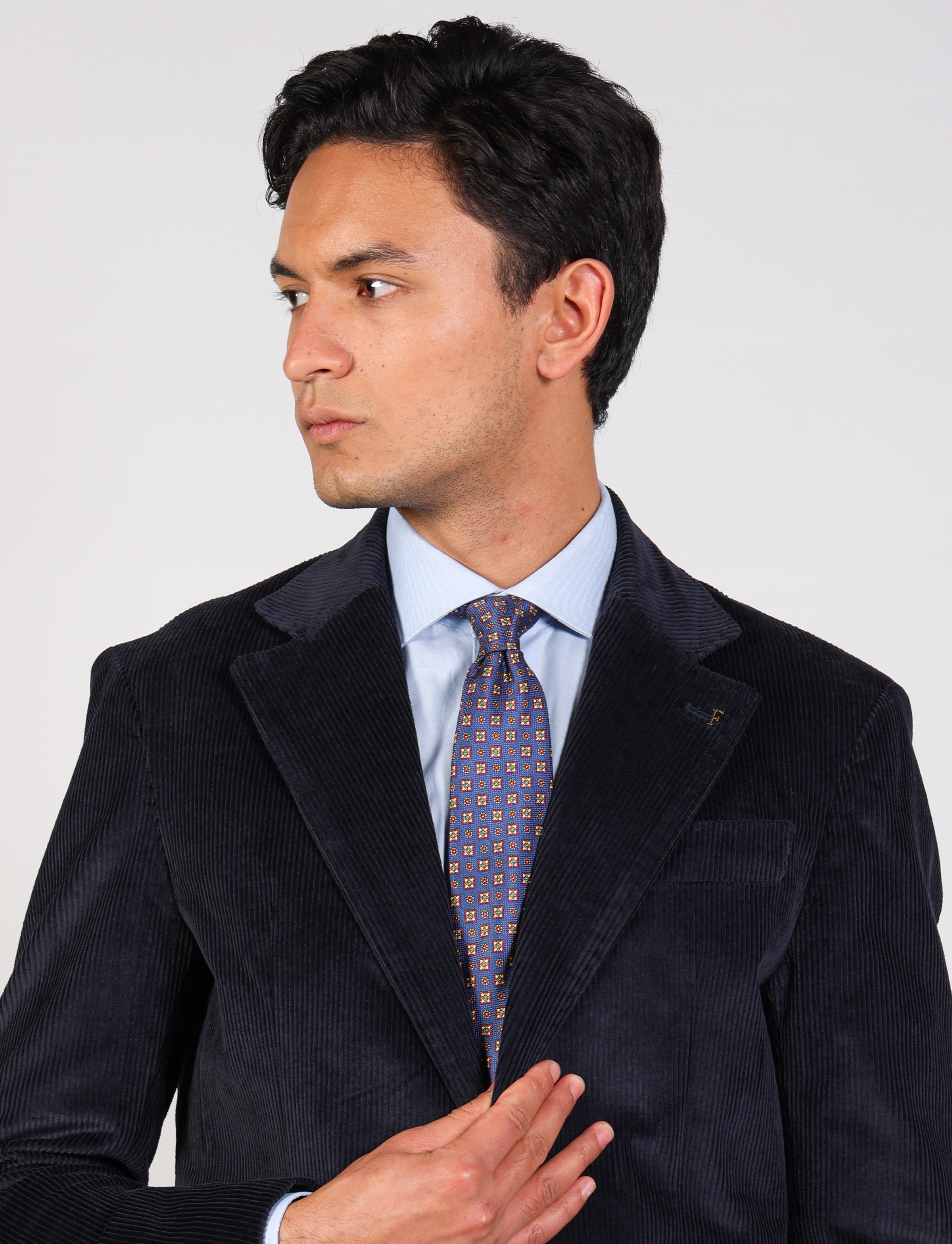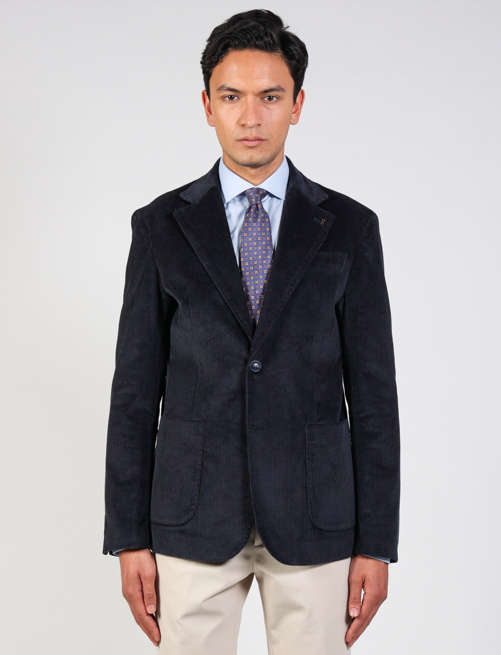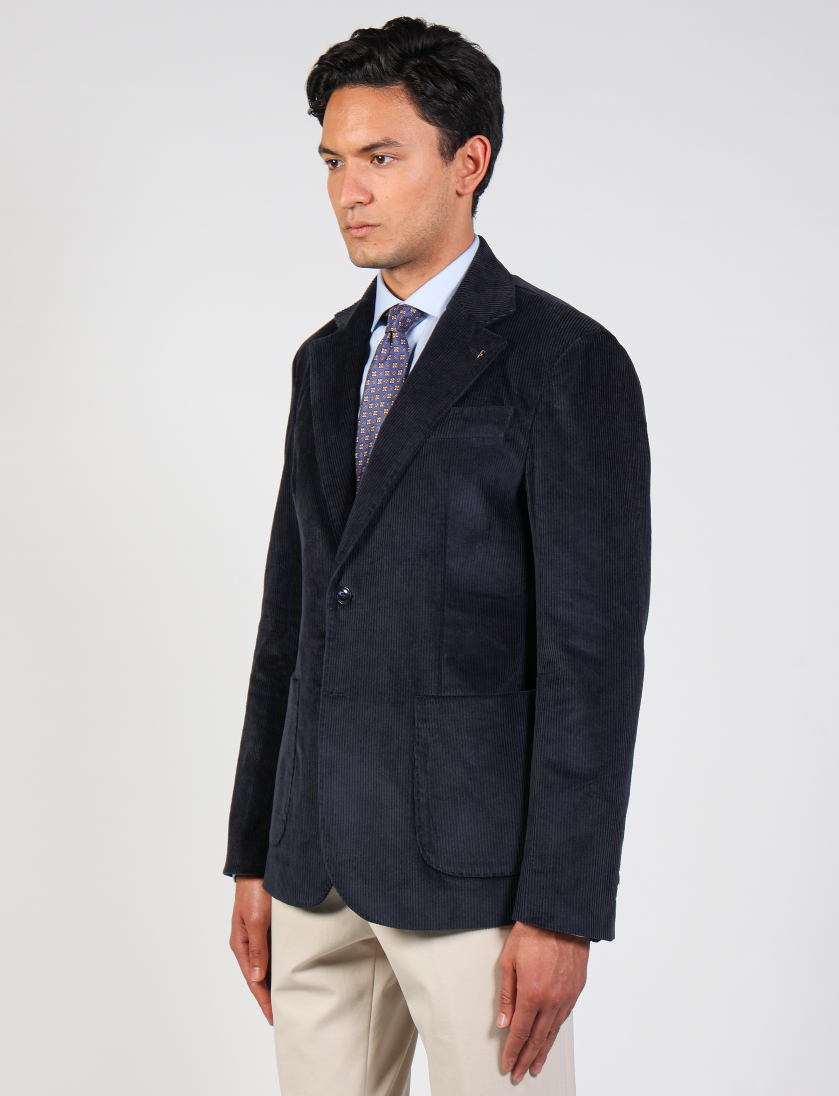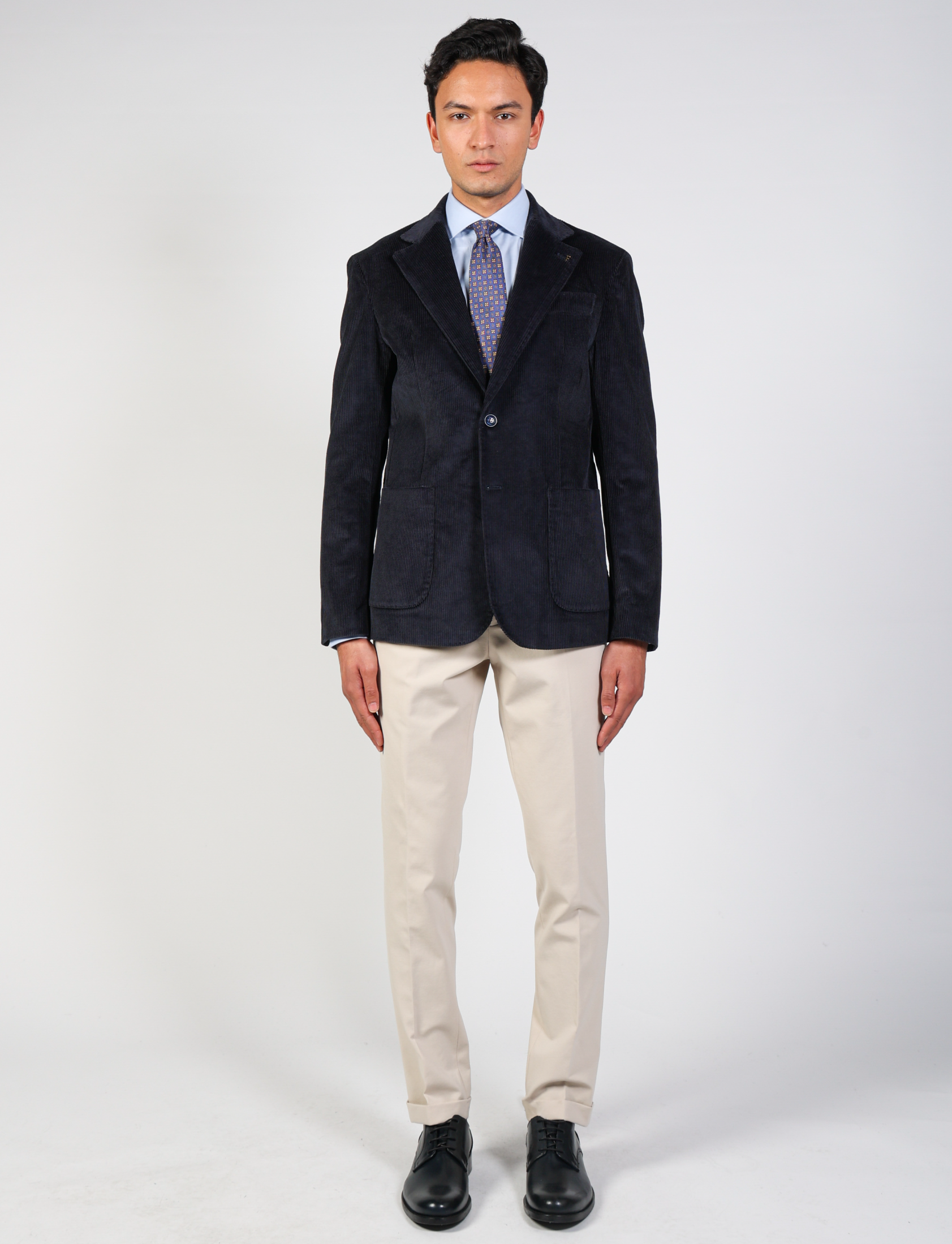 Elegante giacca in velluto a coste dal fit slim, ideale per look raffinati e moderni. Perfetta da abbinare con pantaloni coordinati per un completo sofisticato o con tessuti diversi per un outfit spezzato di carattere. Comfort, qualità e dettagli sartoriali per un'eleganza senza tempo.