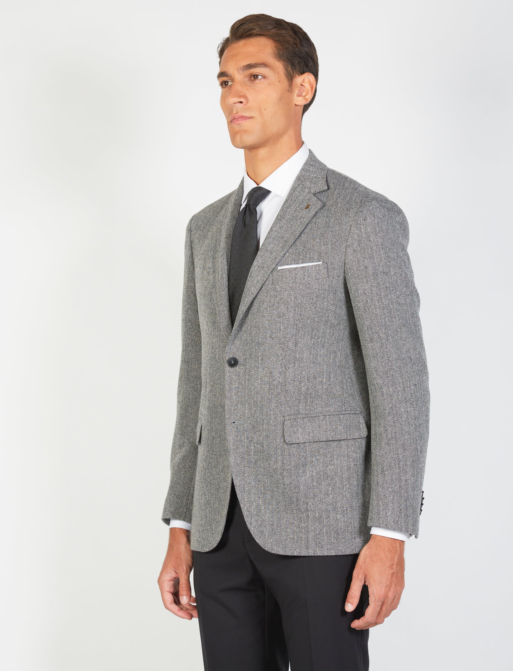 Scopri la giacca spigata in lana modello resca. Perfetta per un look elegante e moderno, con dettagli raffinati e tessuto di qualità. Indossa l'eccellenza sartoriale italiana!