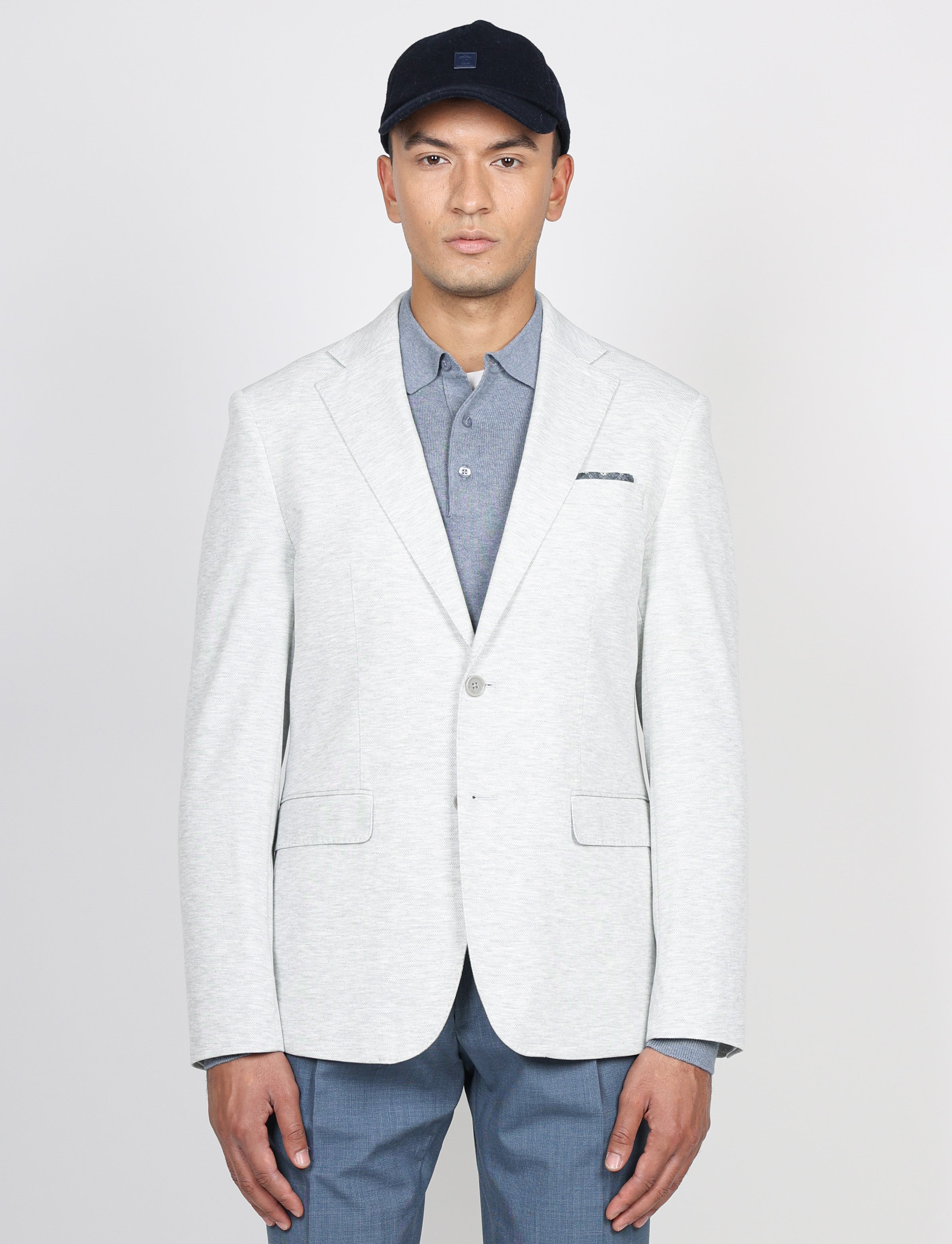 Elegante e contemporanea, questa giacca è realizzata in una maglia compatta e confortevole dalla texture melange, ideale per completare con stile i look di stagione. Il taglio slim valorizza la figura senza rinunciare al comfort, mentre i dettagli sartoriali ne esaltano la qualità e la cura artigianale.