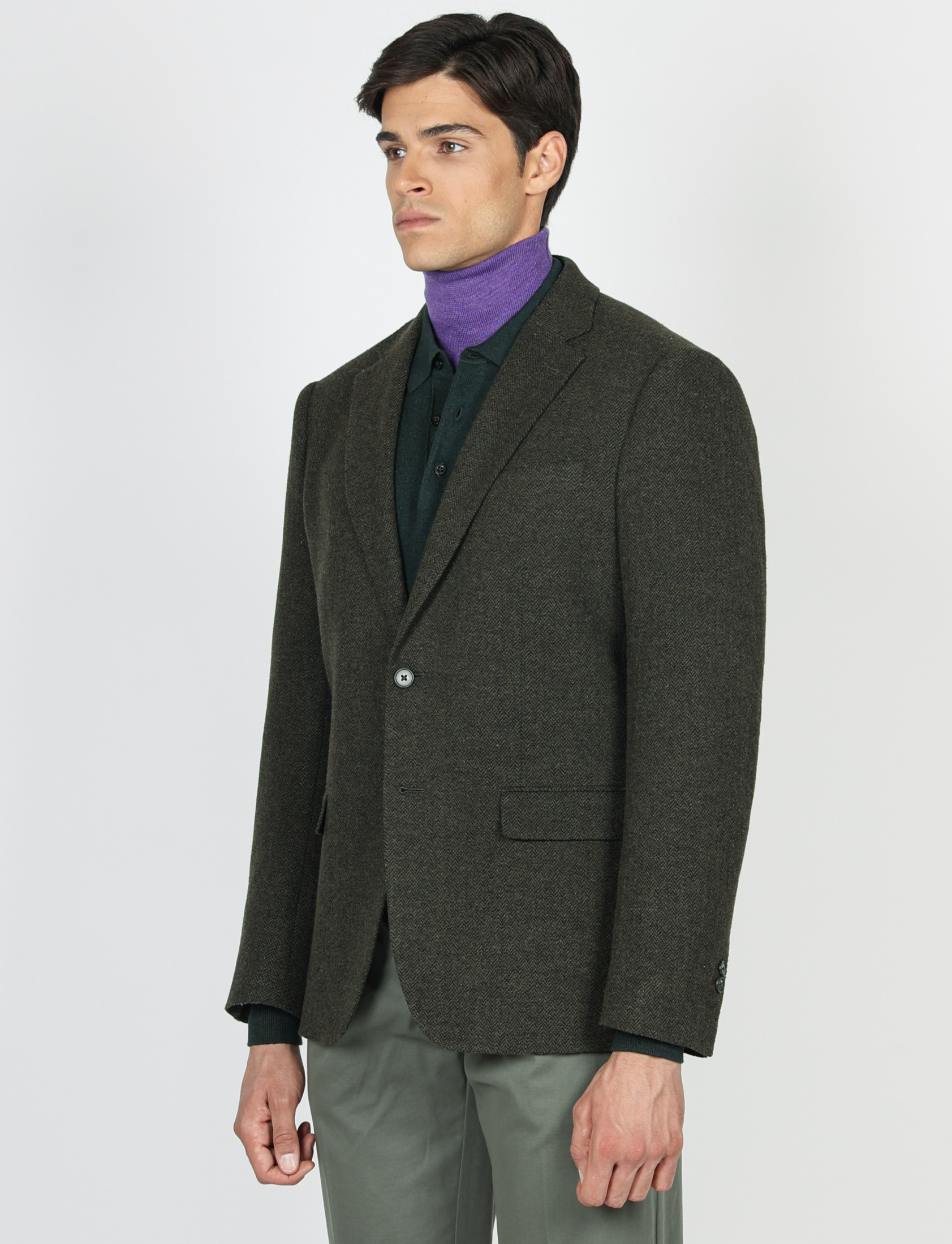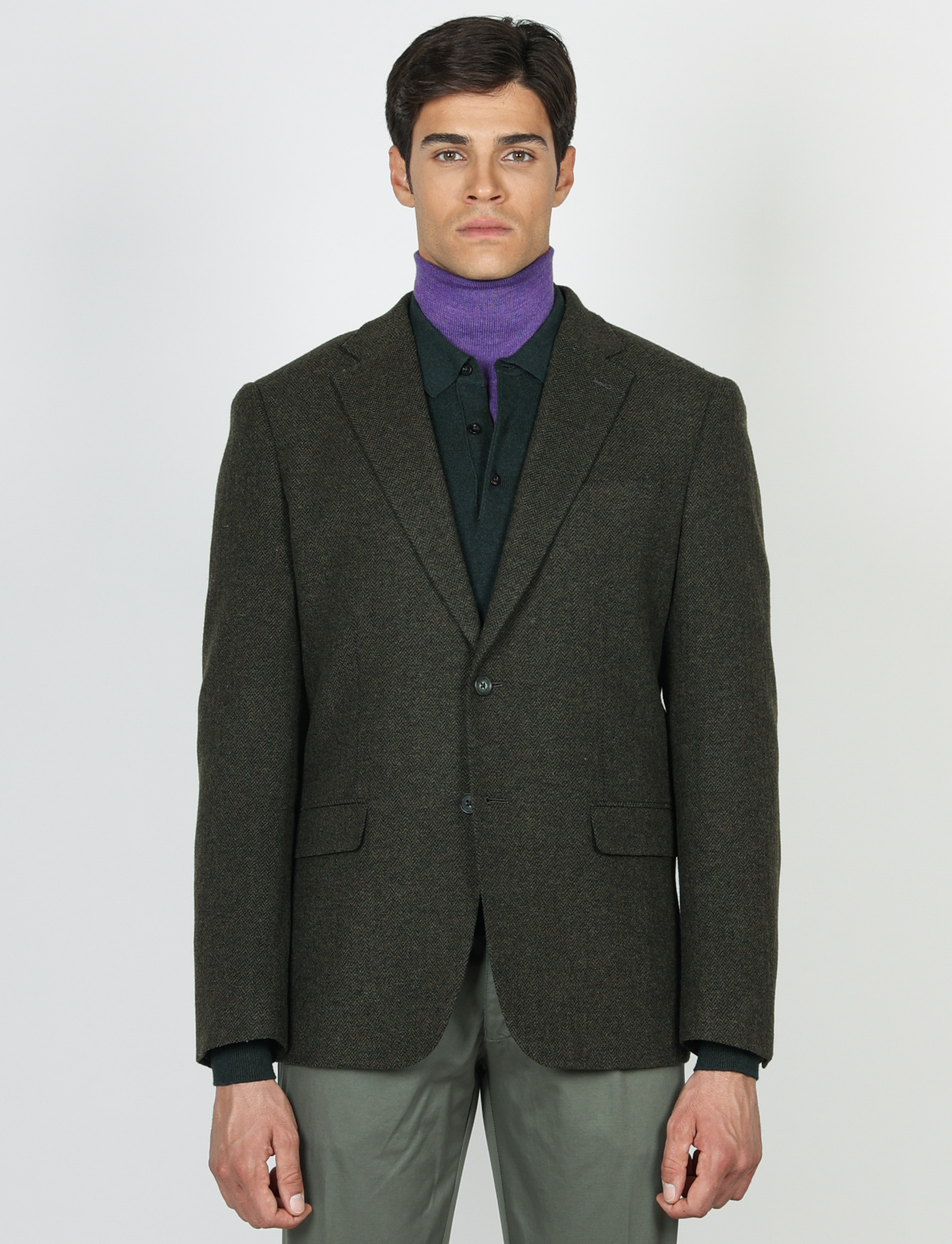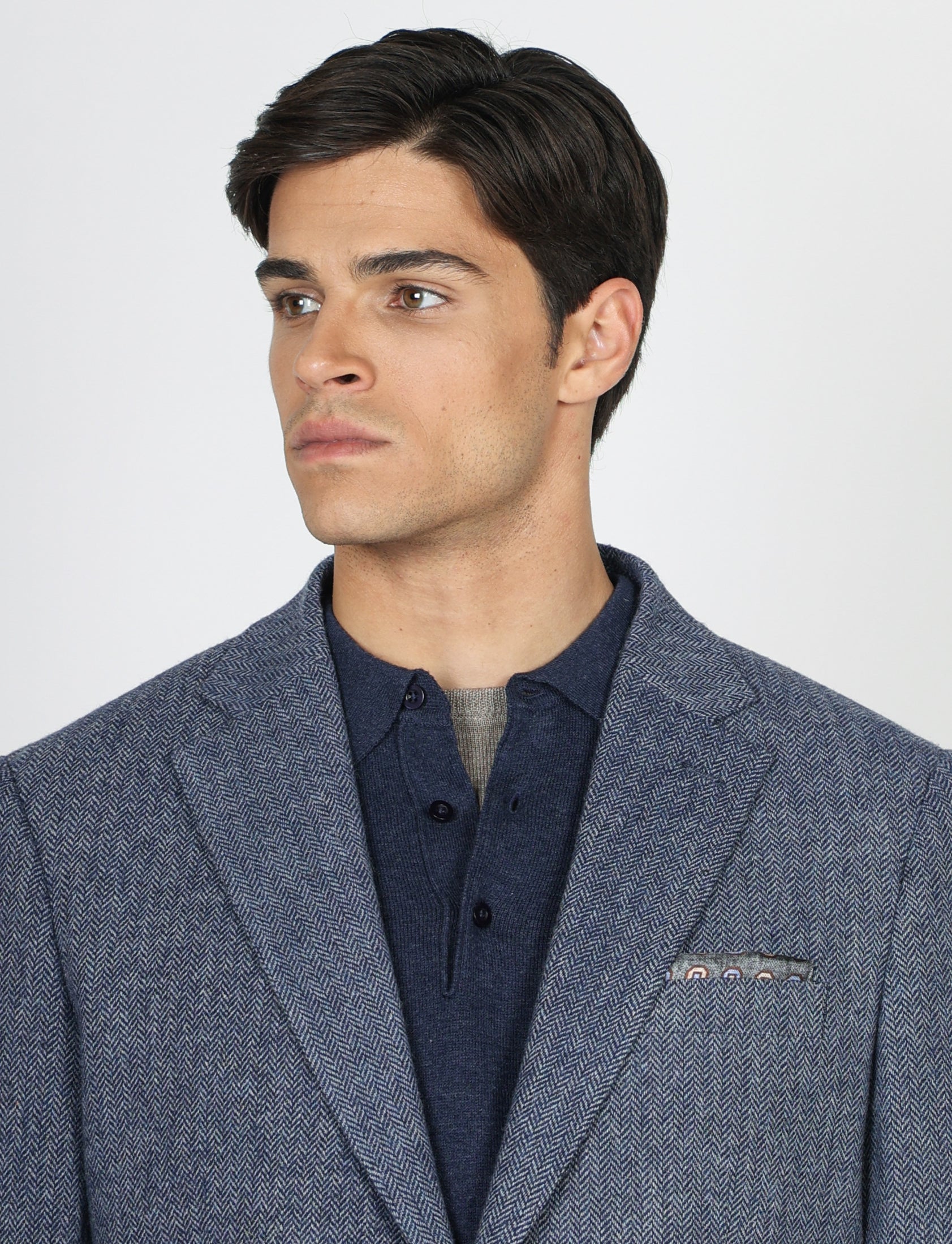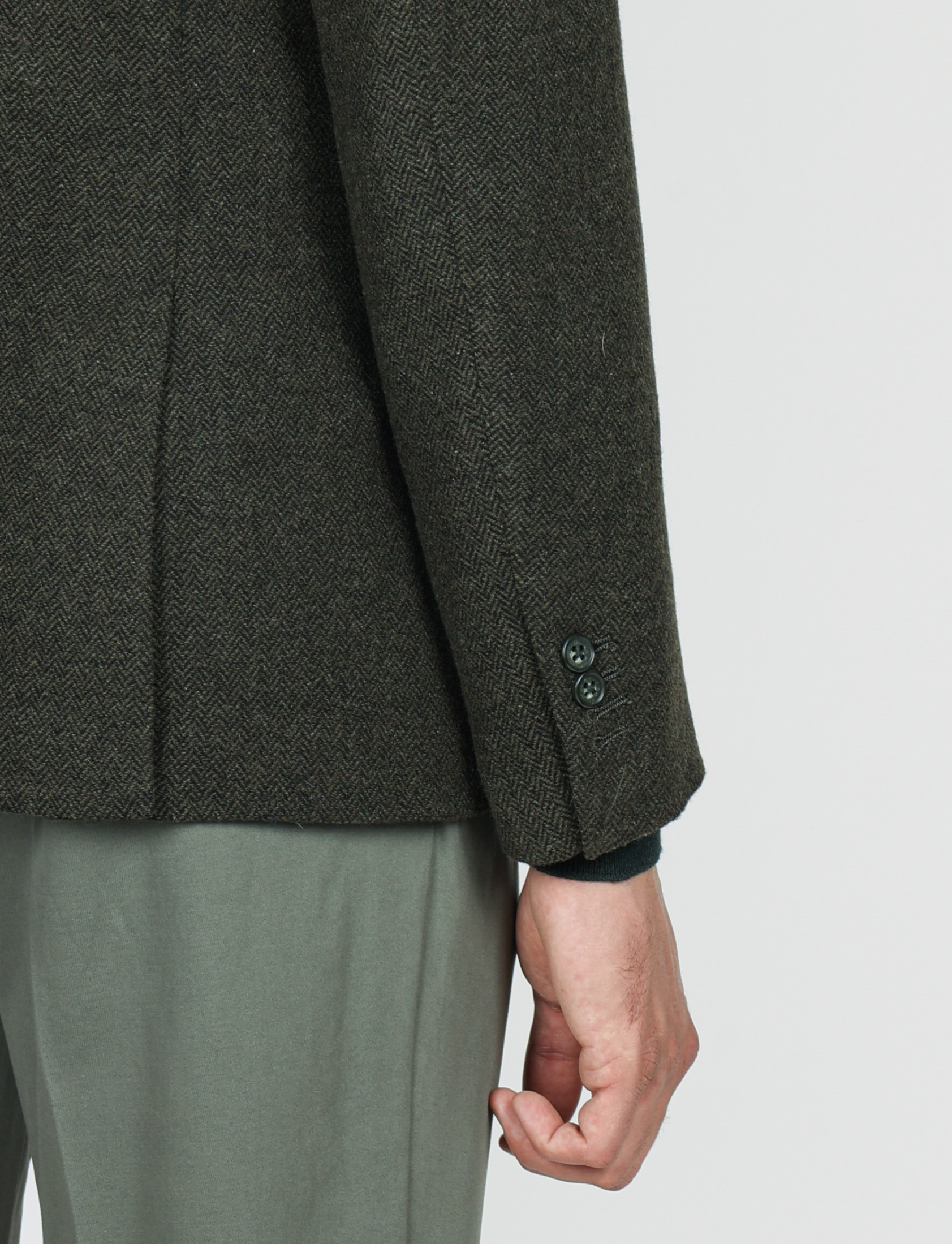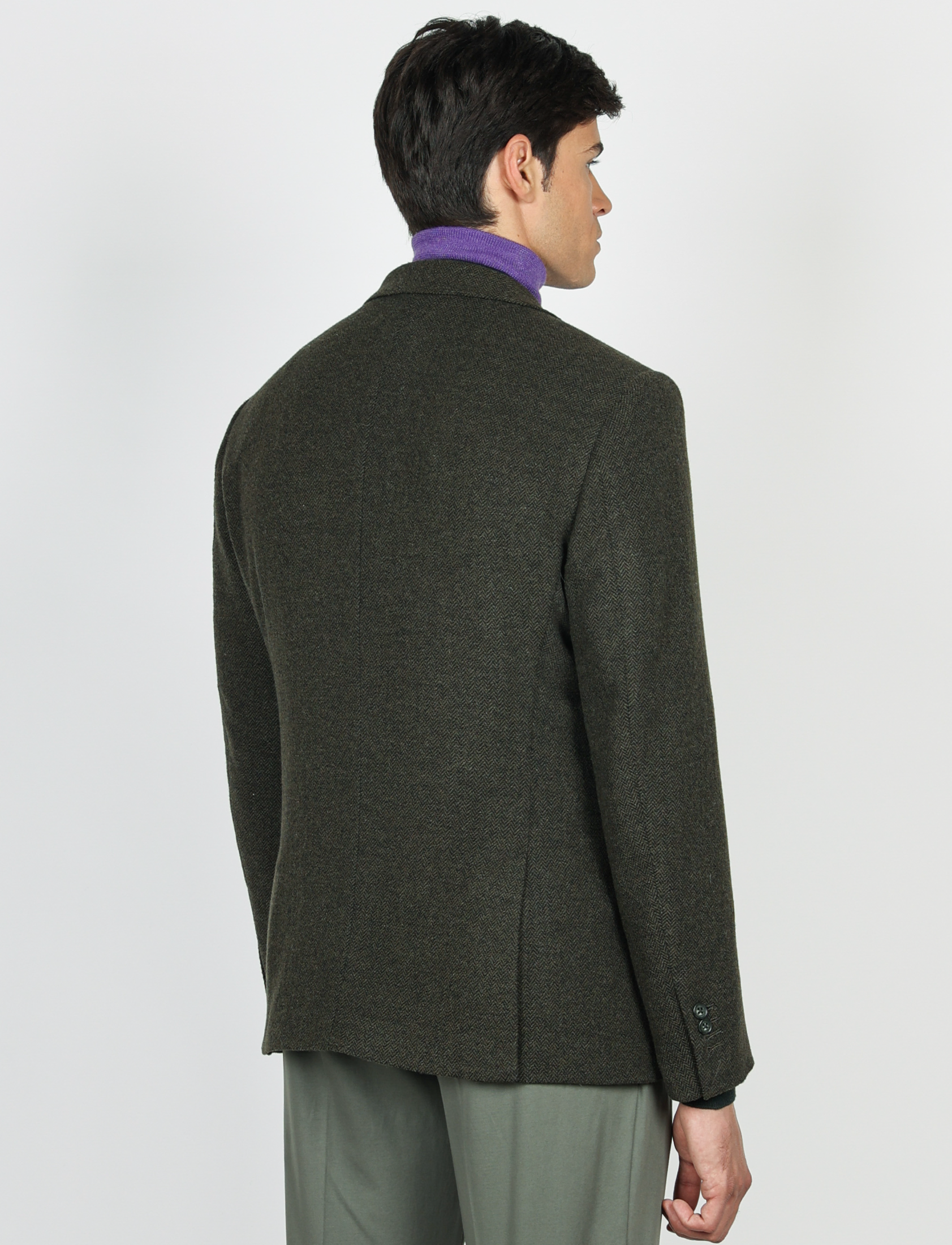 Il taglio slim fit valorizza la silhouette, mentre la costruzione moderna e la texture spigata donano un’eleganza classica ma contemporanea.