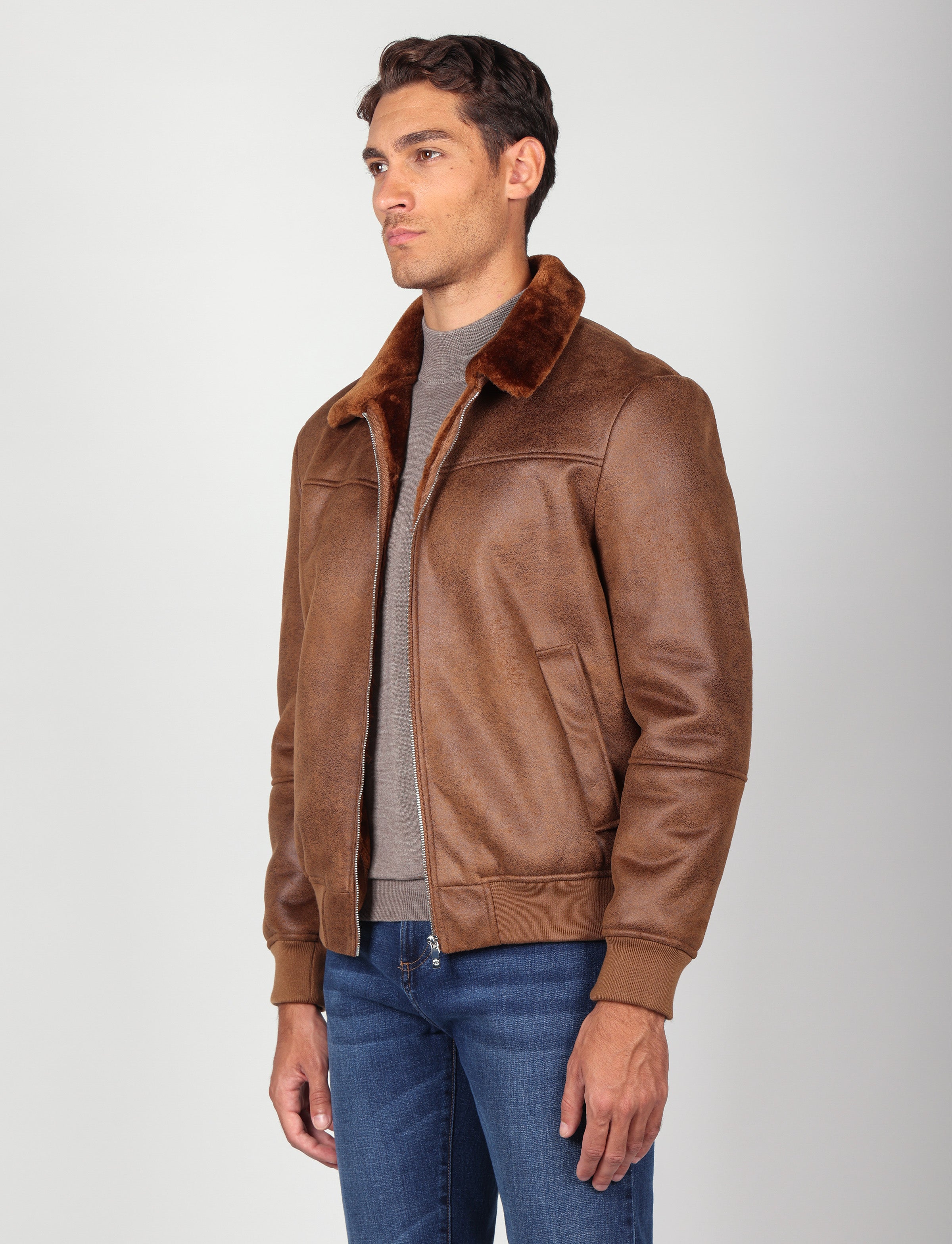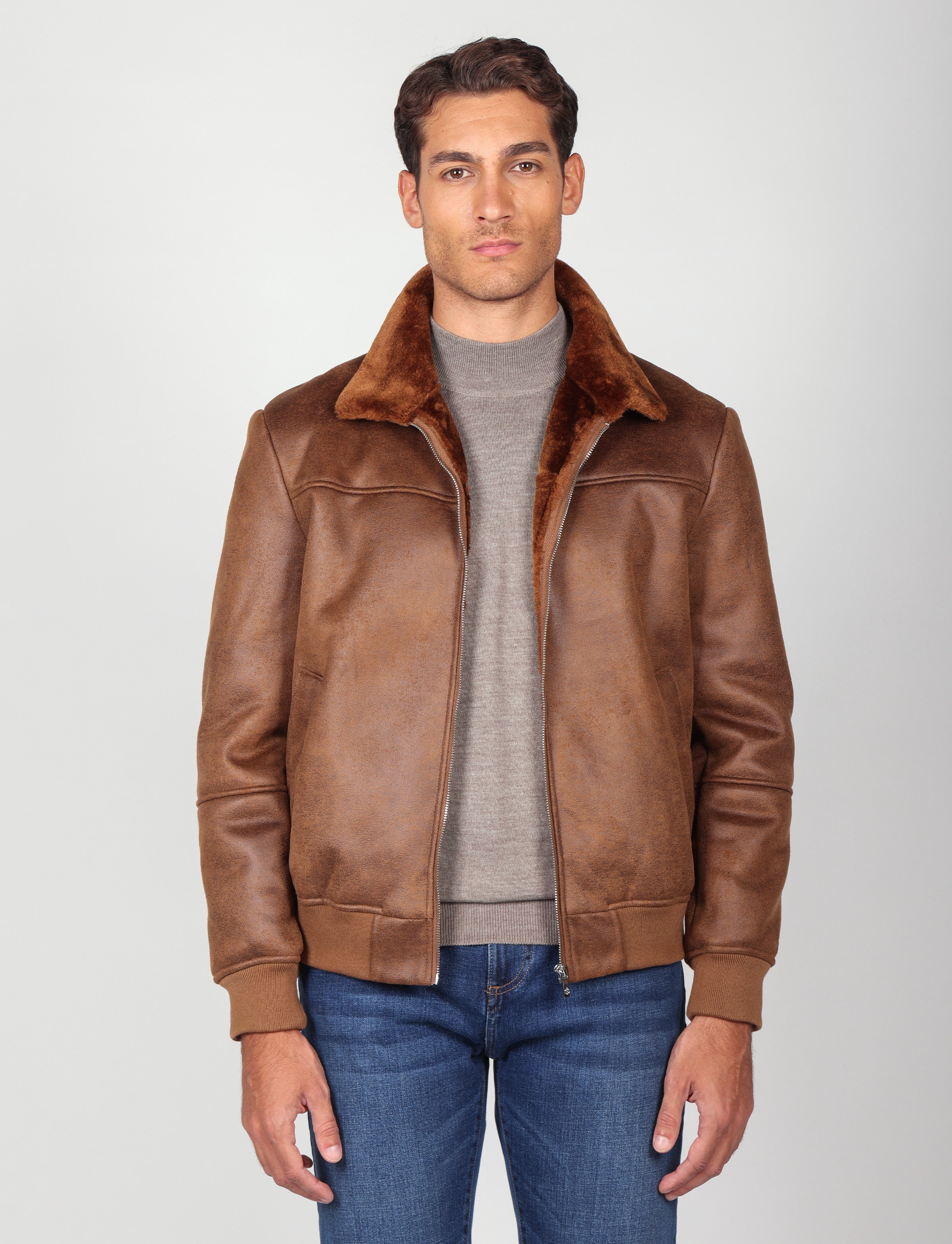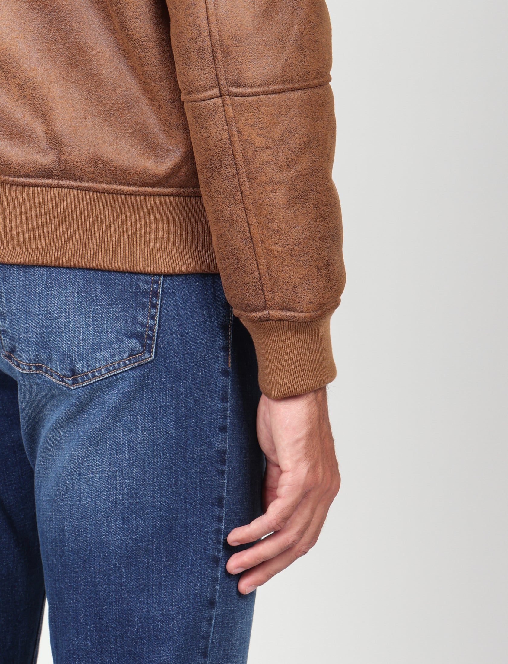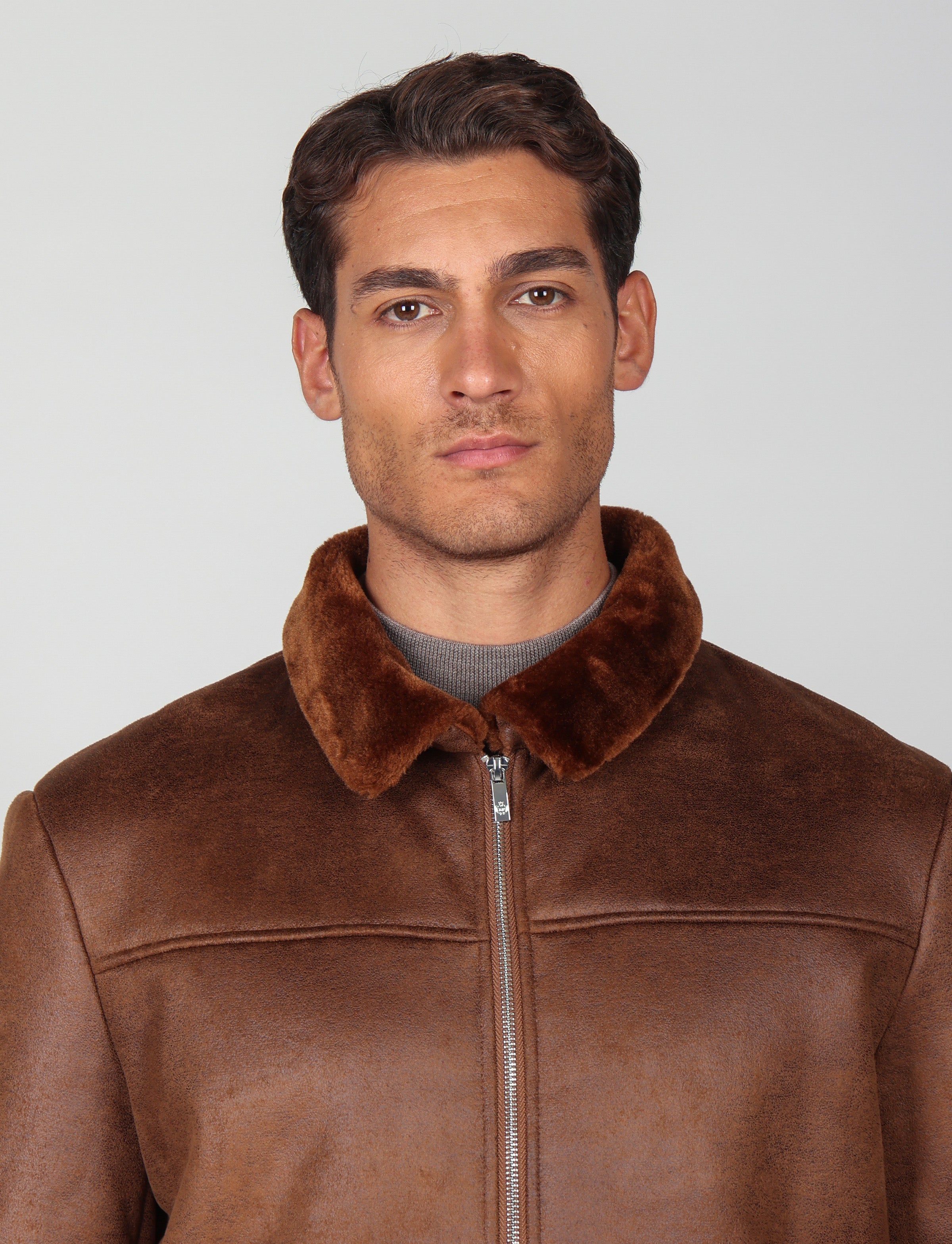 Giubbino modello Cortina in eco montone effetto scamosciato, con interno caldo e soffice in eco shearling.