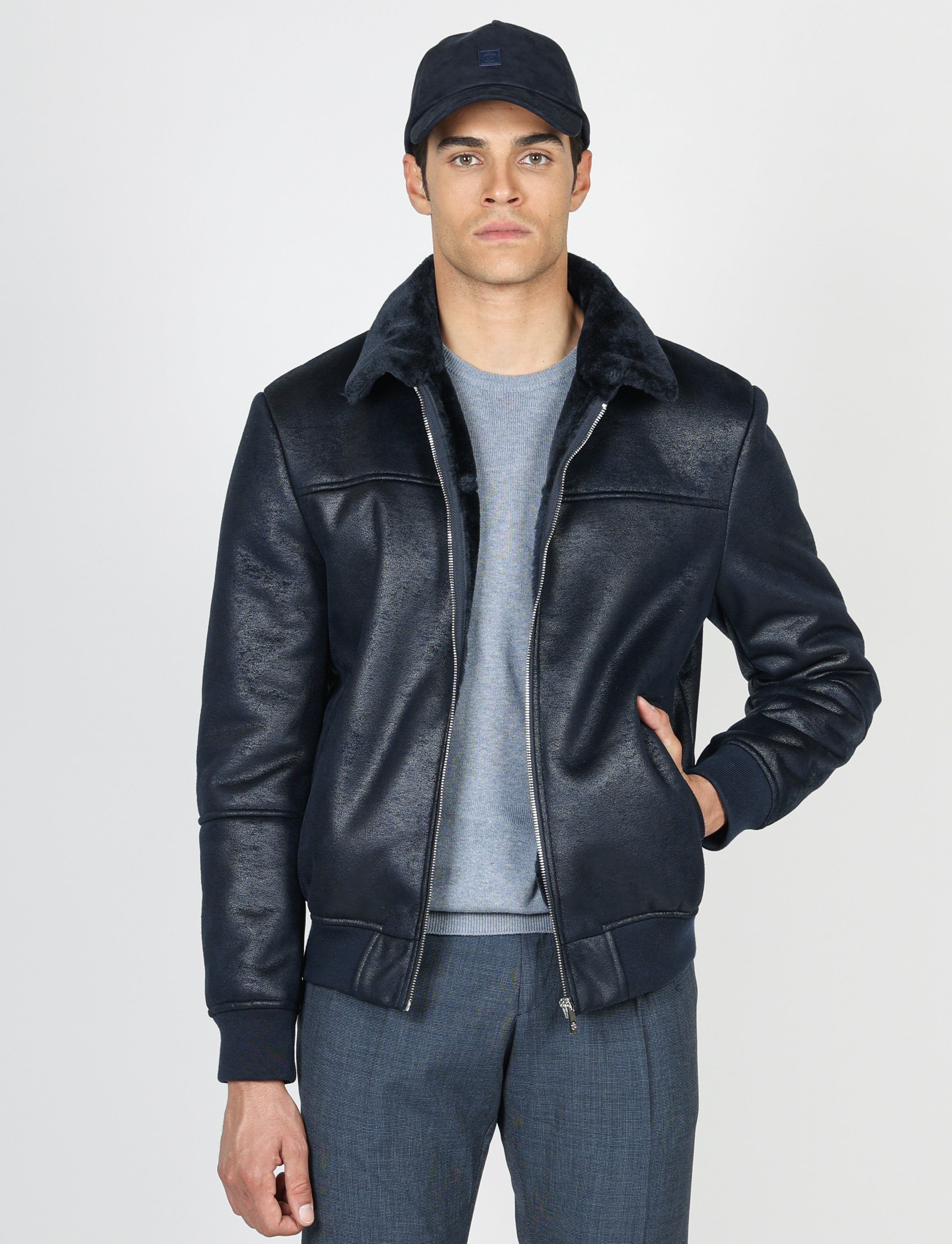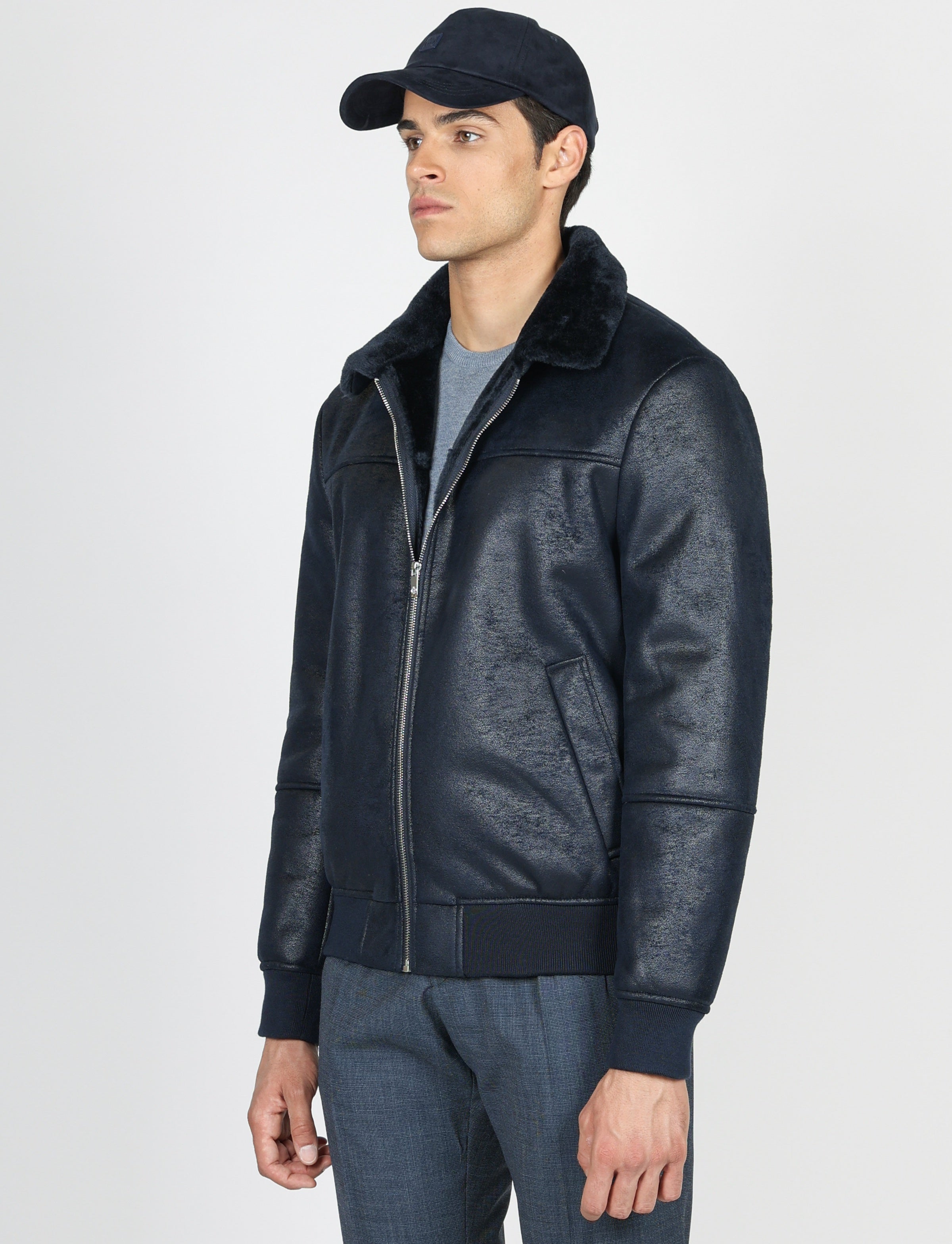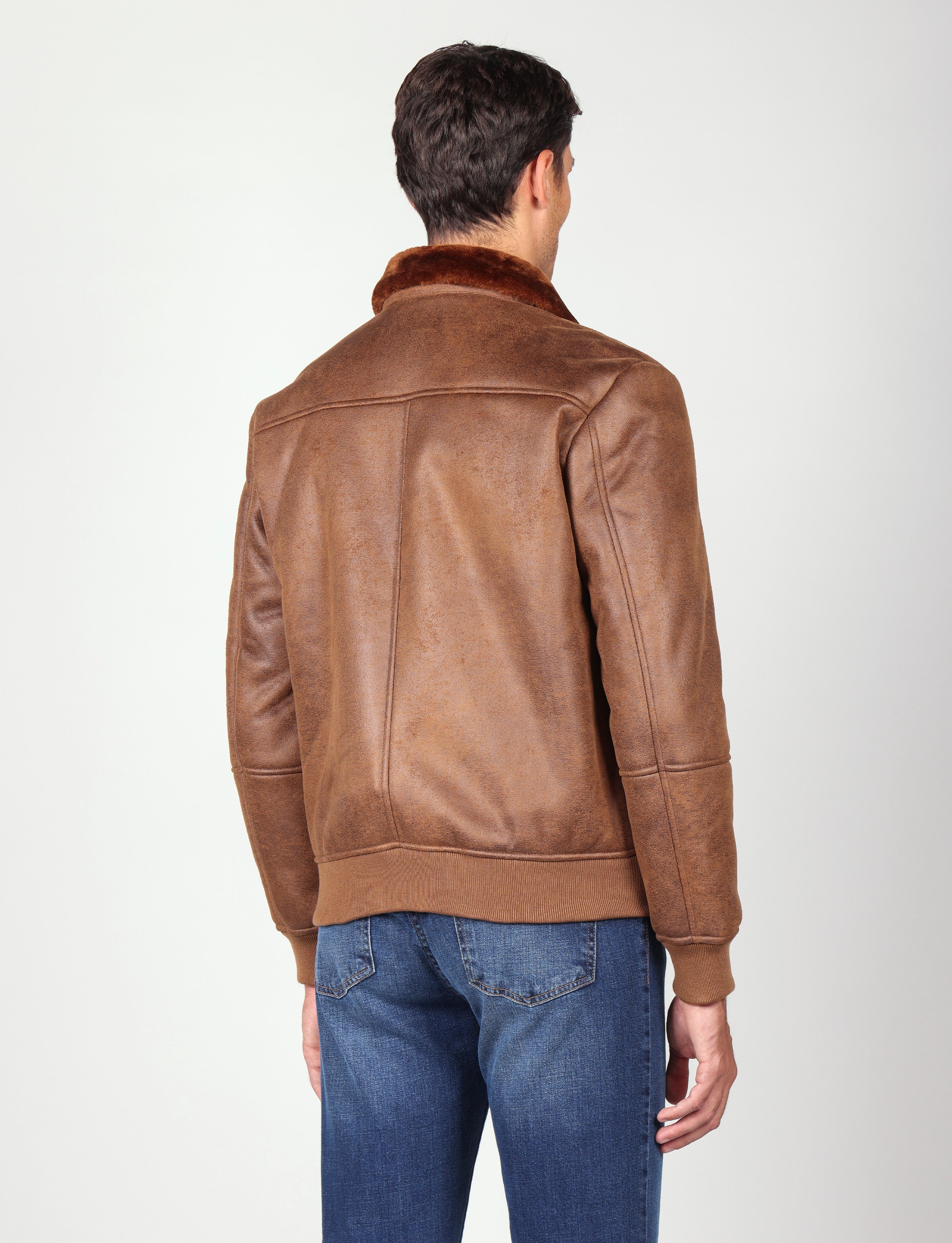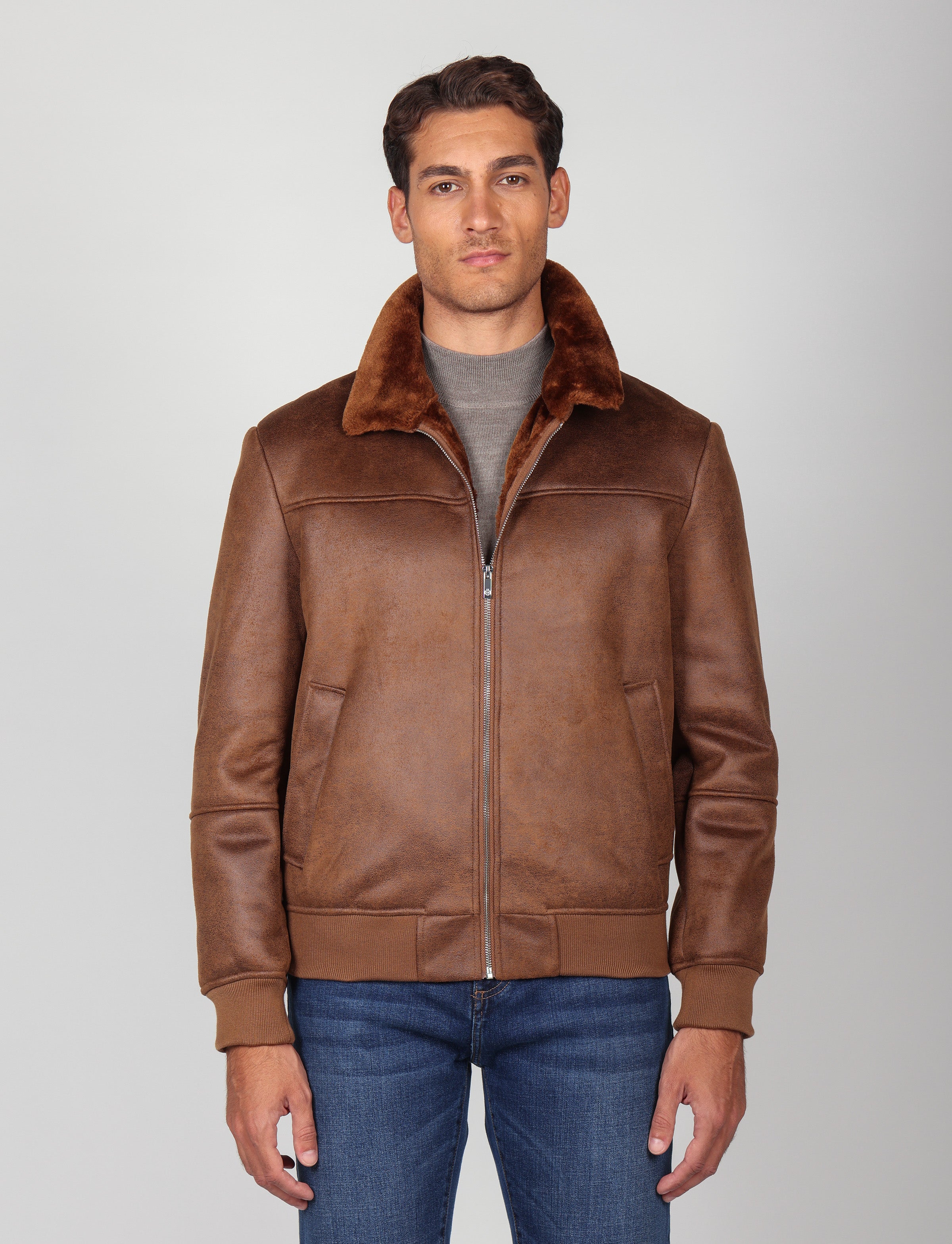 Giubbino modello Cortina in eco montone effetto scamosciato, con interno caldo e soffice in eco shearling.