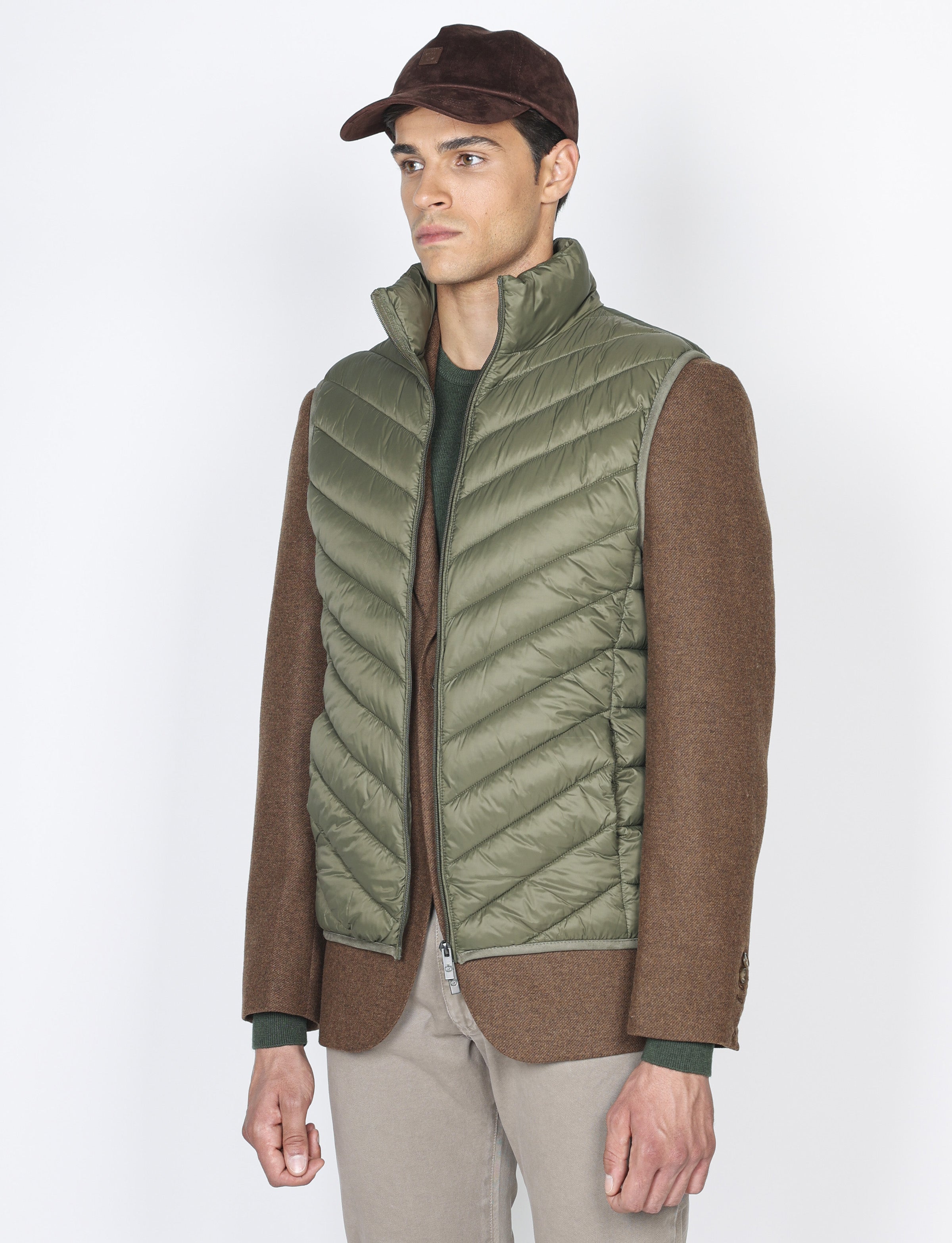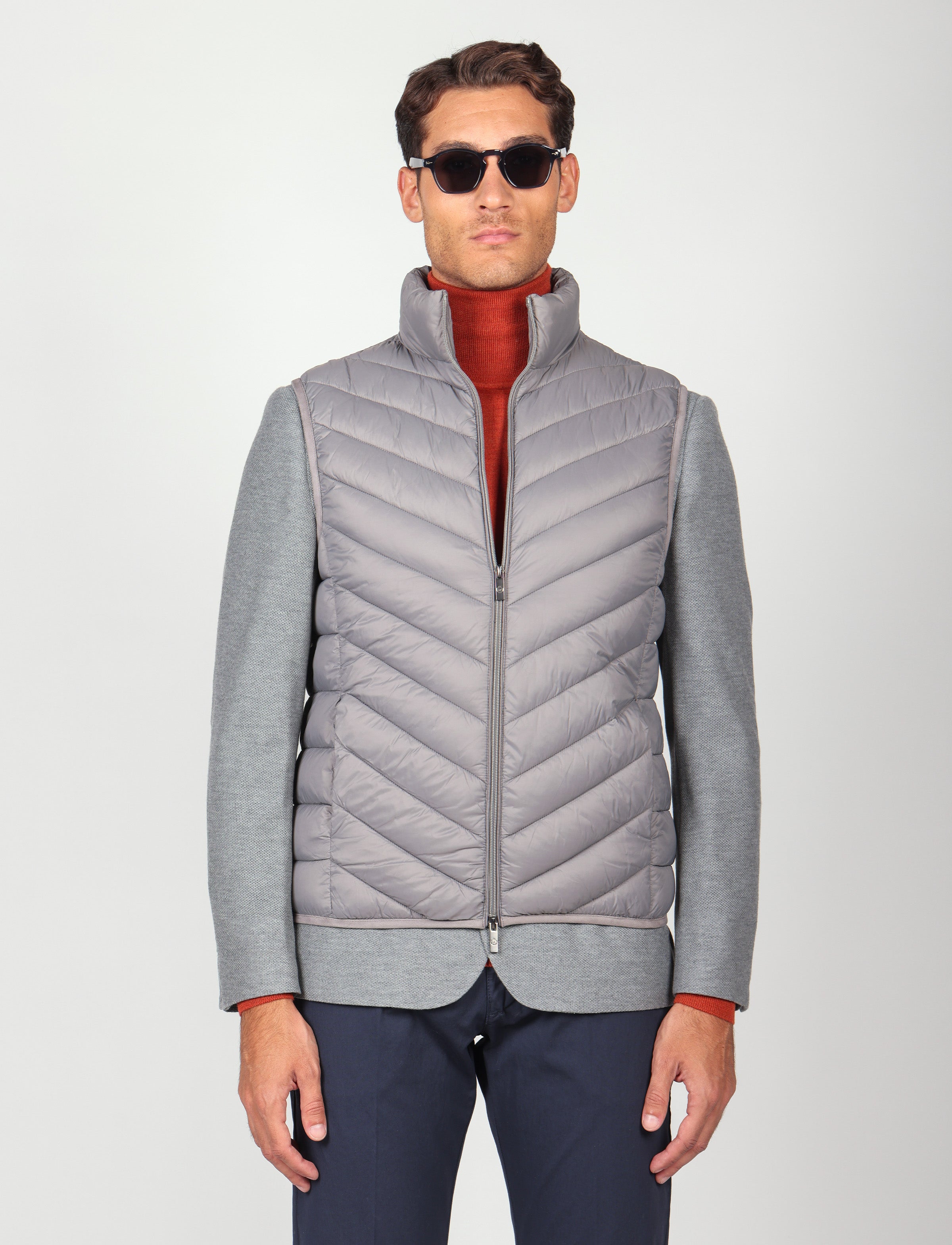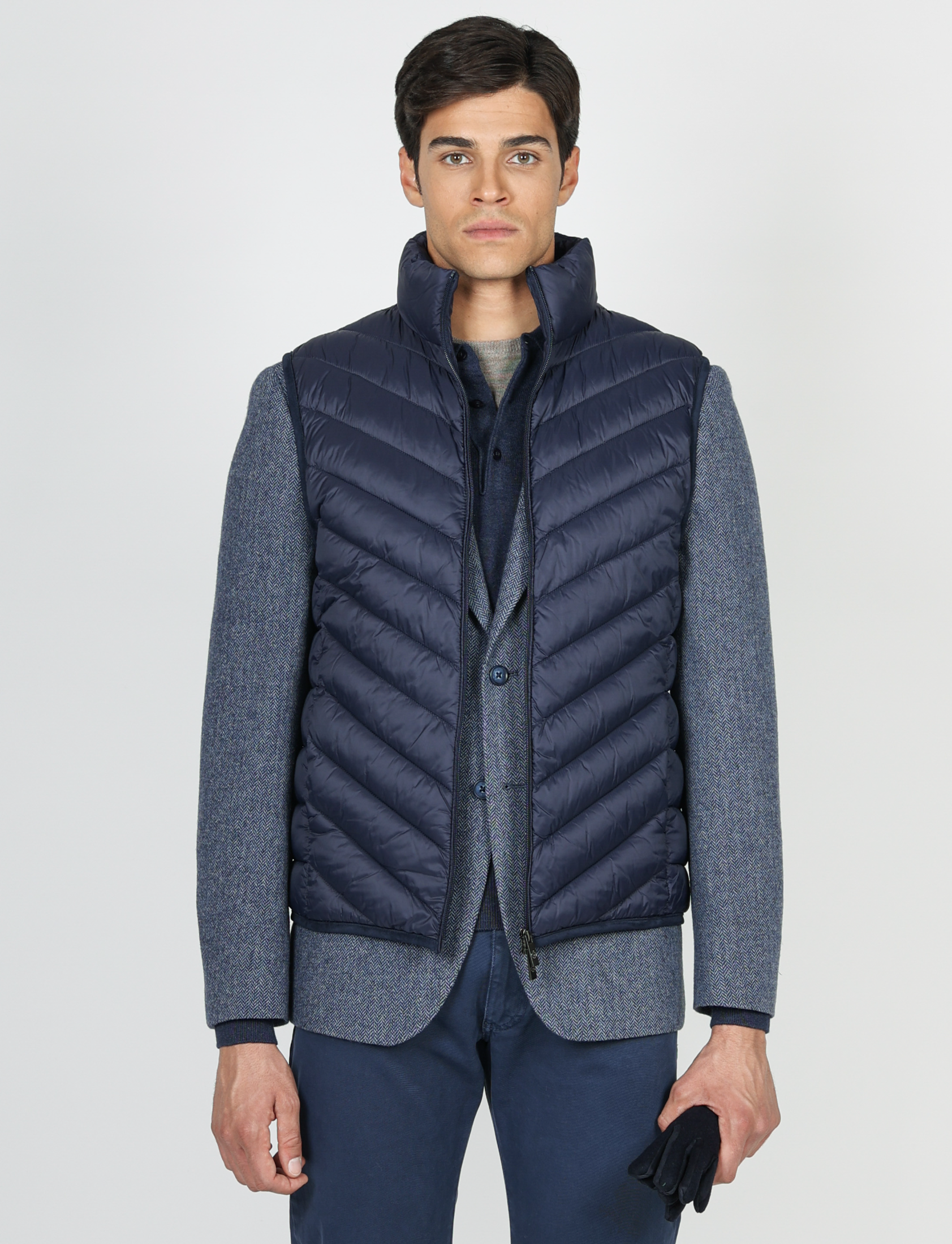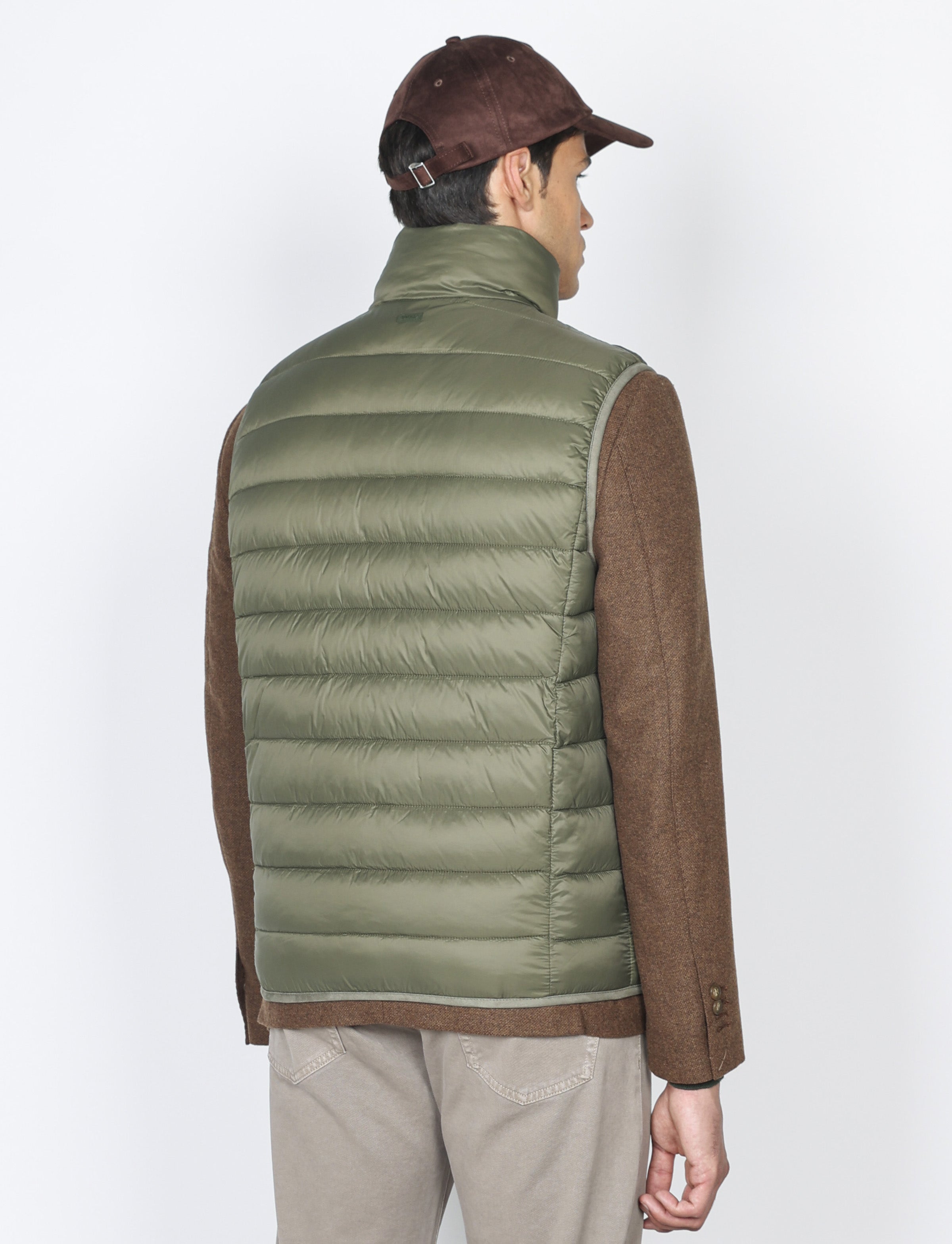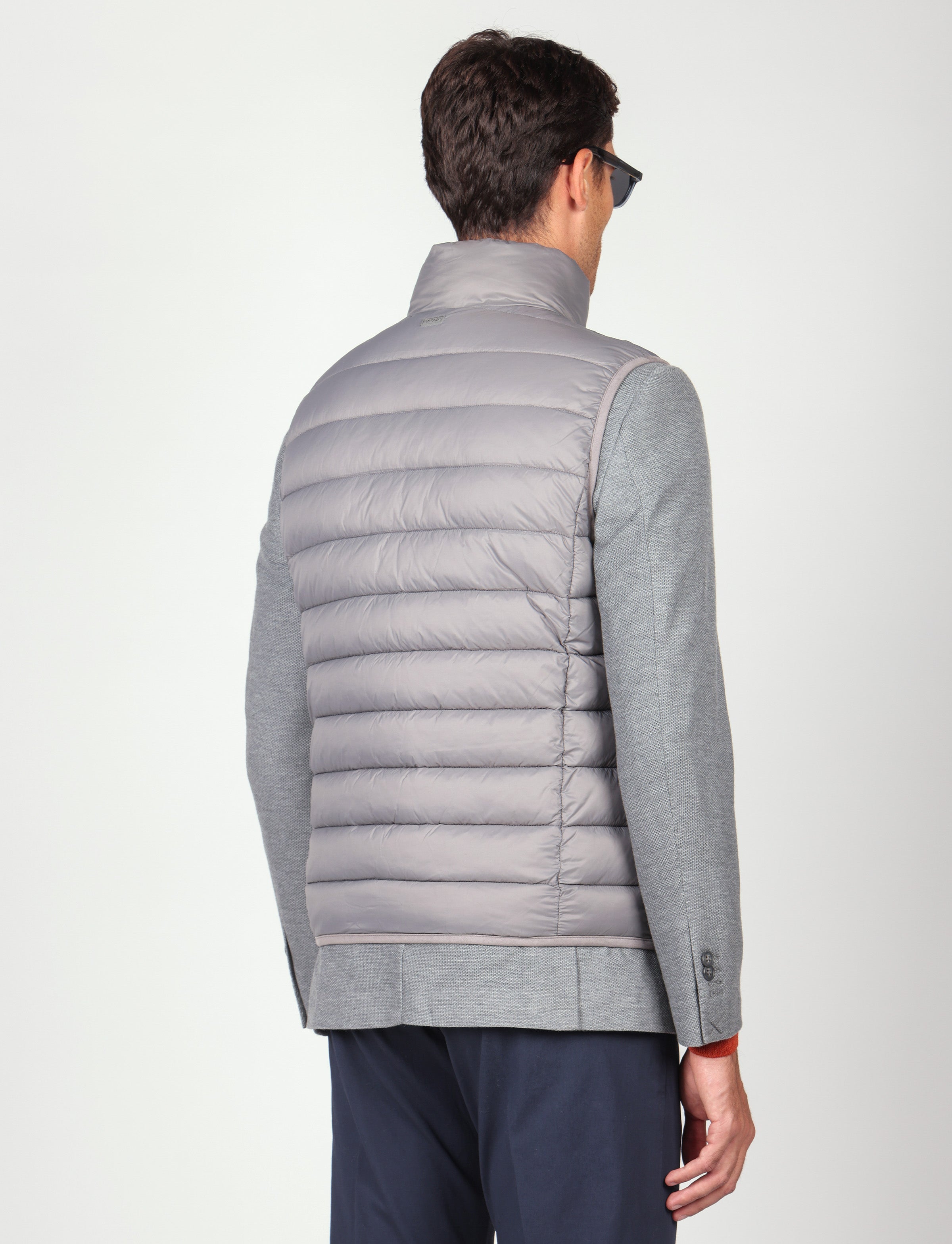 Gilet imbottito, realizzato in tessuto tecnico di nylon ultraleggero con imbottitura che garantisce comfort e calore senza rinunciare all’eleganza.