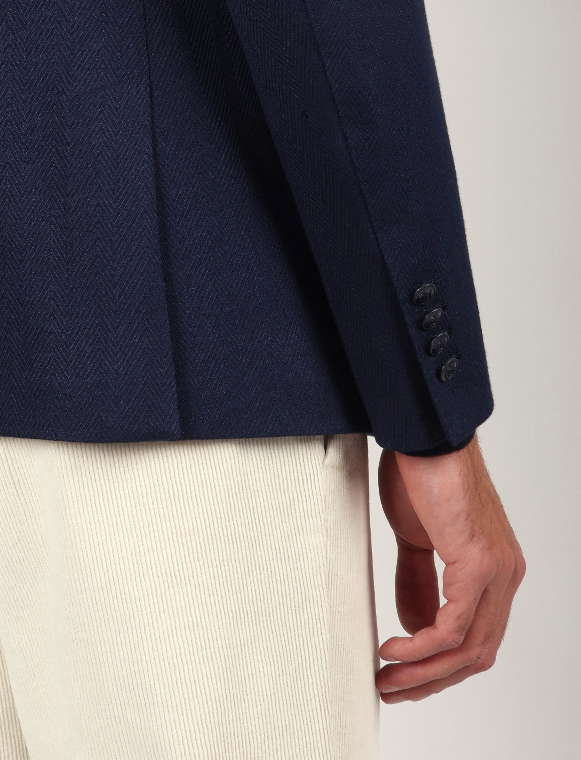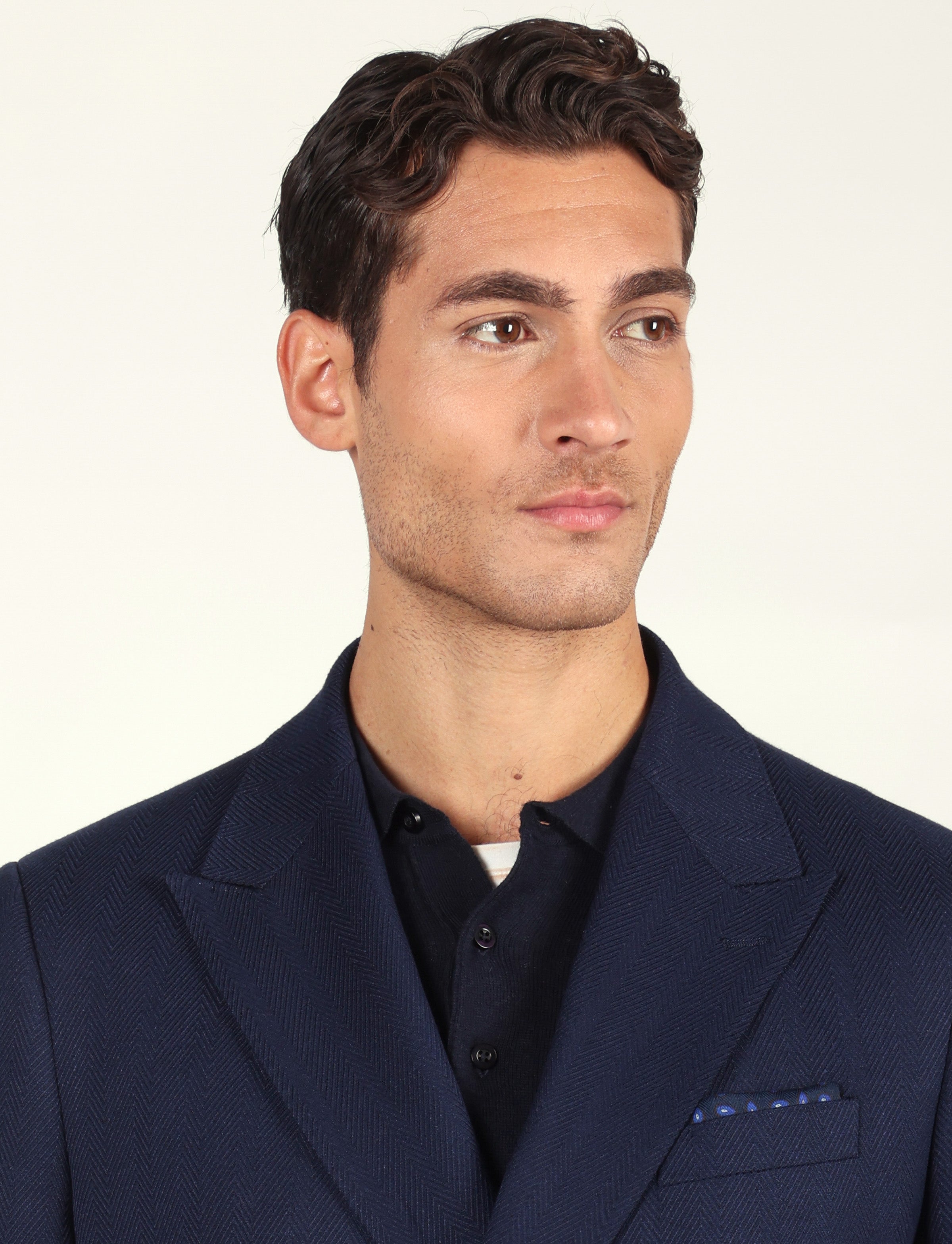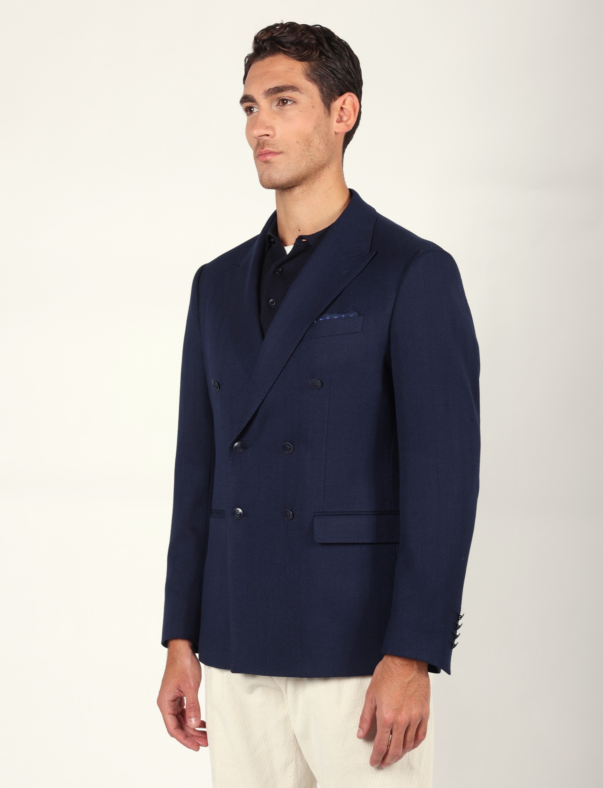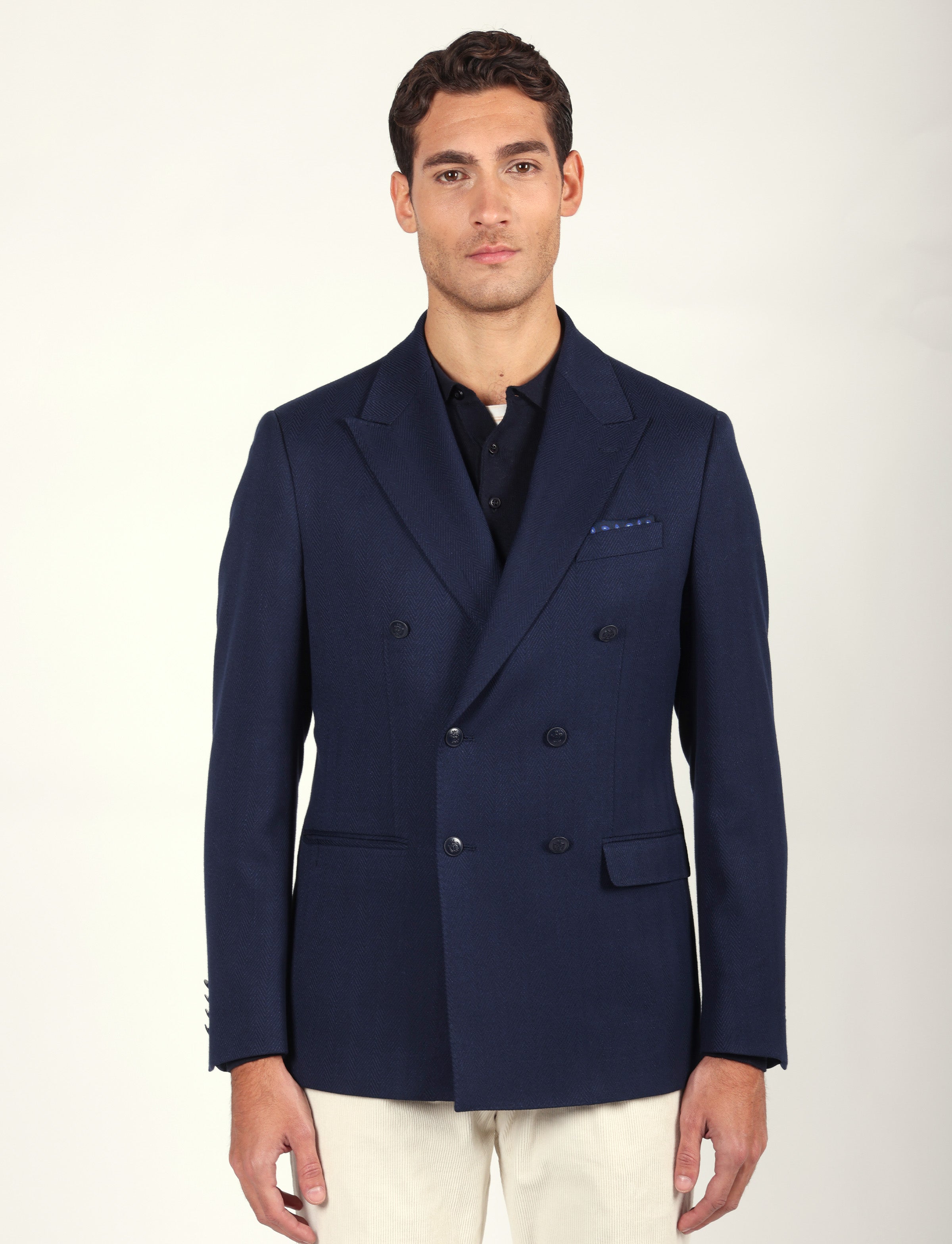 Giacca doppiopetto in tessuto spigato, dal design raffinato e dalla struttura sartoriale. Semi foderata sulle spalle con profili interni sulle maniche, unisce comfort, stile ed eleganza senza tempo.