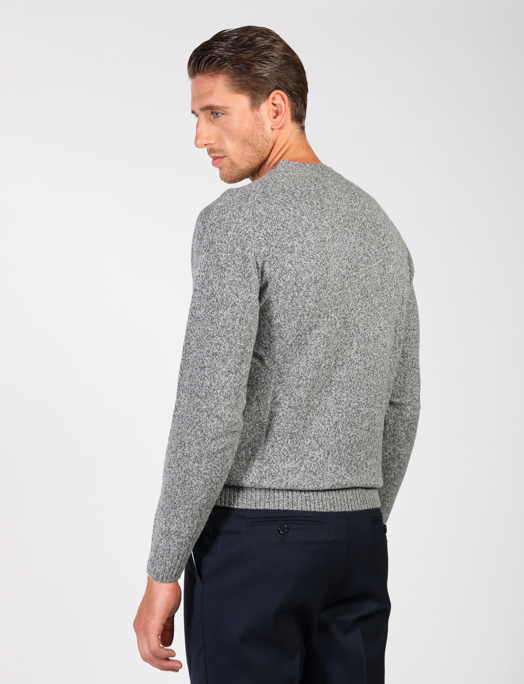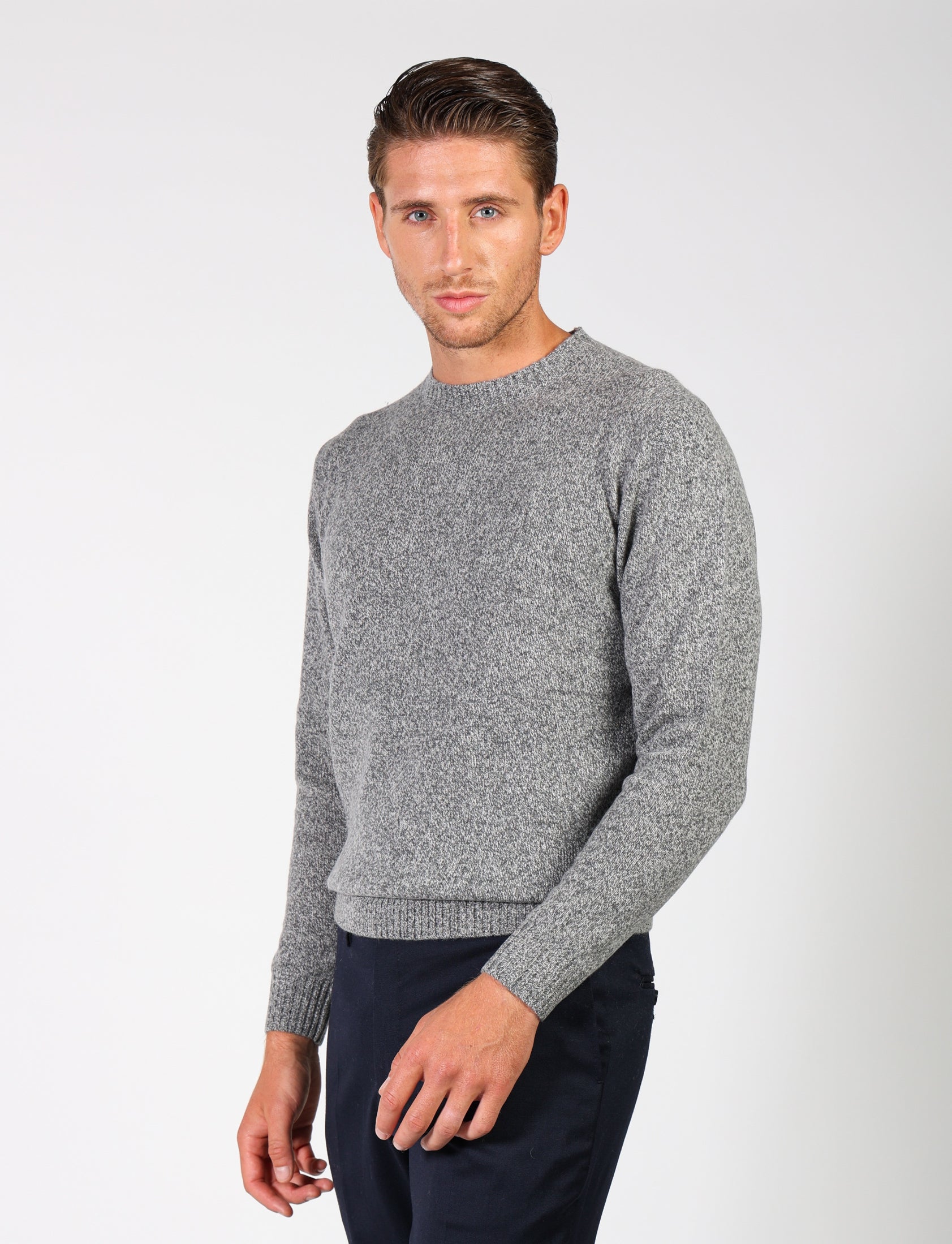 La nostra maglia girocollo in lana mouliné è il capo perfetto per affrontare l'inverno con stile. Realizzata in morbida lambswool di alta qualità, questa maglia offre calore e comfort senza rinunciare al design moderno. Con il suo effetto melange unico, grazie alla lavorazione mouliné, aggiungerà un tocco di eleganza al tuo look quotidiano. Ideale per outfit casual o formali, è un must-have versatile per il tuo guardaroba invernale