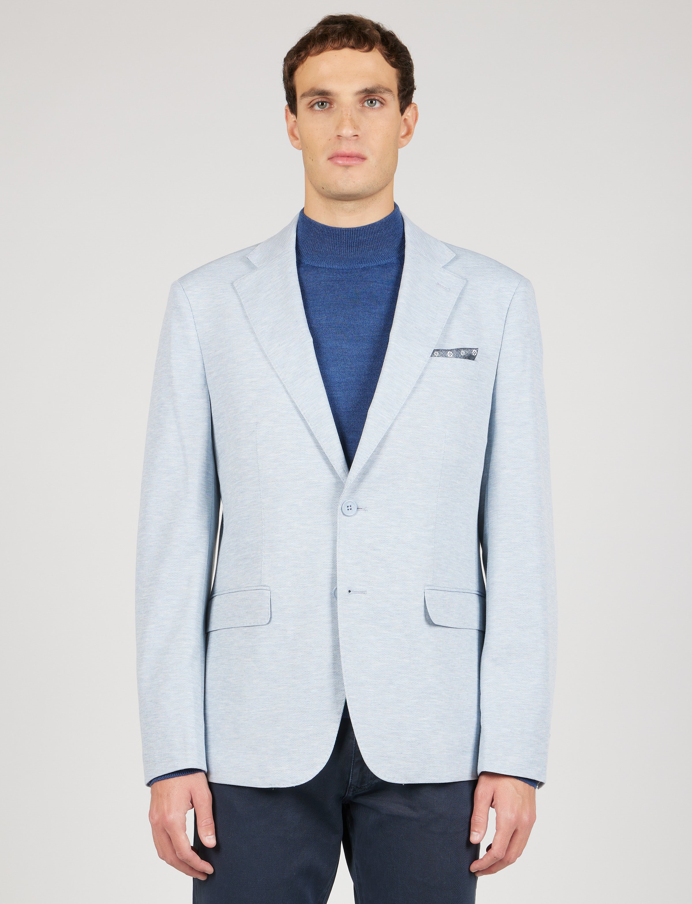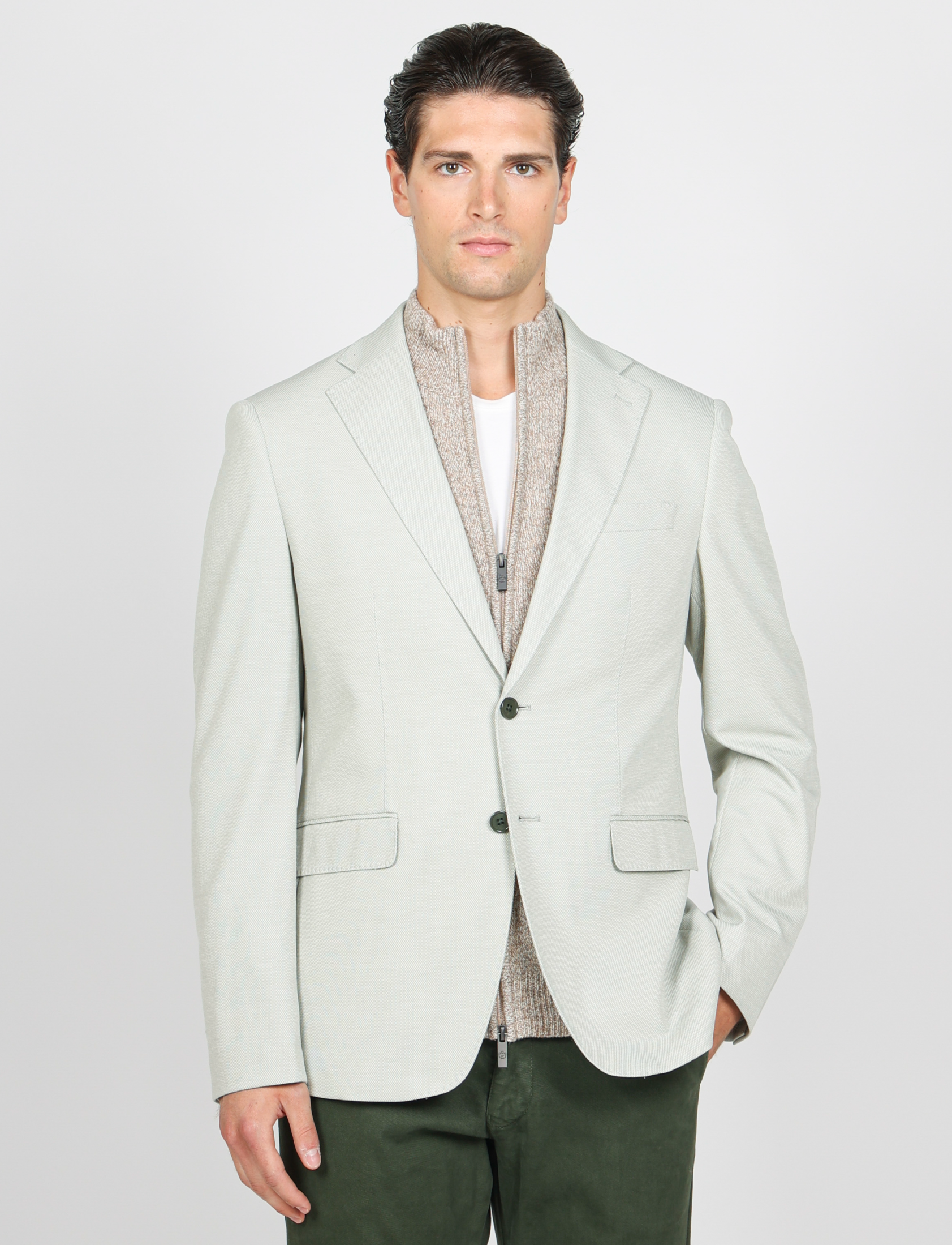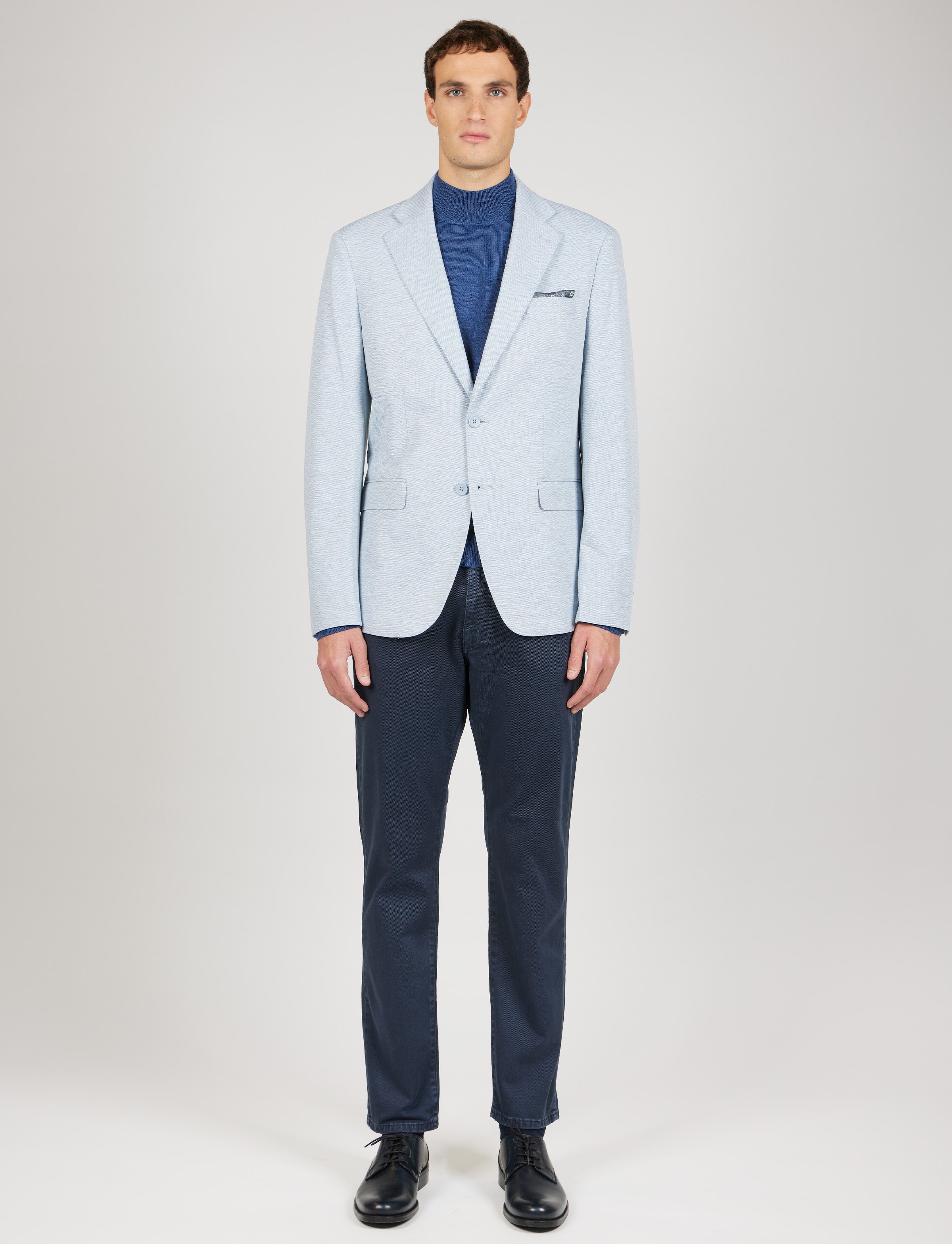 Elegante e contemporanea, questa giacca è realizzata in una maglia compatta e confortevole dalla texture melange, ideale per completare con stile i look di stagione. Il taglio slim valorizza la figura senza rinunciare al comfort, mentre i dettagli sartoriali ne esaltano la qualità e la cura artigianale.