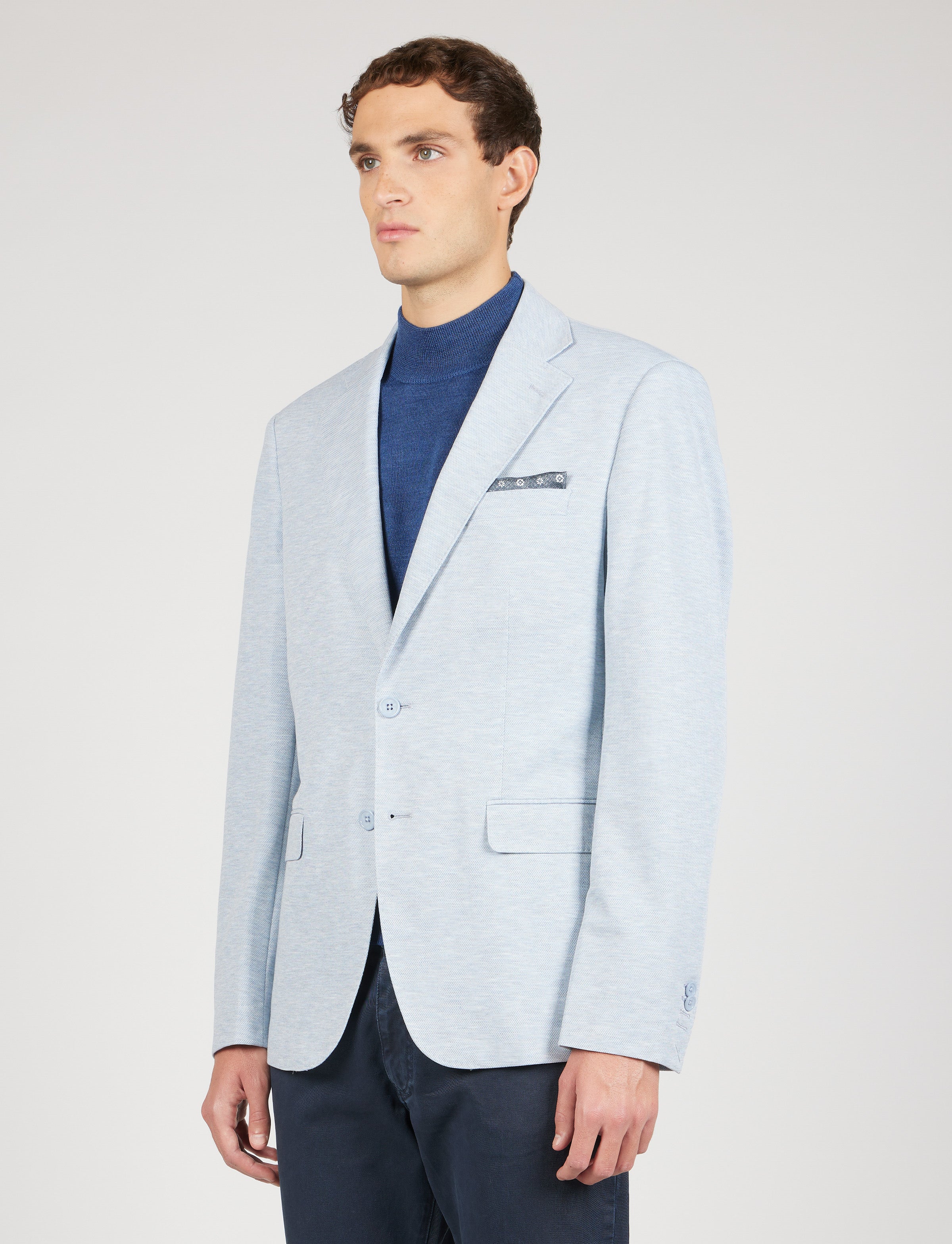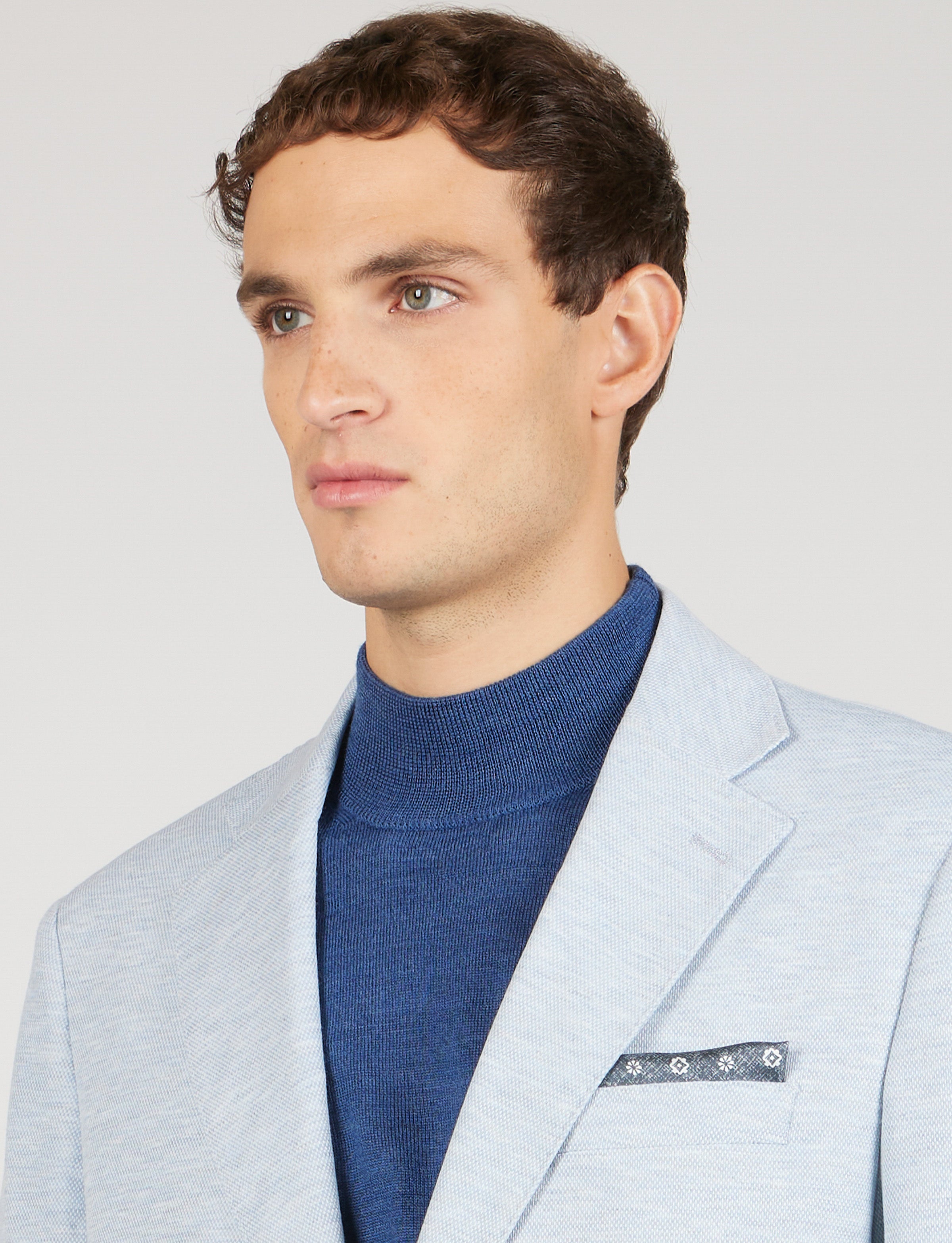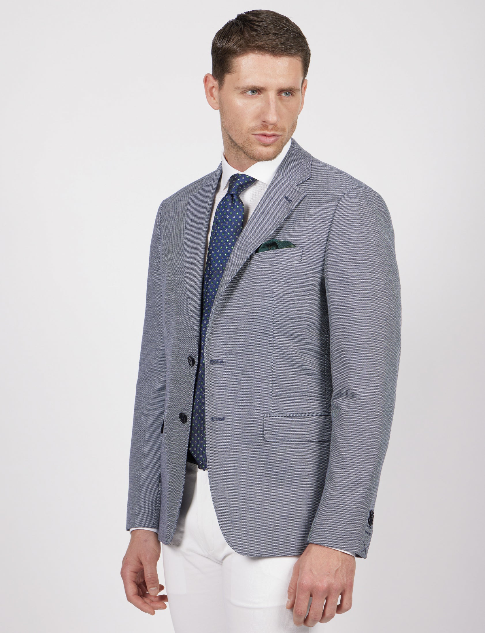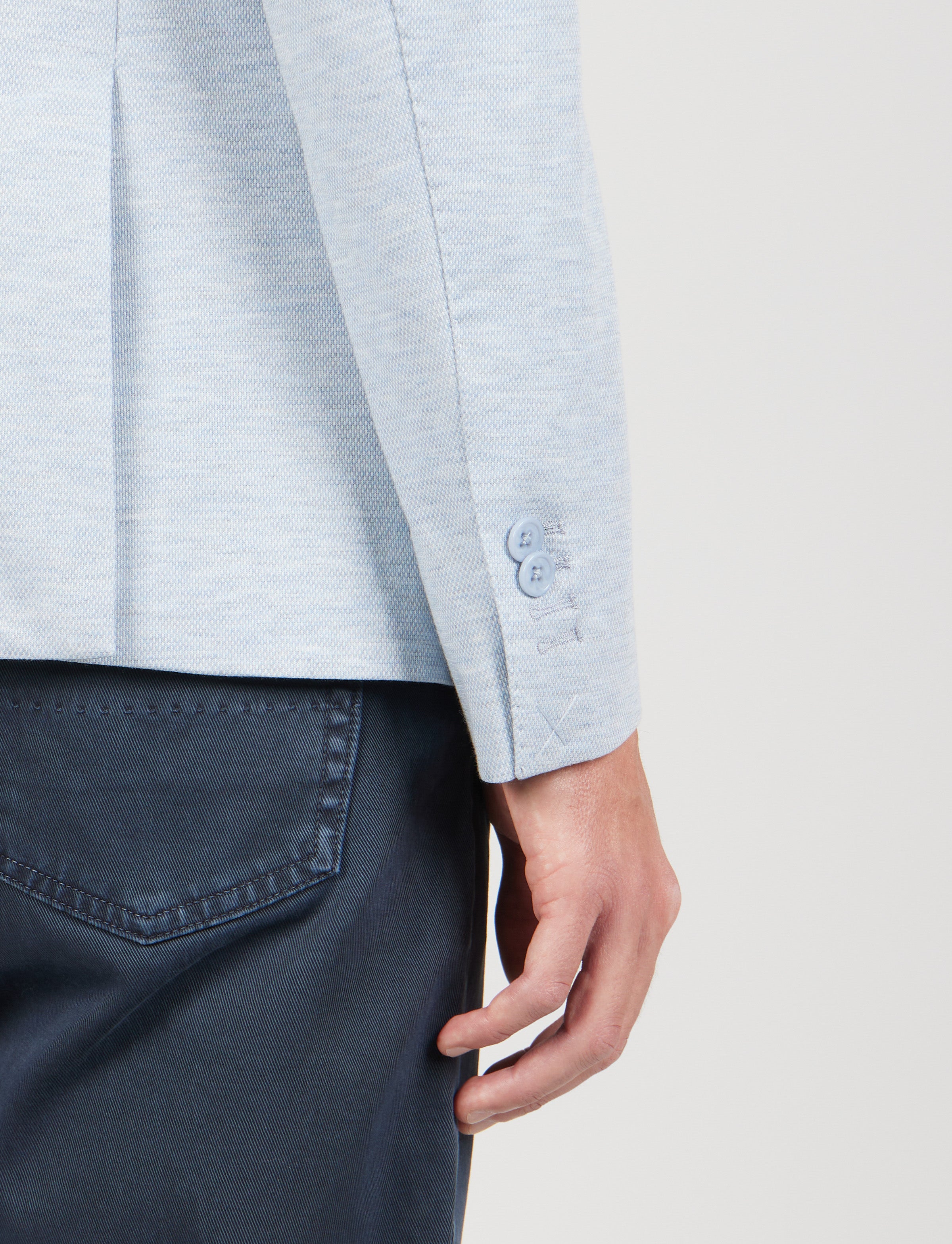 Elegante e contemporanea, questa giacca è realizzata in una maglia compatta e confortevole dalla texture melange, ideale per completare con stile i look di stagione. Il taglio slim valorizza la figura senza rinunciare al comfort, mentre i dettagli sartoriali ne esaltano la qualità e la cura artigianale.