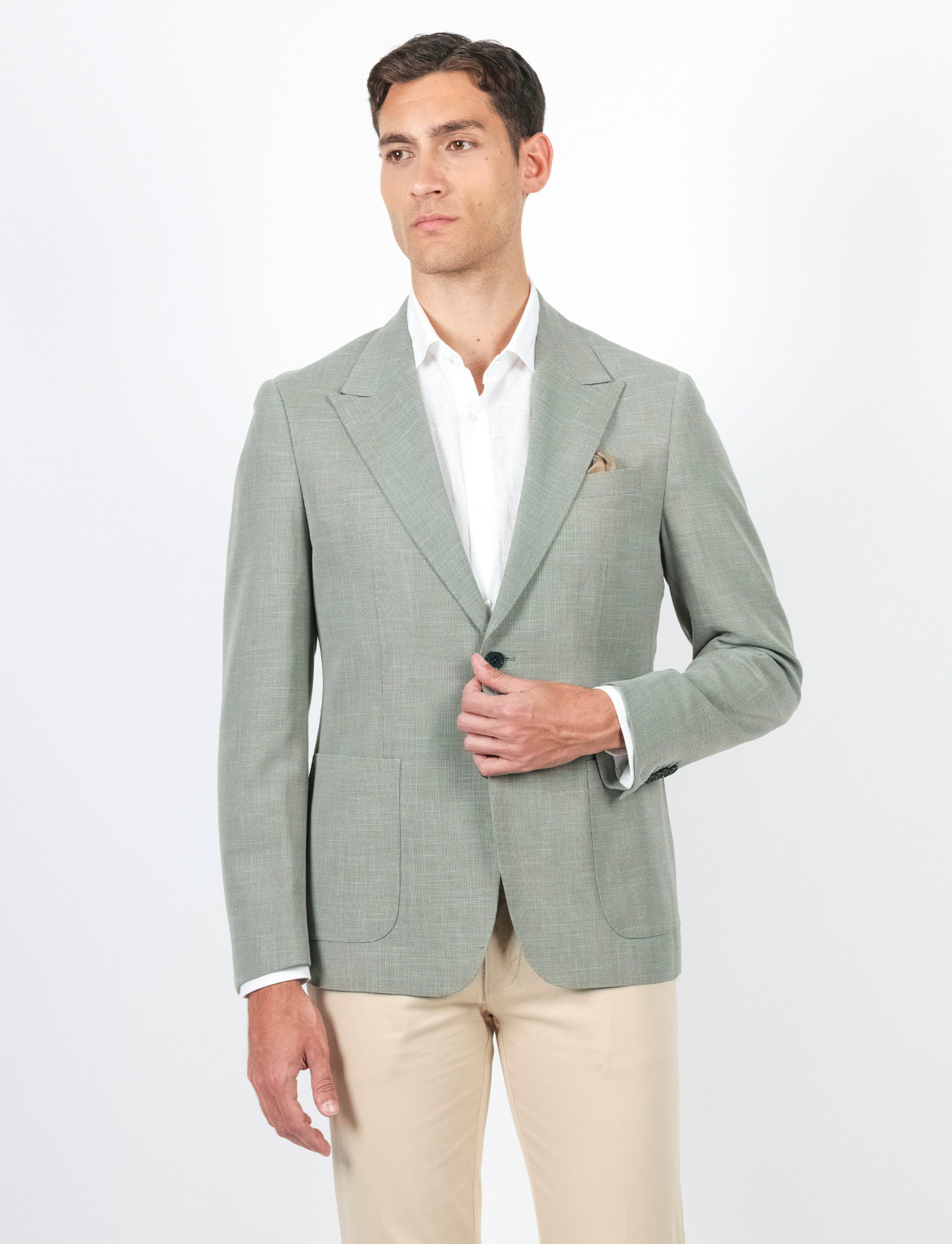 Tasche a Toppa: Due tasche frontali a toppa e un taschino sul petto, pratiche e stilose.