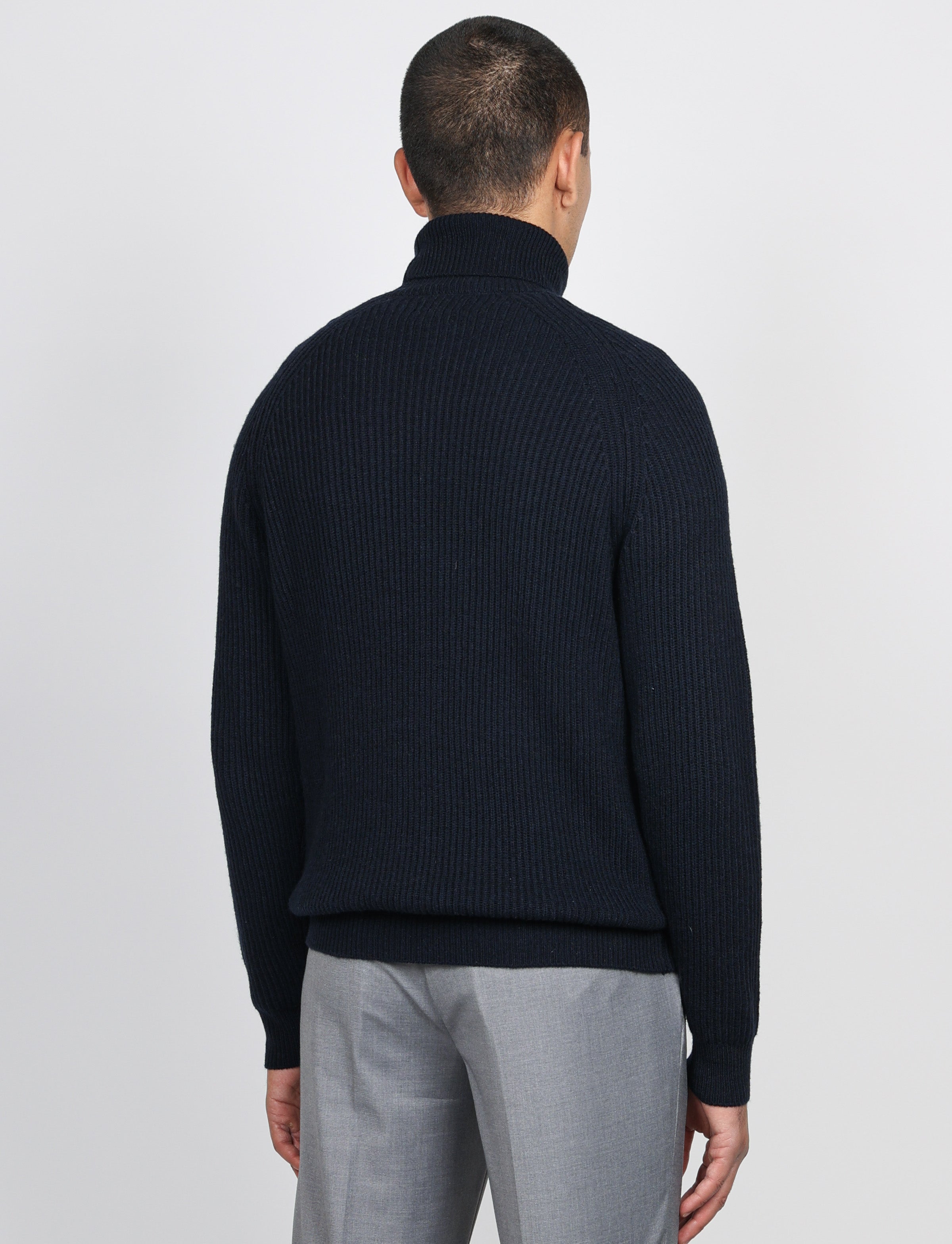 Dolcevita in lana lambswool dalla lavorazione a coste inglesi, caldo e avvolgente. Un classico intramontabile che unisce eleganza e comfort nelle giornate più fredde.