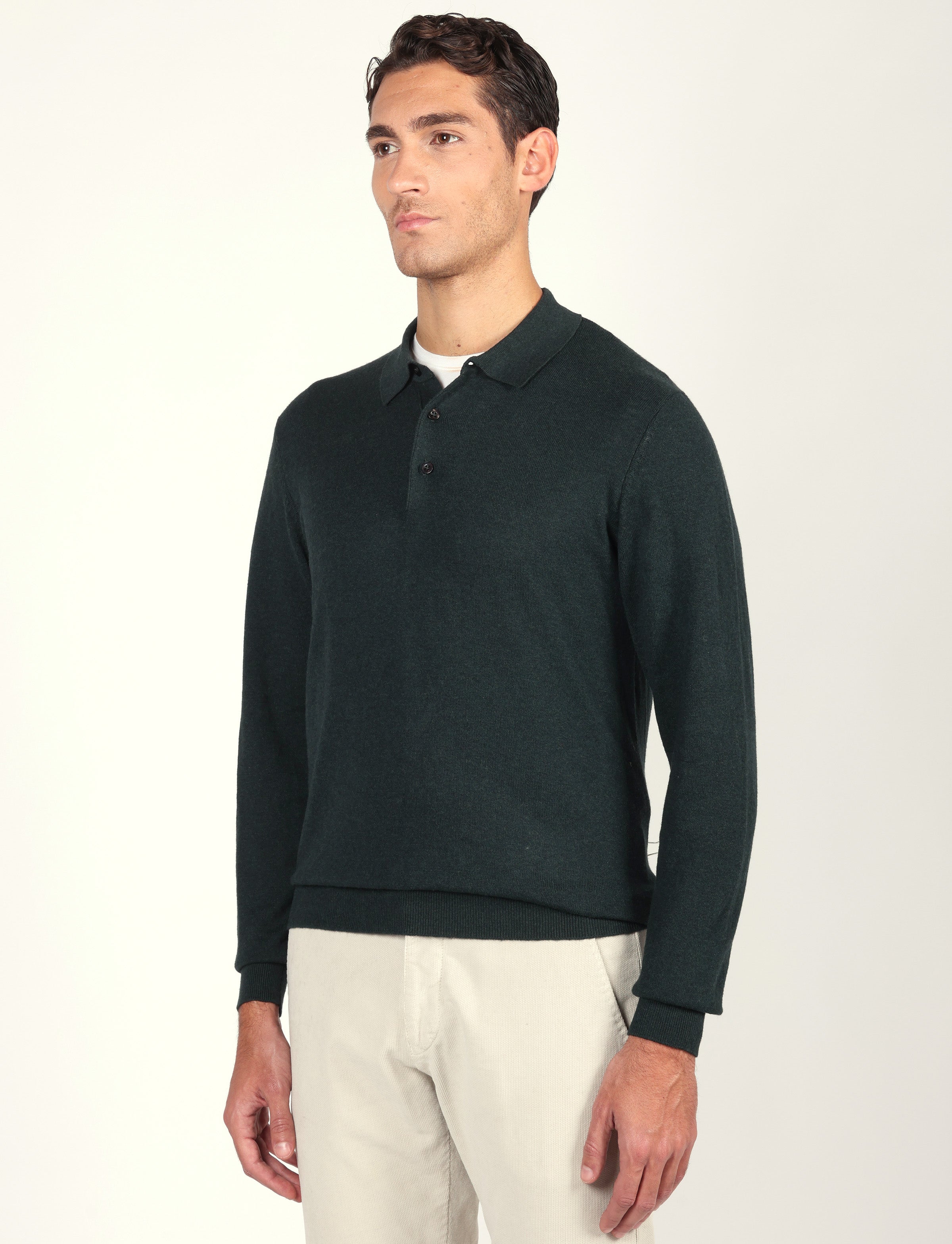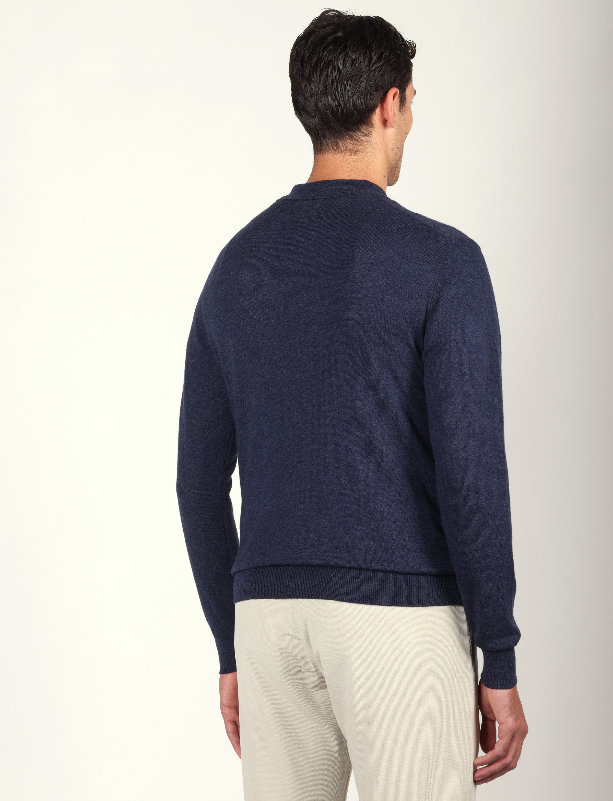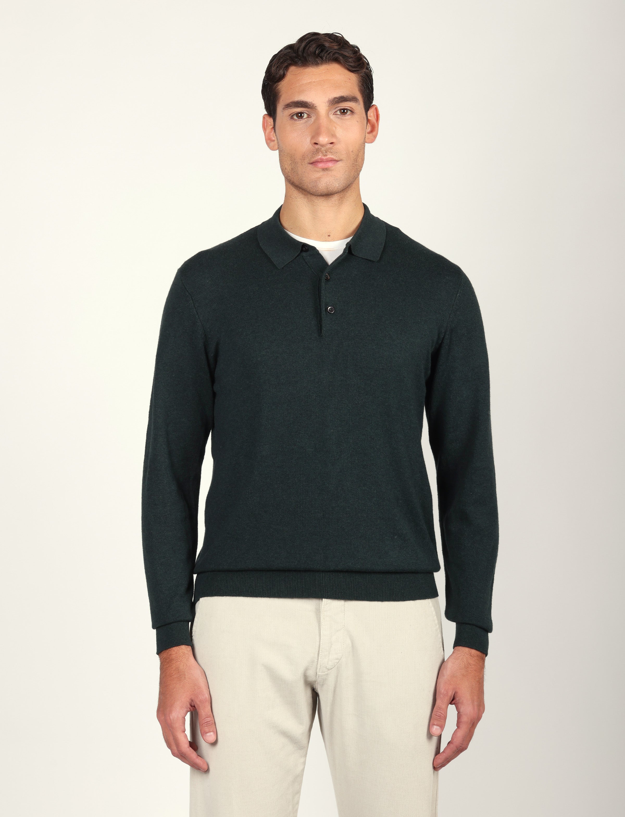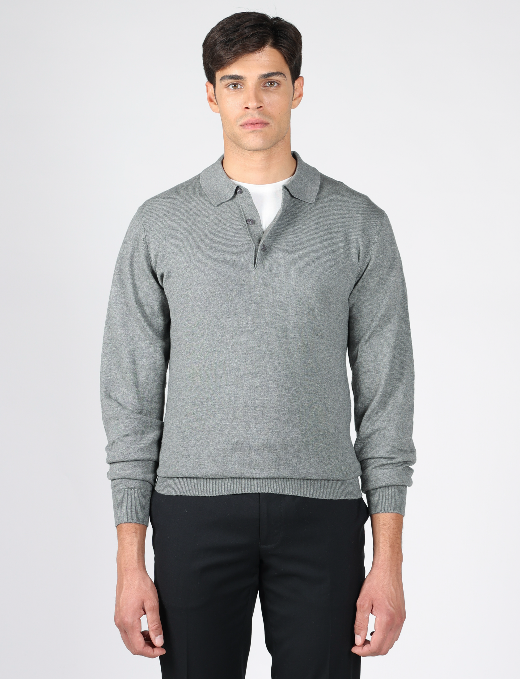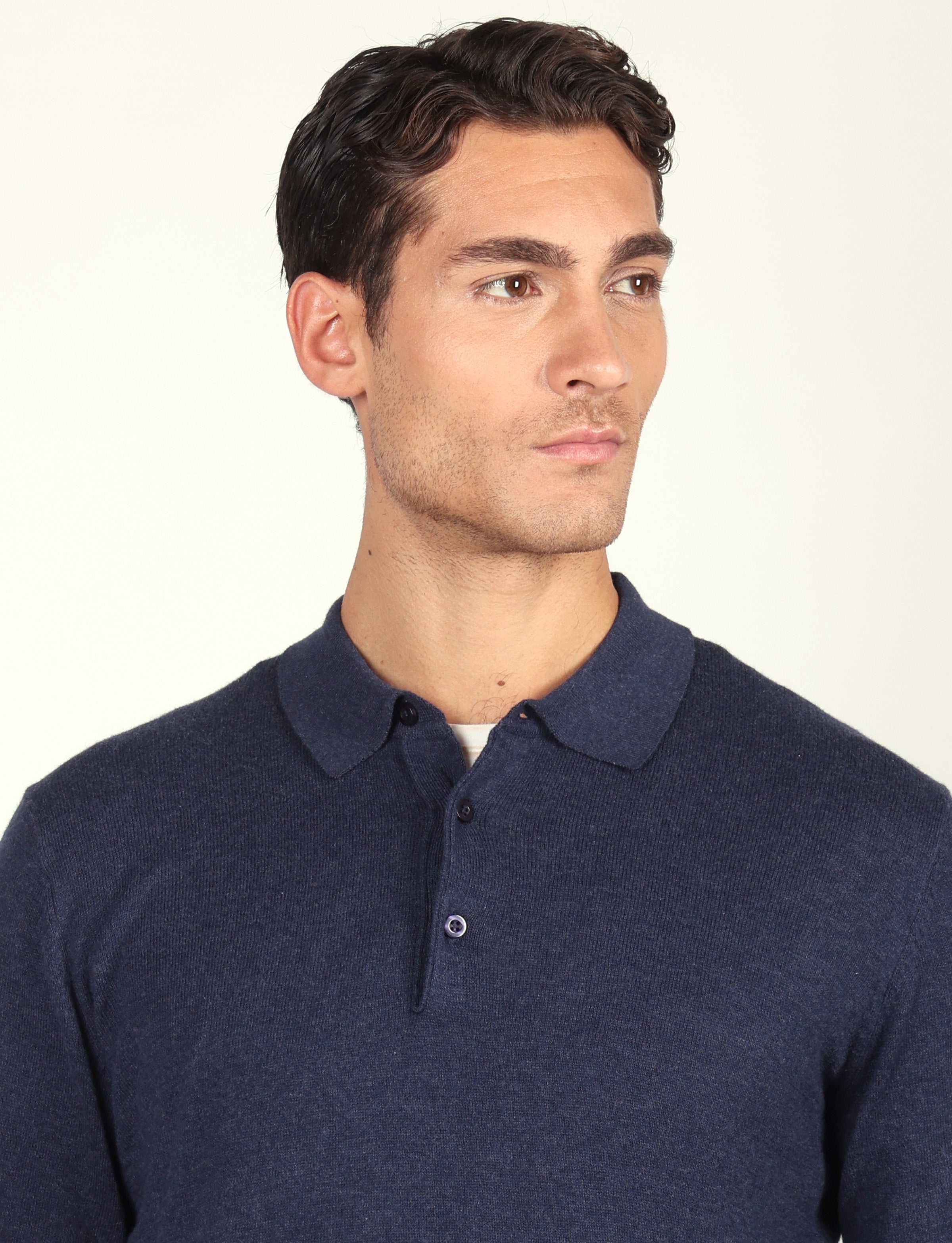 Polo in maglia fine dal design essenziale e raffinato, realizzata in morbido misto lana e cotone per garantire comfort, traspirabilità e un’eleganza disinvolta in ogni occasione.