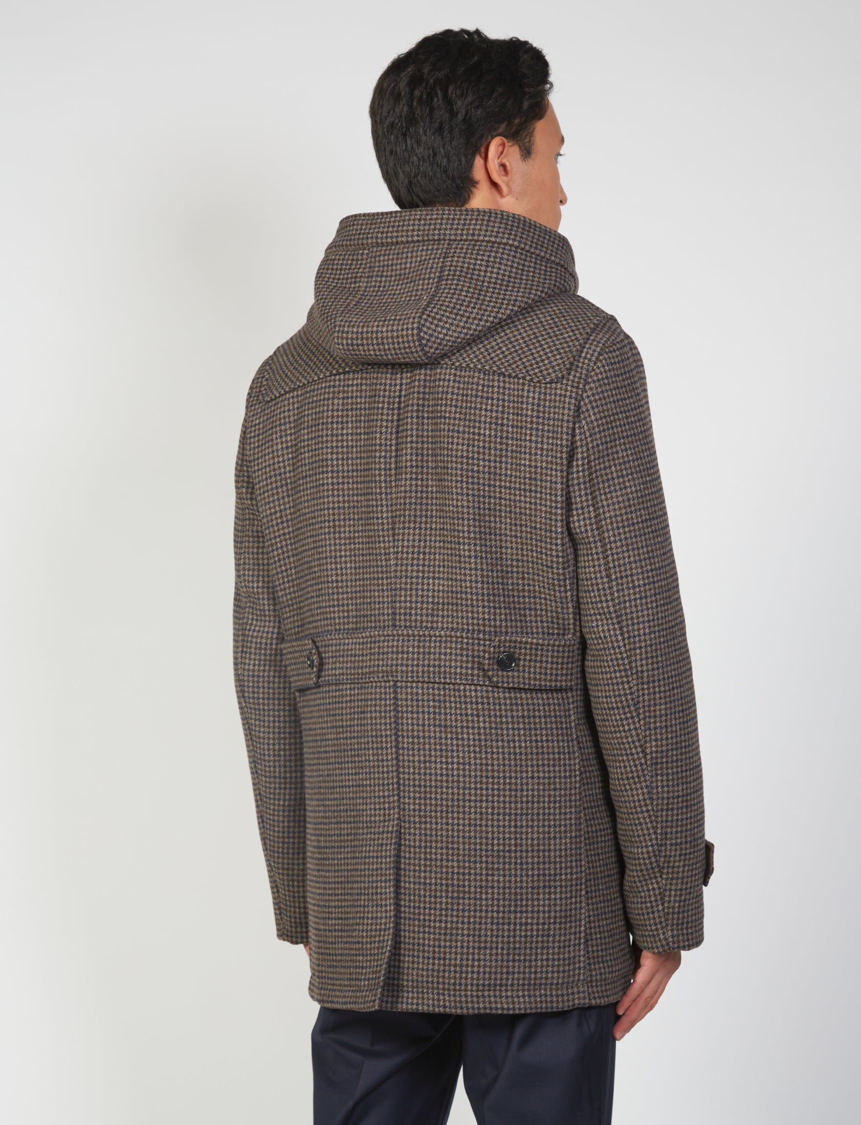 Questo montgomery è il perfetto equilibrio tra eleganza e funzionalità. Realizzato in fantasia pied de poule, il capo si distingue per la sua chiusura a alamari con bottoni clip, il cappuccio pratico e il design versatile. Ideale per affrontare con stile sia giornate casual che occasioni formali, garantisce calore grazie al rivestimento interno trapuntato.
