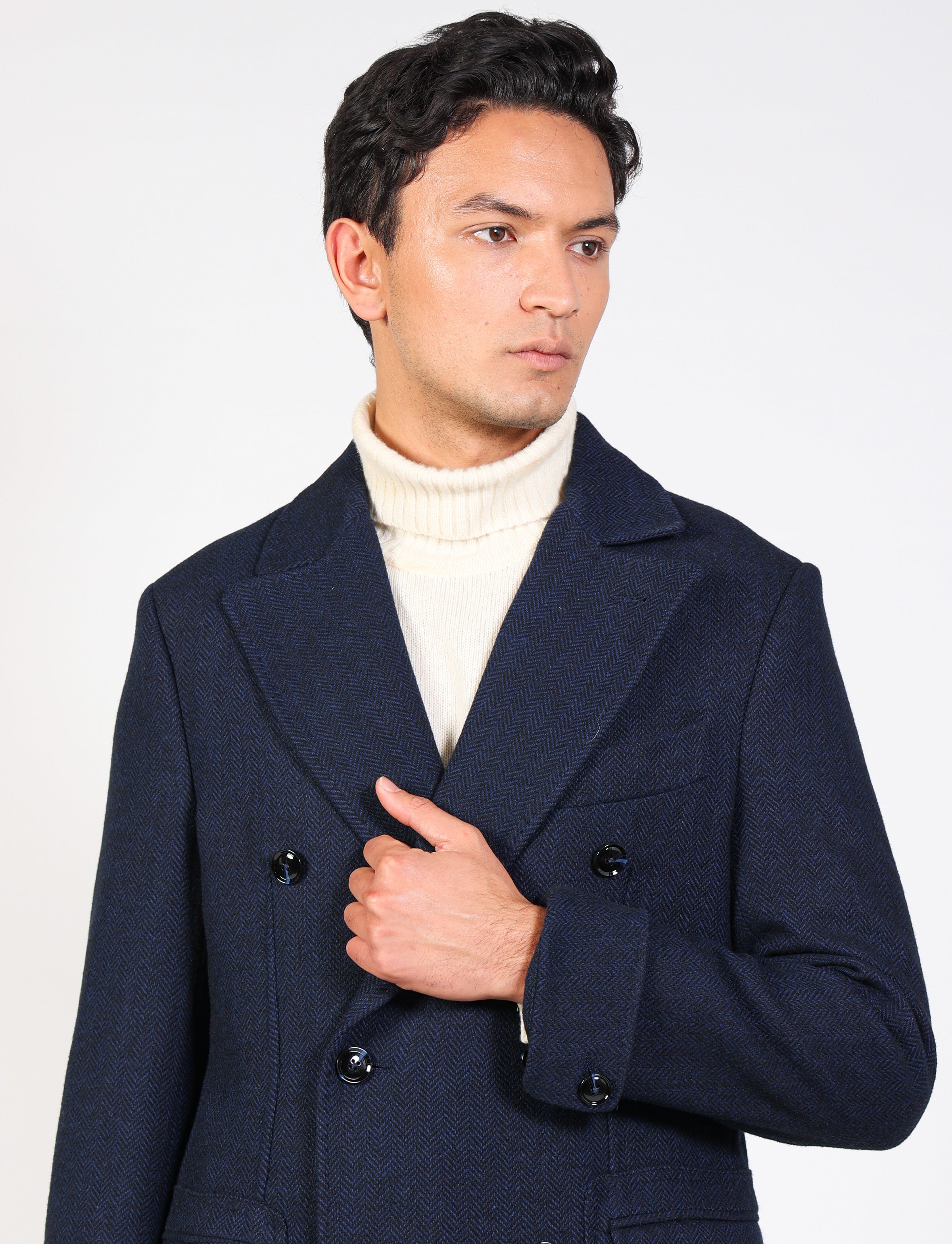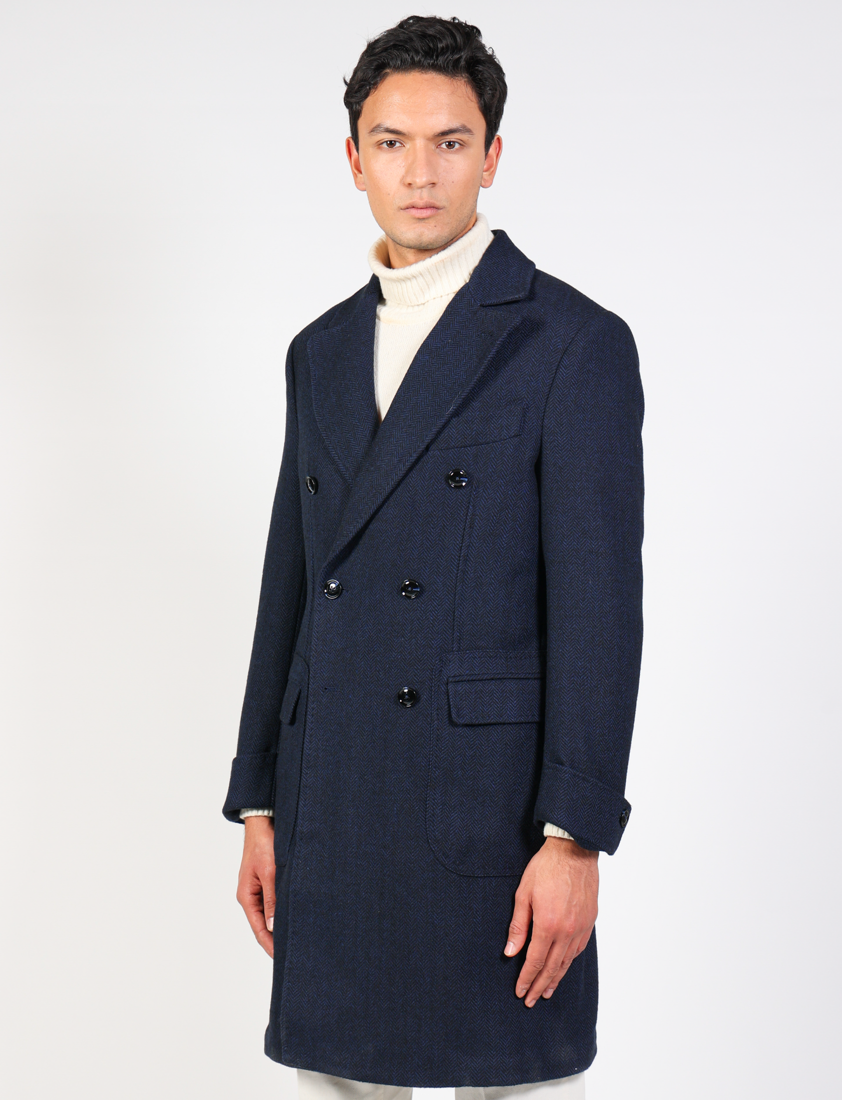 Scopri il cappotto doppiopetto da uomo in fantasia resca, realizzato con pregiata lana e dettagli sartoriali. Design versatile, perfetto per un look elegante e contemporaneo.