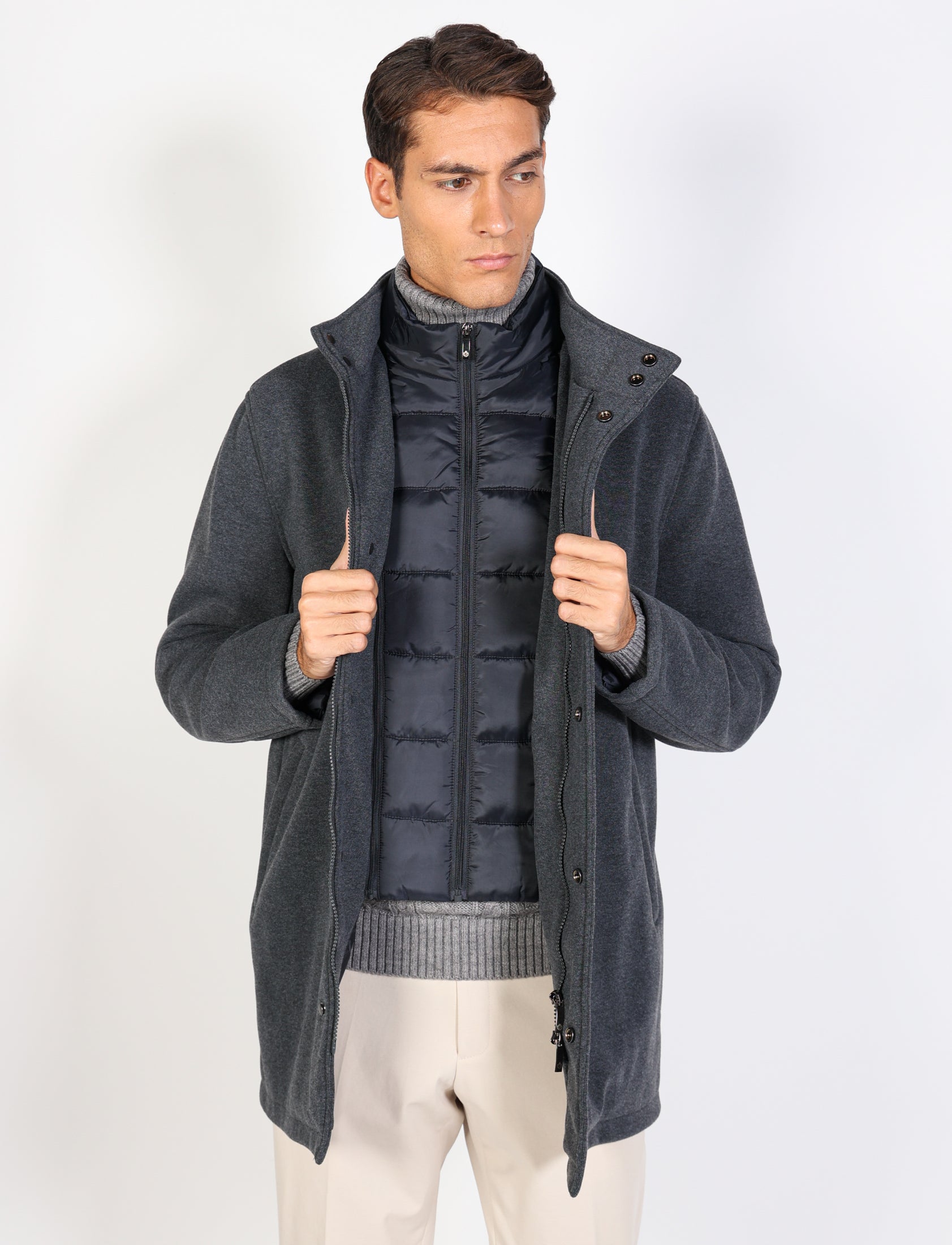 Scopri il nostro cappotto in maglia, un capo versatile e alla moda perfetto per la stagione invernale. Con la sua elegante pettorina interna removibile e un design pensato per il massimo comfort, questo cappotto unisce stile e funzionalità. Ideale per affrontare il freddo con eleganza, è l'aggiunta perfetta al tuo guardaroba invernale.