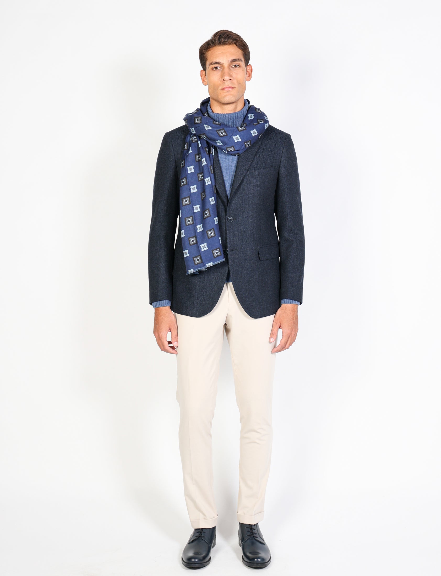 Monopetto a due bottoni: classico e versatile, adatto sia a contesti formali che semi-formali.