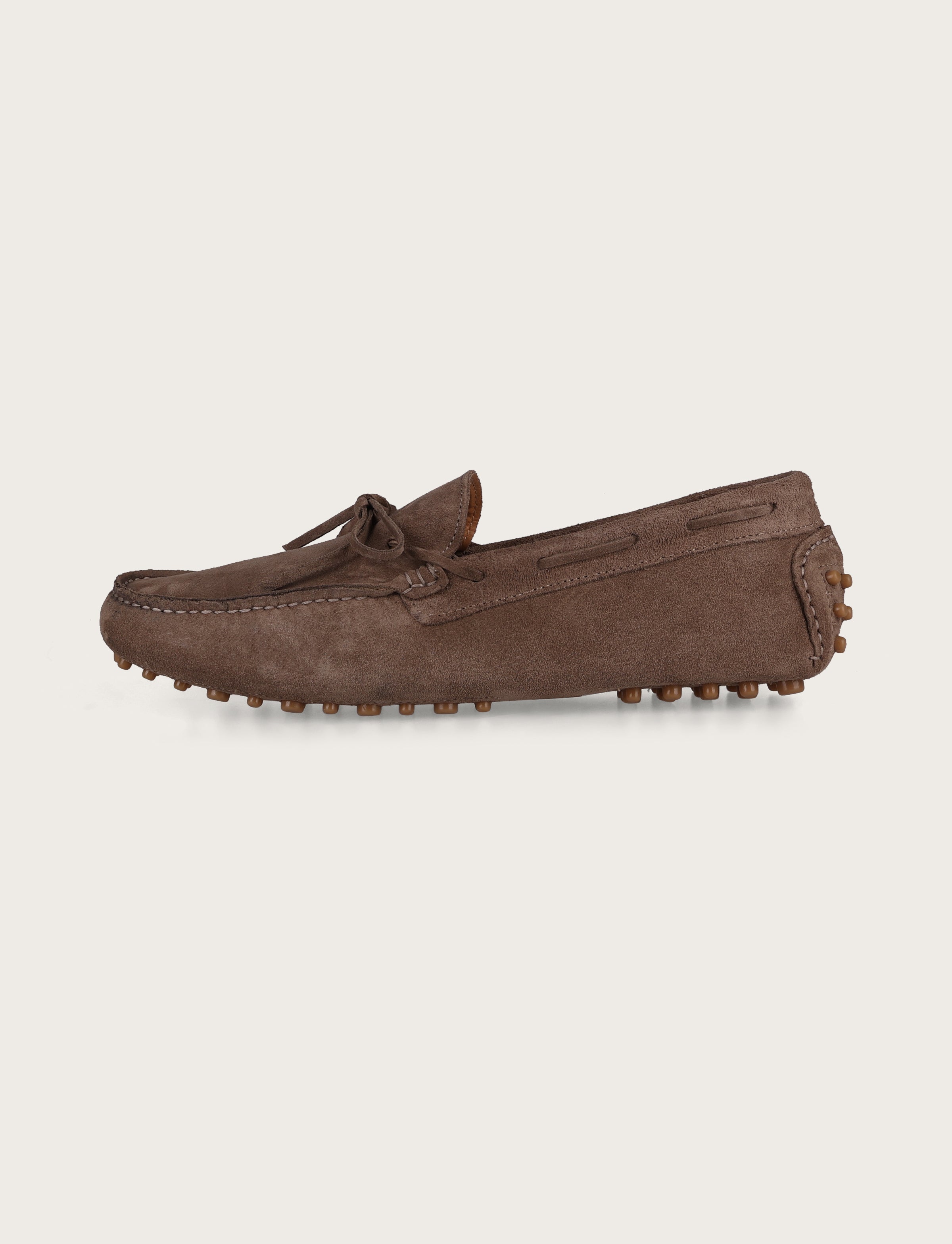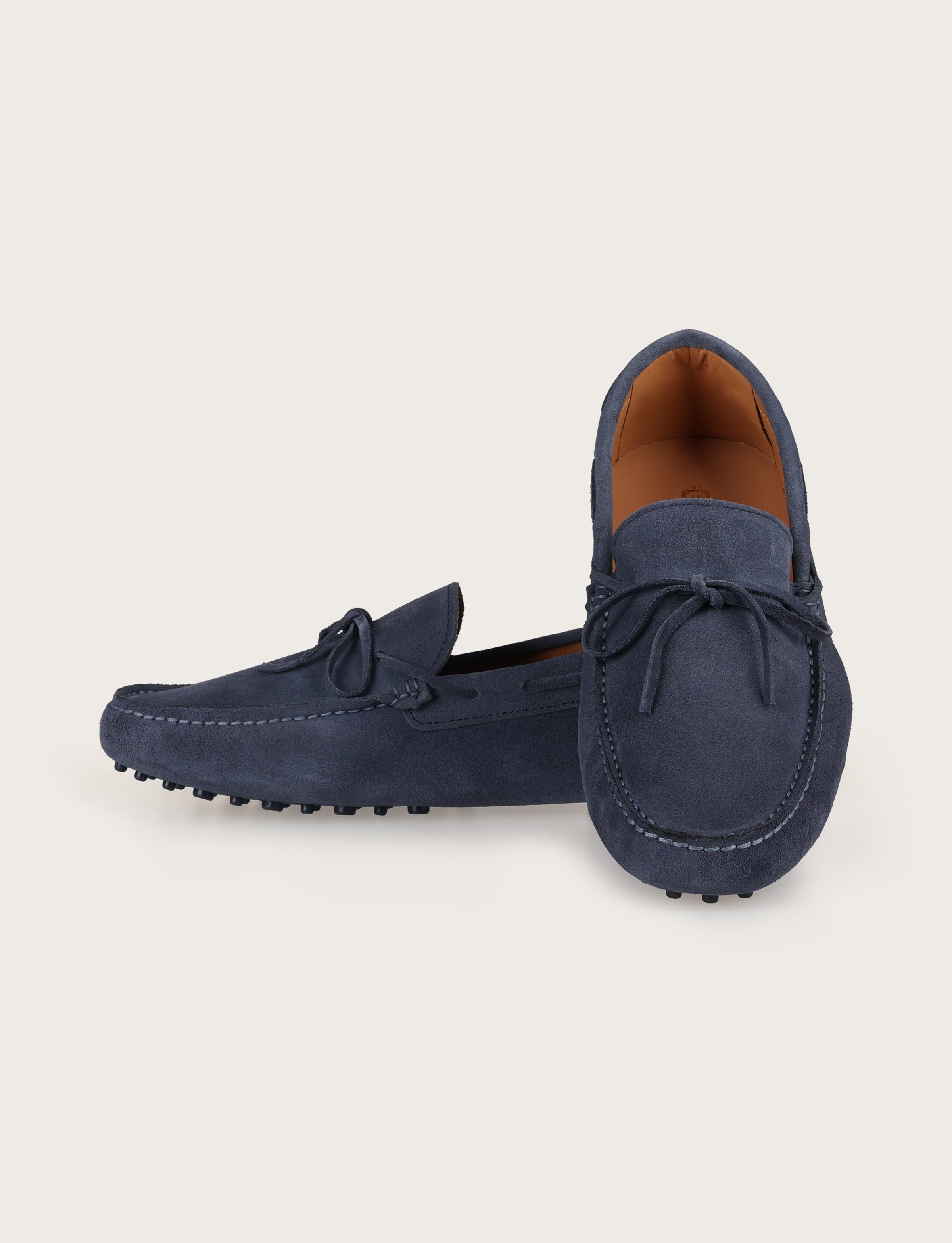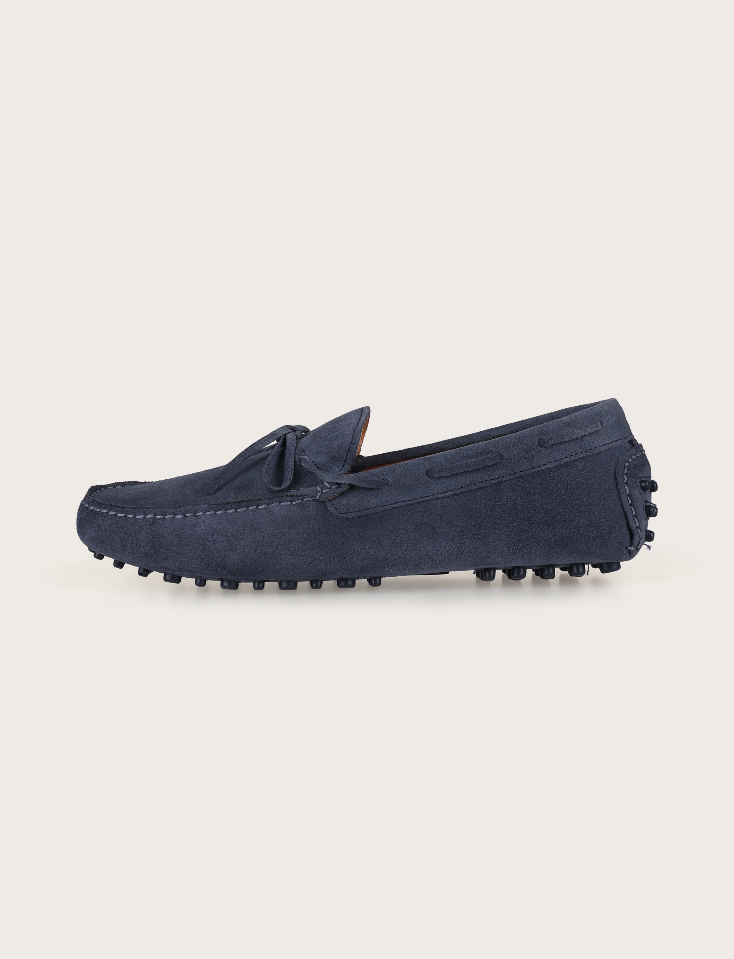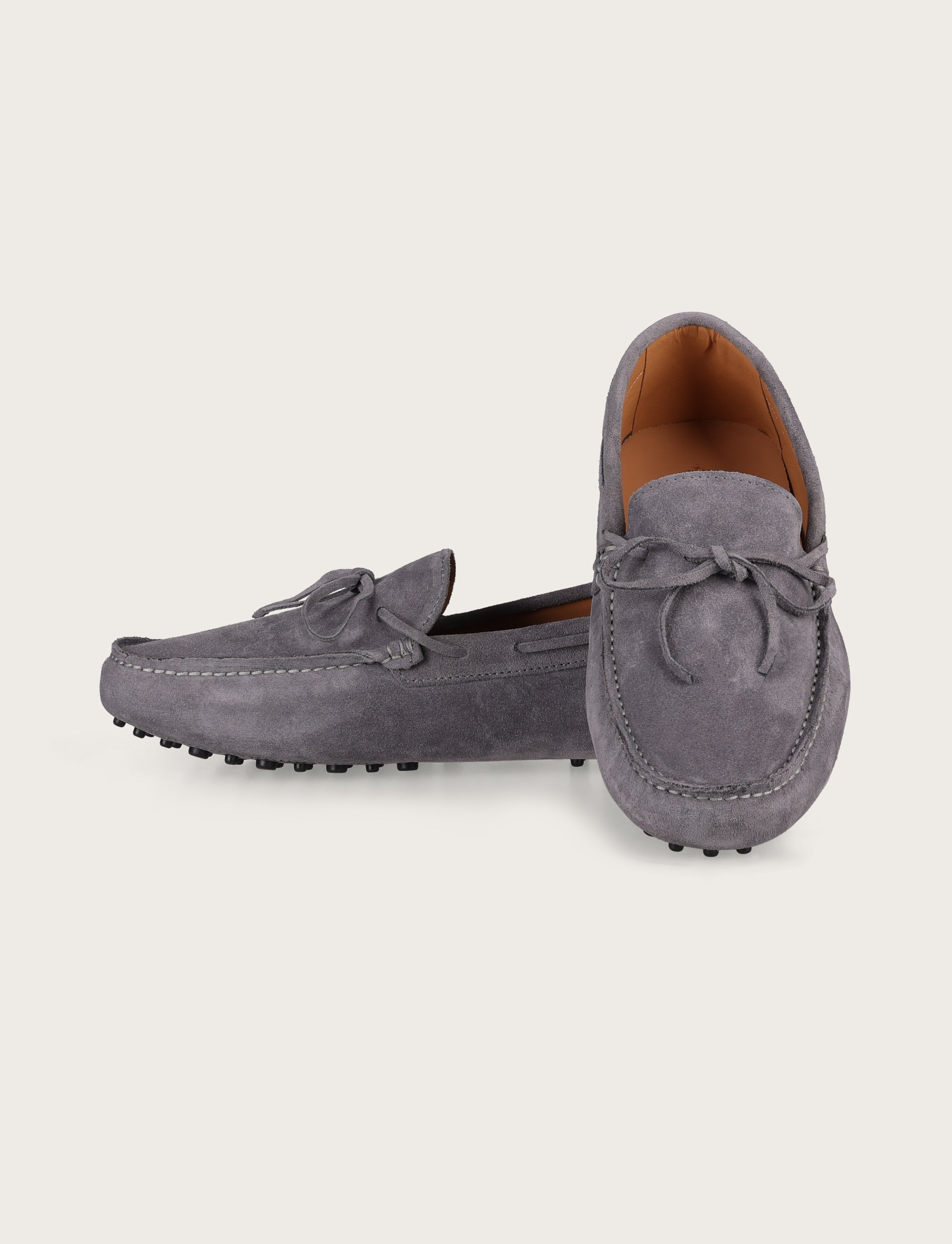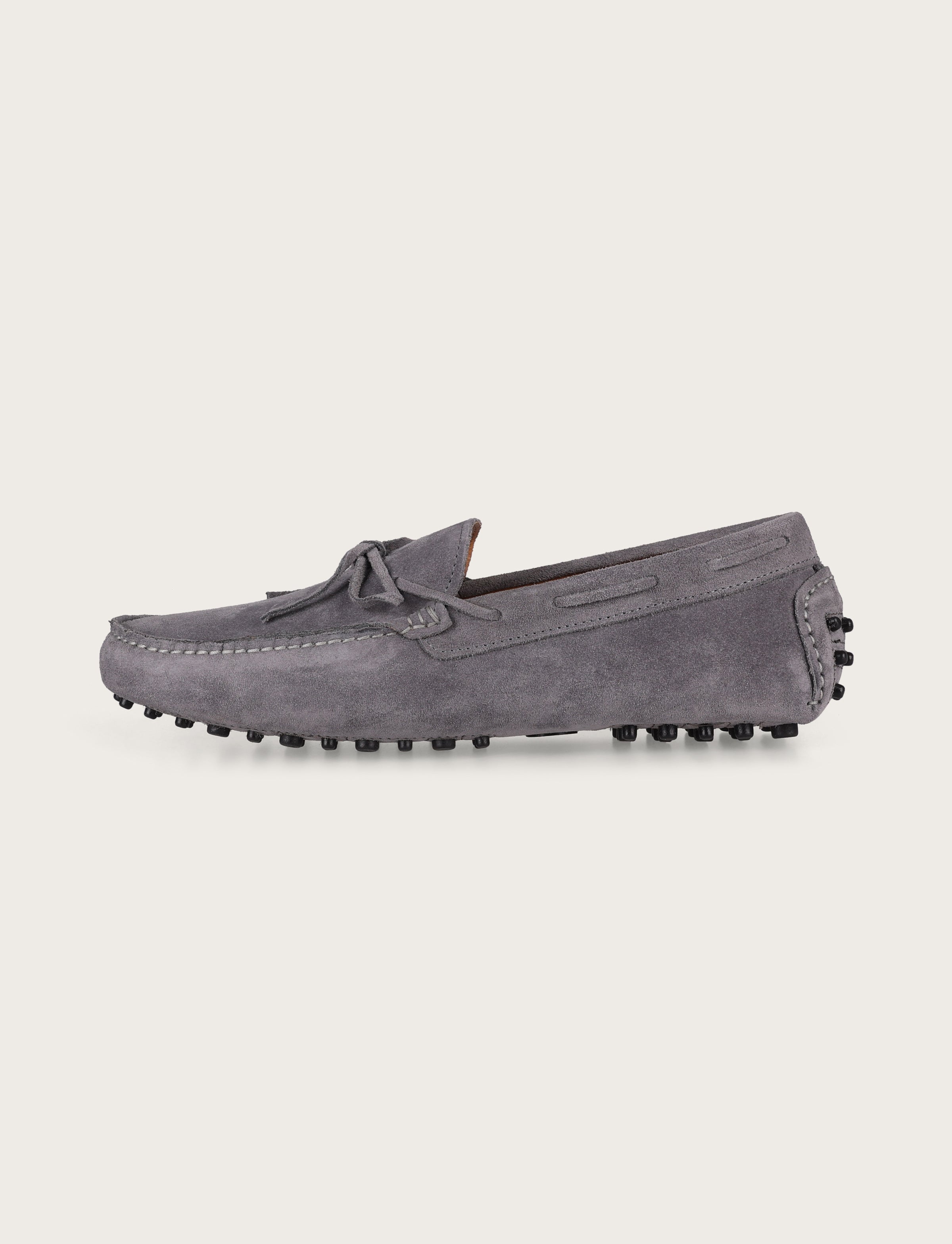 Elegant and versatile, these men's suede loafers are the perfect choice for those looking for style and comfort in a single shoe. Made of high-quality suede , they feature a classic line with a front bow and visible stitching. The sole with embossed rubber guarantees excellent grip and flexibility, making them ideal for both everyday use and informal occasions.