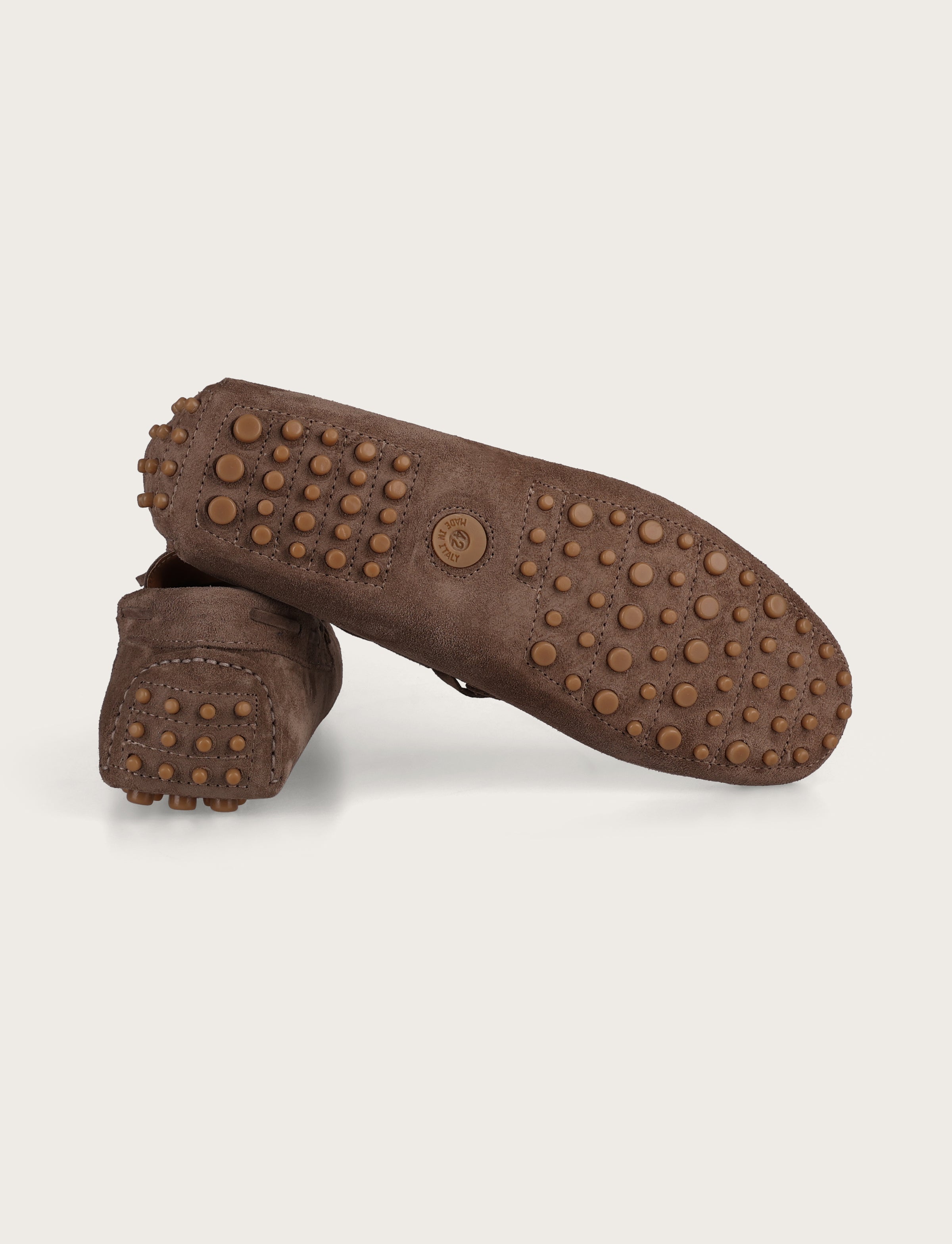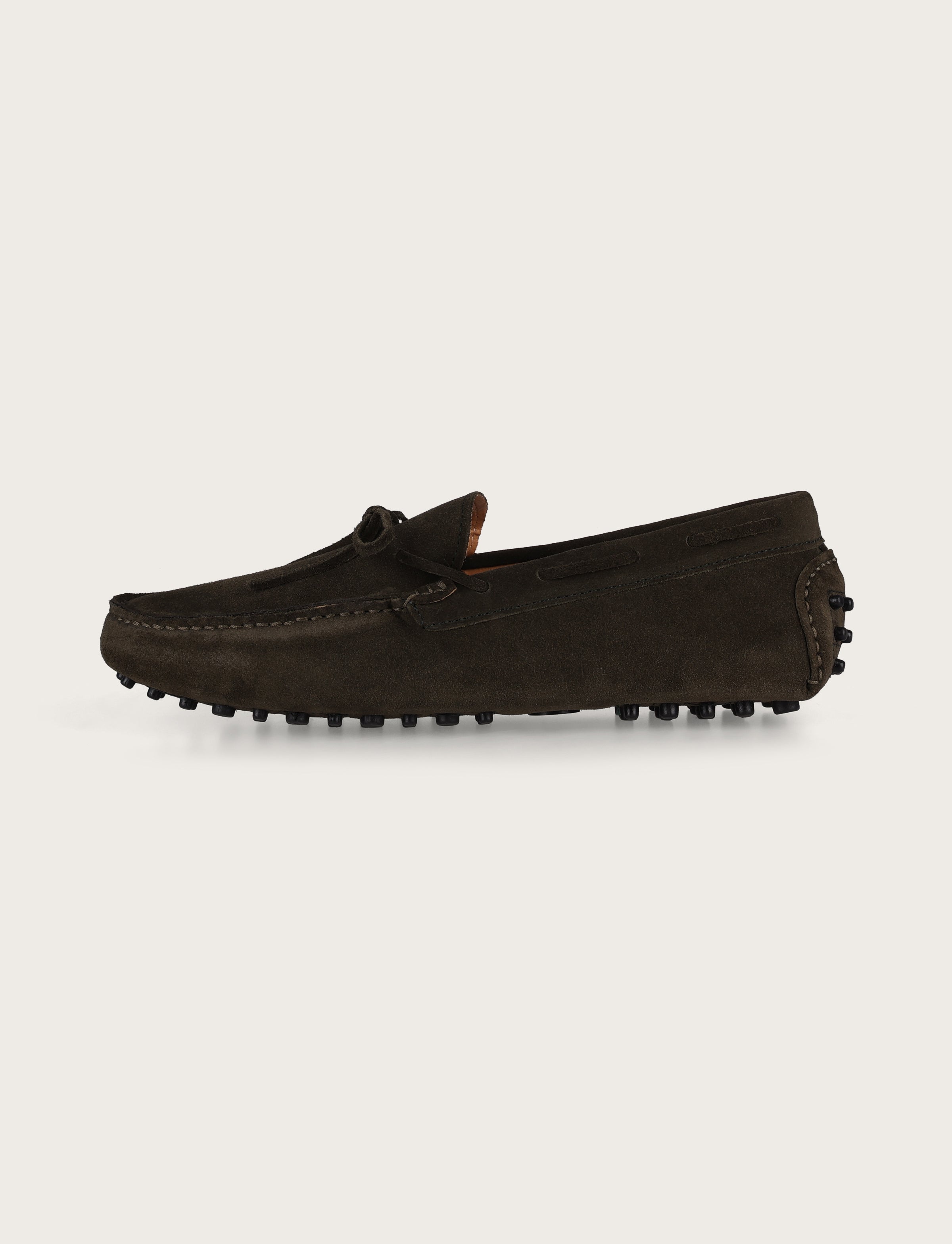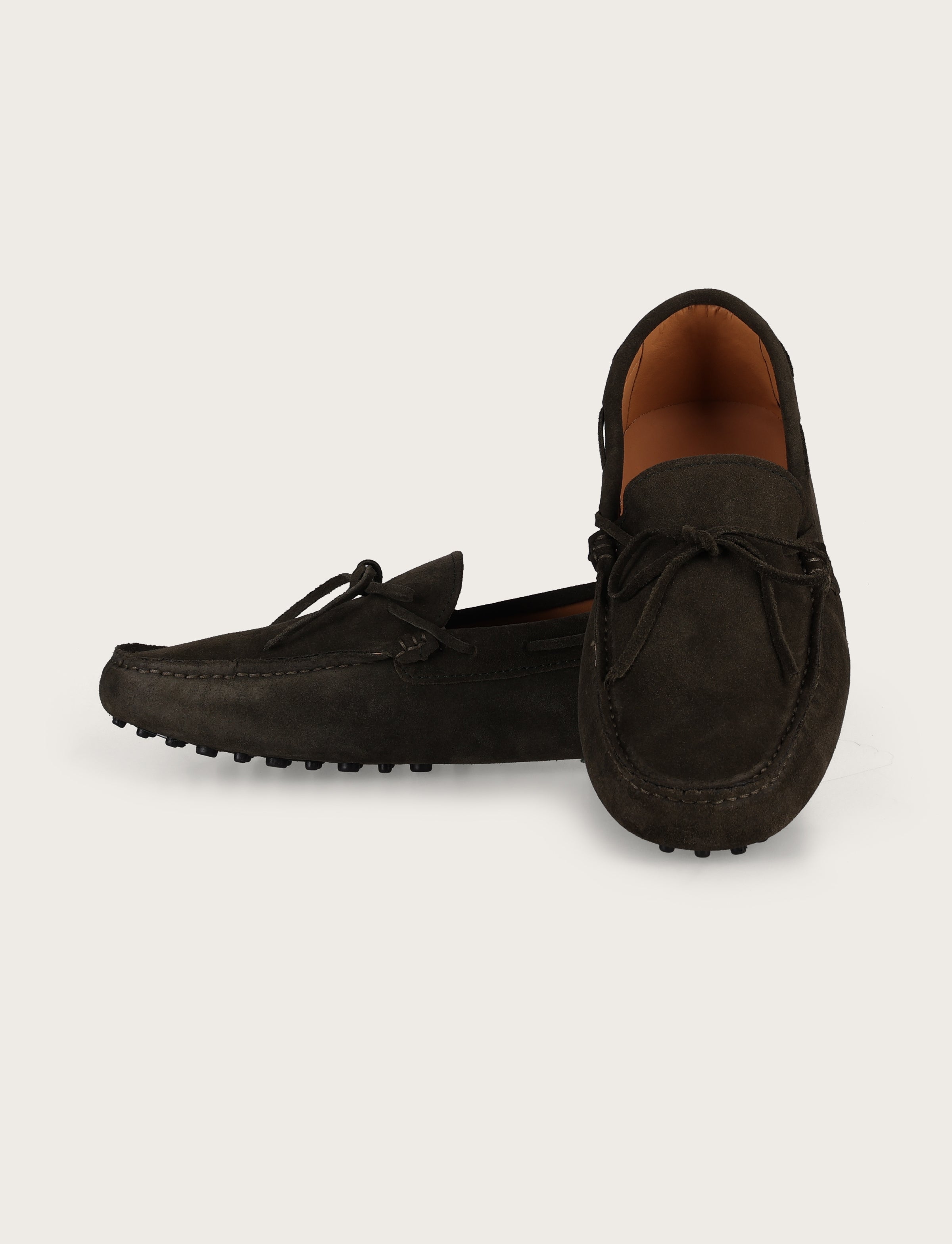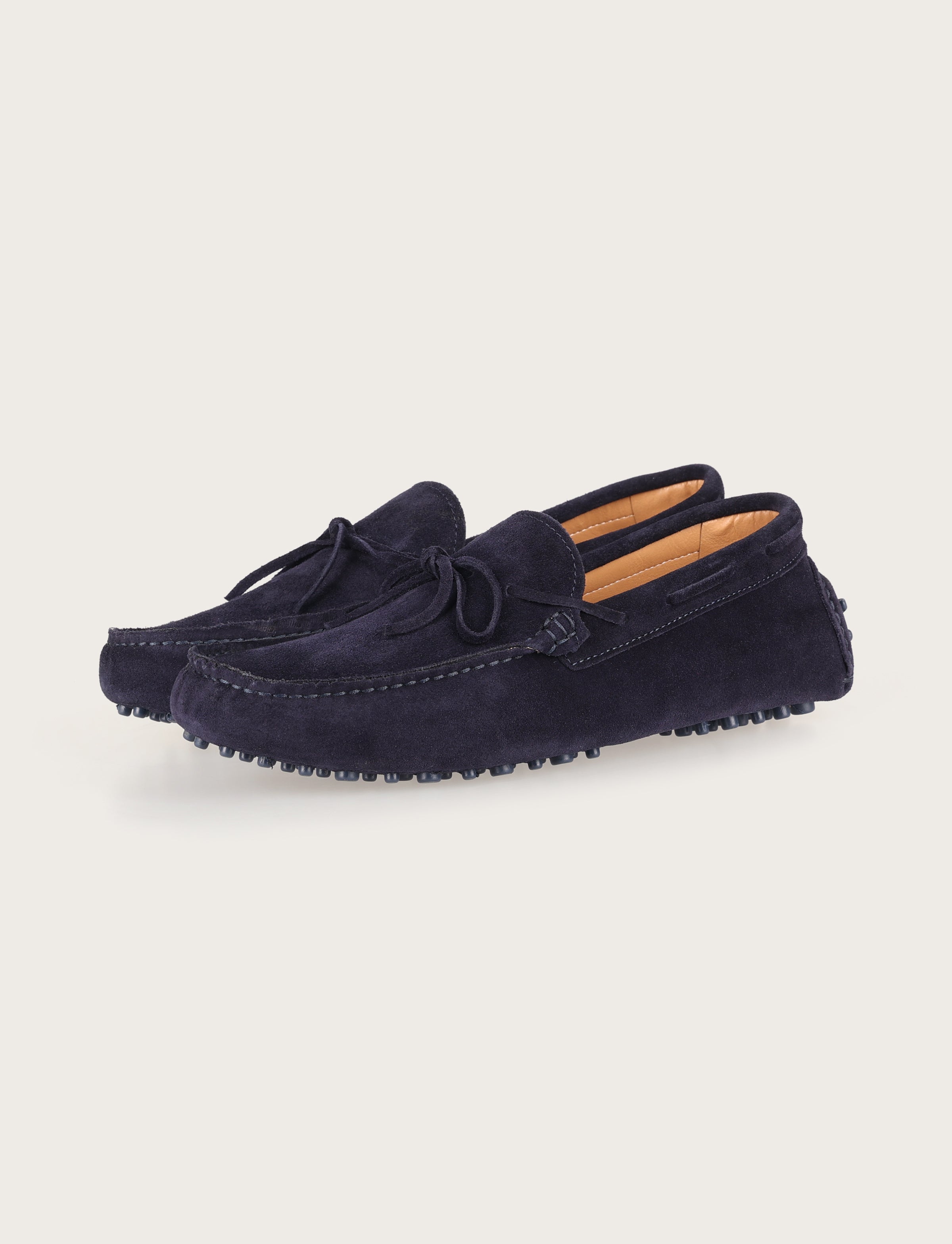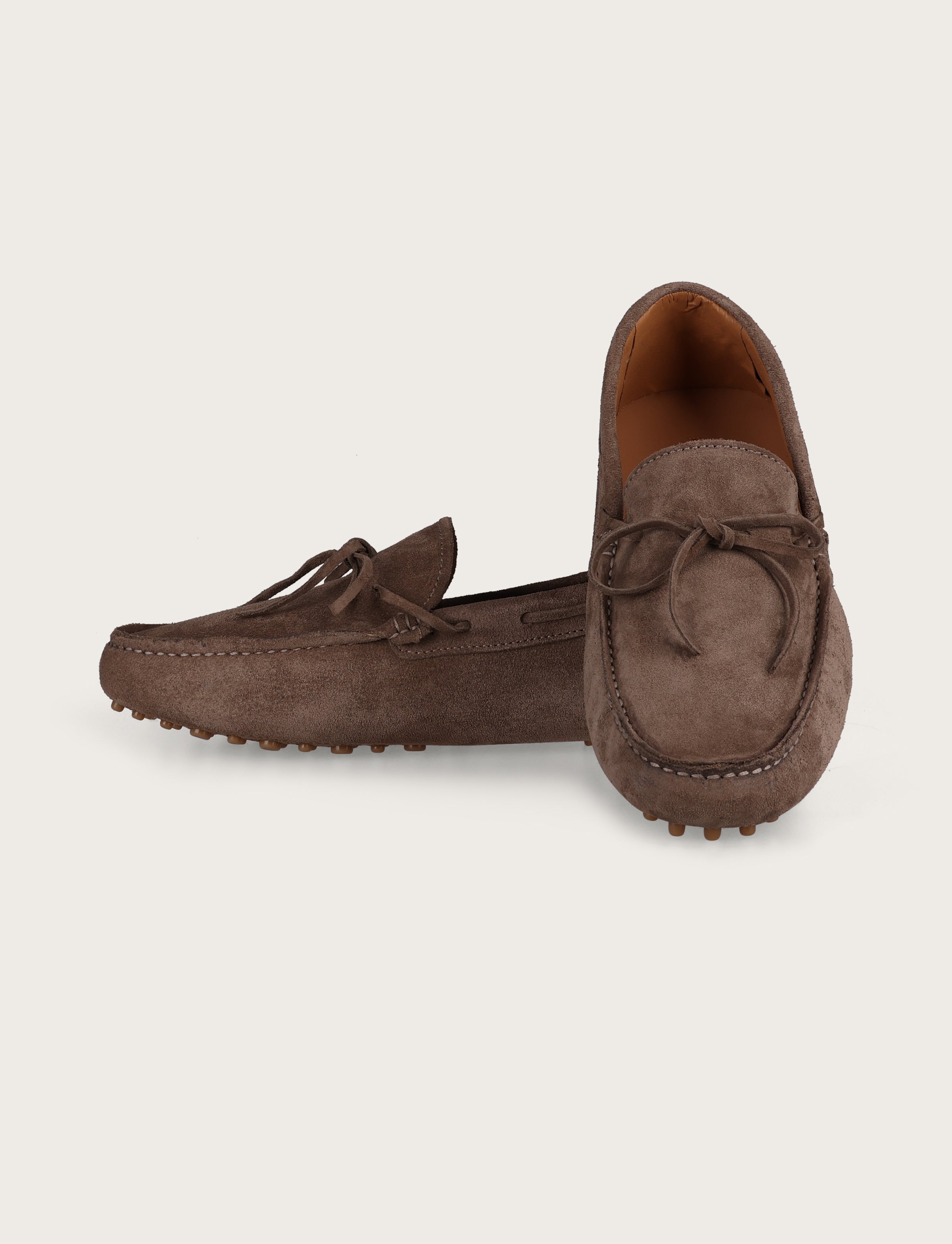 Elegant and versatile, these men's suede loafers are the perfect choice for those looking for style and comfort in a single shoe. Made of high-quality suede , they feature a classic line with a front bow and visible stitching. The sole with embossed rubber guarantees excellent grip and flexibility, making them ideal for both everyday use and informal occasions.