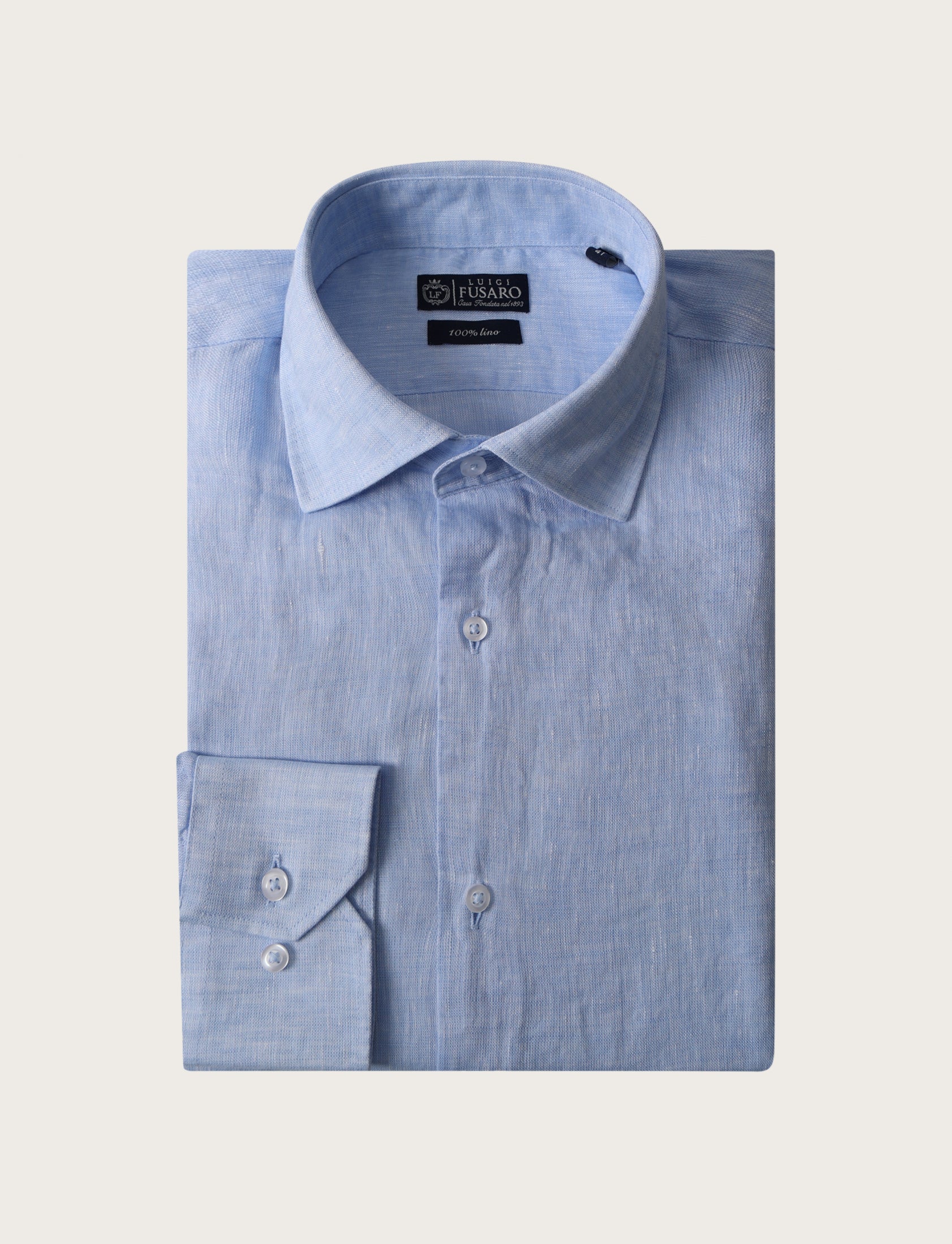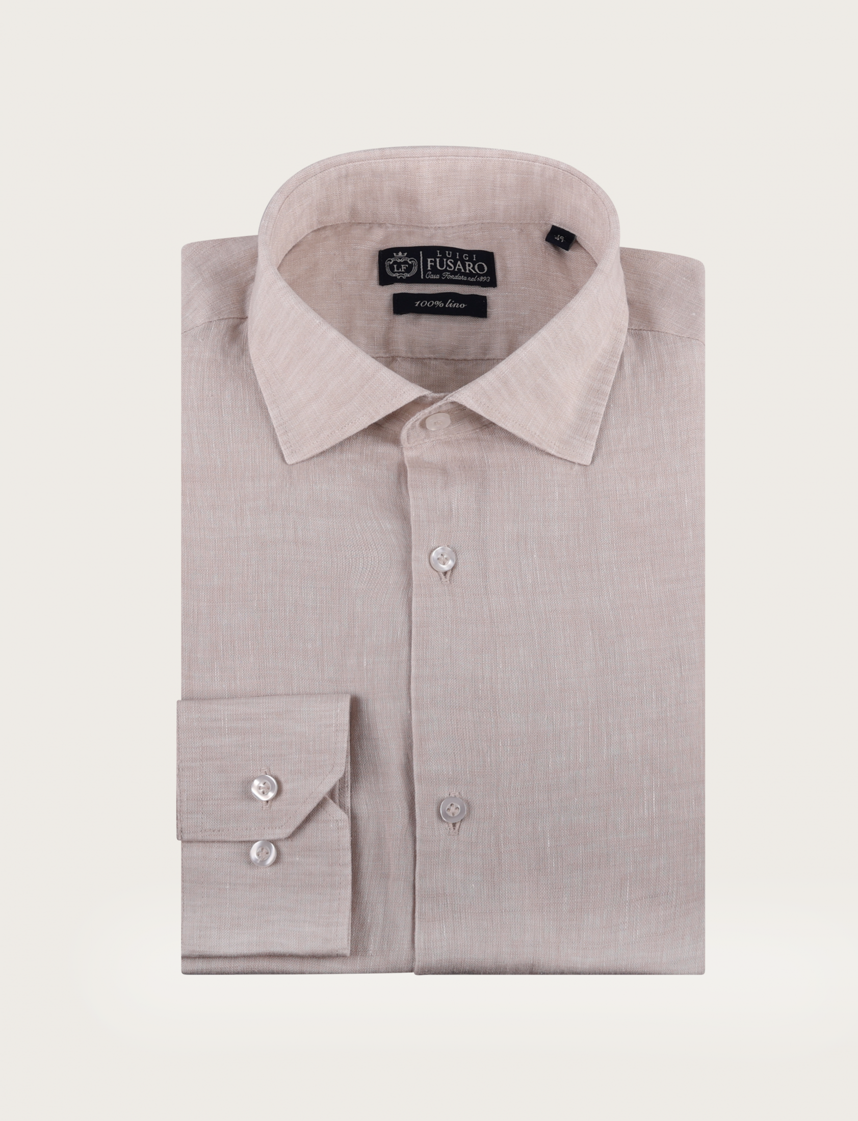Men's shirt in 100% linen, made of breathable natural fabric. Model with classic collar and clean line, perfect for elegant occasions or refined casual looks . Regular fit for maximum comfort even on the hottest days.