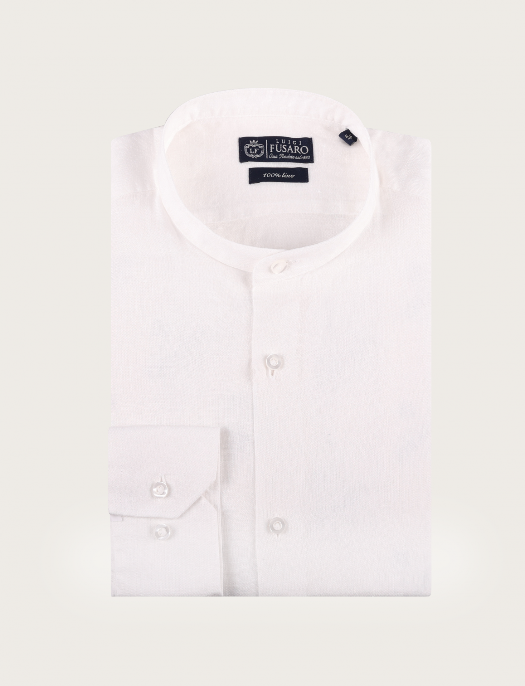 Men's pure linen shirt with mandarin collar, perfect for an elegant and casual summer look. It offers a regular fit that guarantees comfort and freedom of movement.
