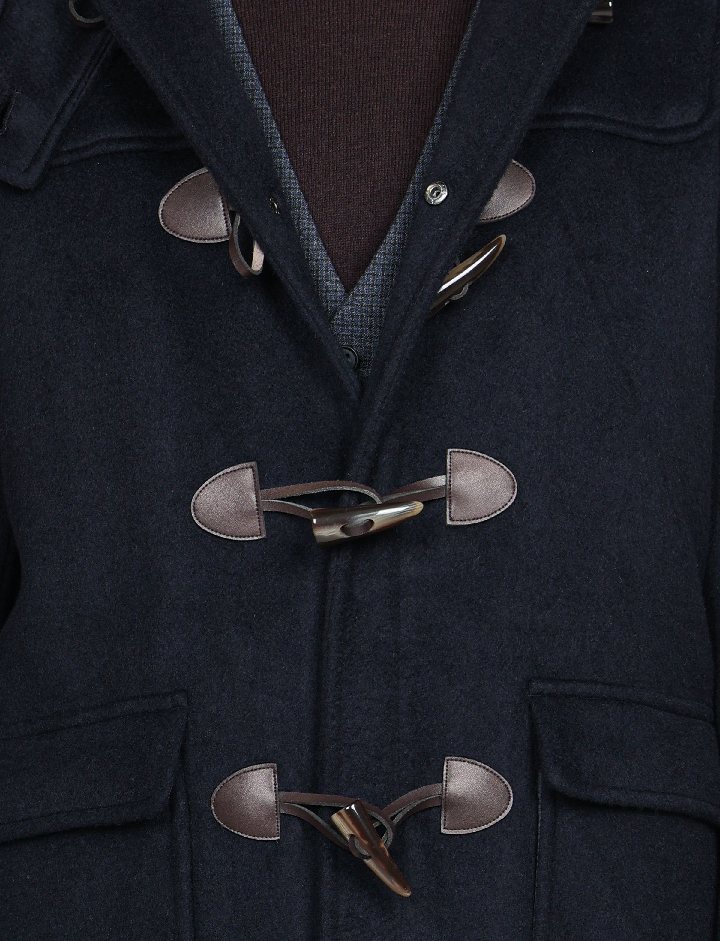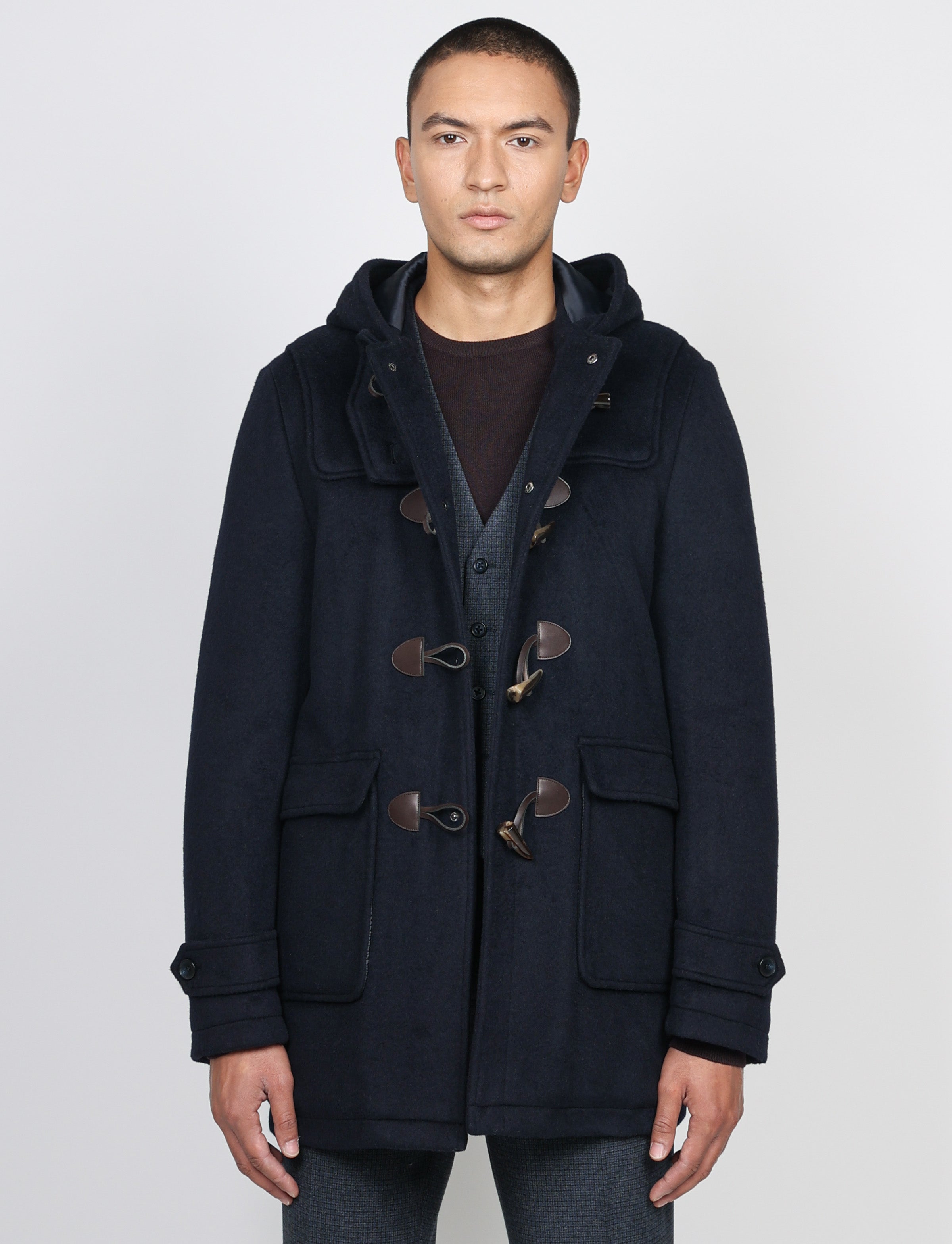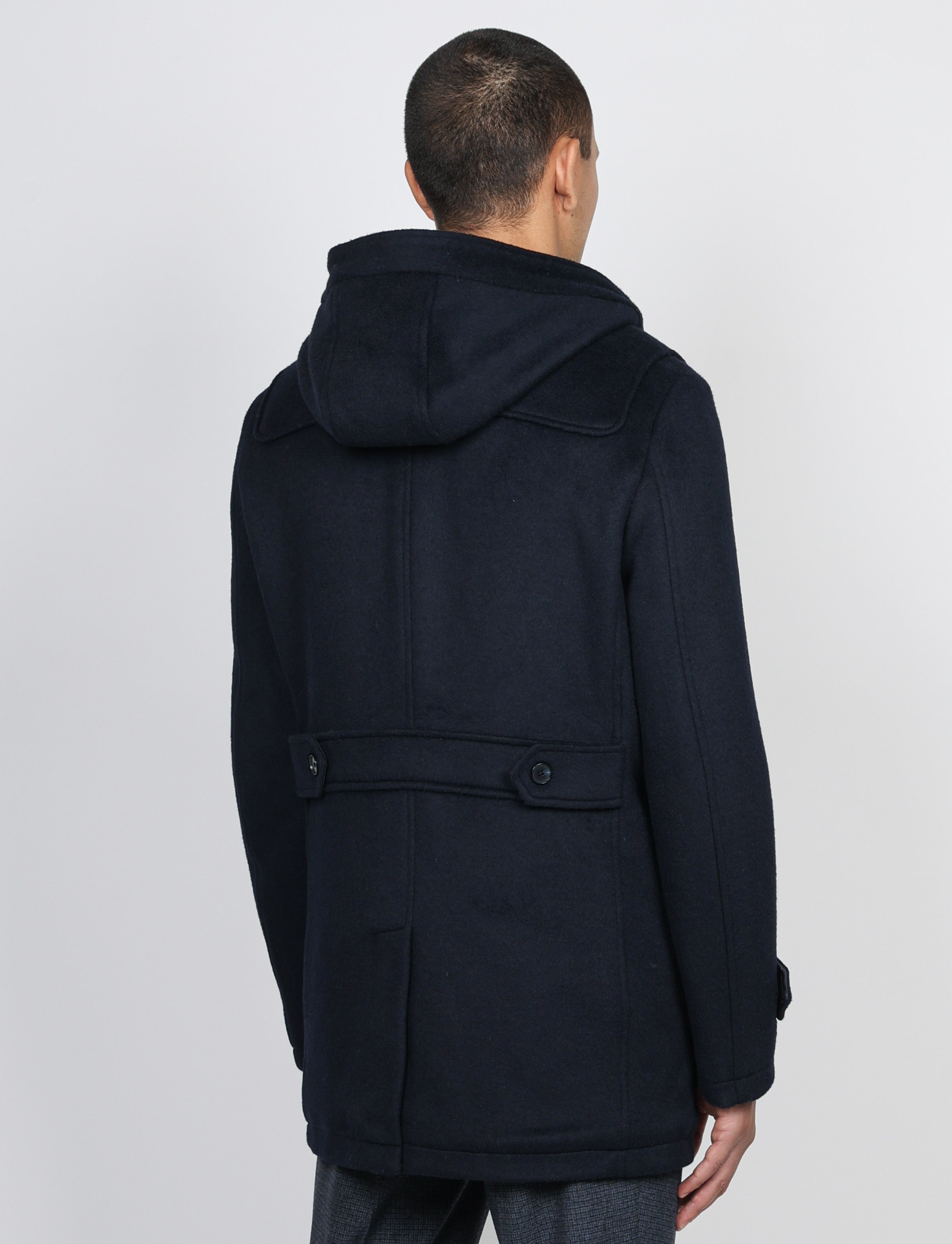 Realizzato in tessuto misto lana caldo e strutturato, presenta la classica chiusura con alamari in corno e inserti in pelle, dettagli che ne esaltano lo stile autentico. Il cappuccio fisso e l’interno trapuntato e foderato lo rendono ideale per affrontare la stagione fredda con eleganza.